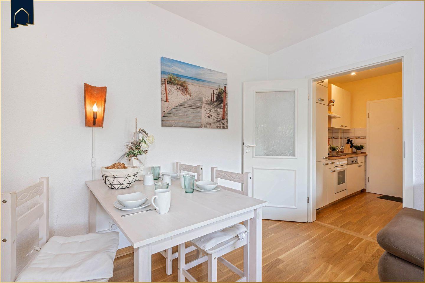 Diese charmante Ferienwohnung bietet auf 45?m² eine moderne Ausstattung und eine gemütliche Atmosphäre für bis zu 3 Personen. Nur 650?Meter trennen Sie vom feinsandigen Ostseestrand – perfekt für lange Strandspaziergänge, Sonnenbäder oder ein erfrischendes Bad im Meer. Die Unterkunft liegt ruhig, aber dennoch zentral: Restaurants sind in nur 70?Metern erreichbar, ein Supermarkt ist 700?Meter entfernt, ebenso wie das Meer. Für entspannte Urlaubstage sorgt die private Terrasse mit Gartenmöbeln, Sonnenliegen und Grill.