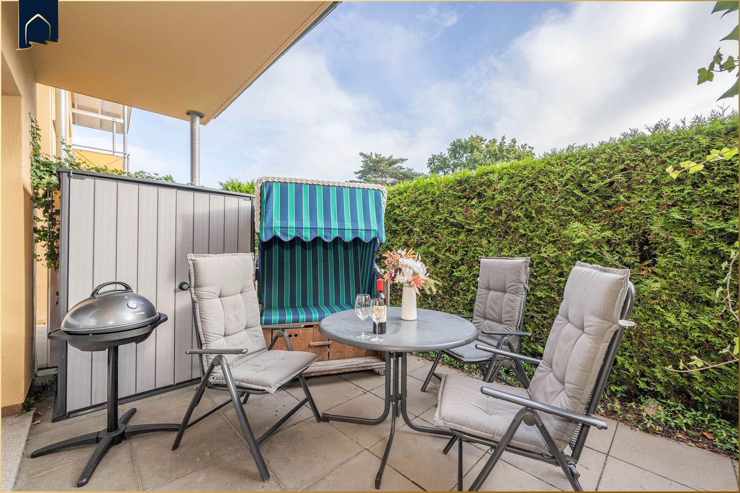 Die geschmackvoll eingerichtete Ferienwohnung überzeugt durch durchdachte Ausstattung, freundliches Ambiente und eine perfekte Lage für Strandliebhaber und Aktivurlauber. Die Terrasse mit Gartenmöbeln, Grill, Sonnenliegen und Sonnenschirm bietet Raum für entspannte Stunden im Freien – ob beim Frühstück oder beim abendlichen BBQ.