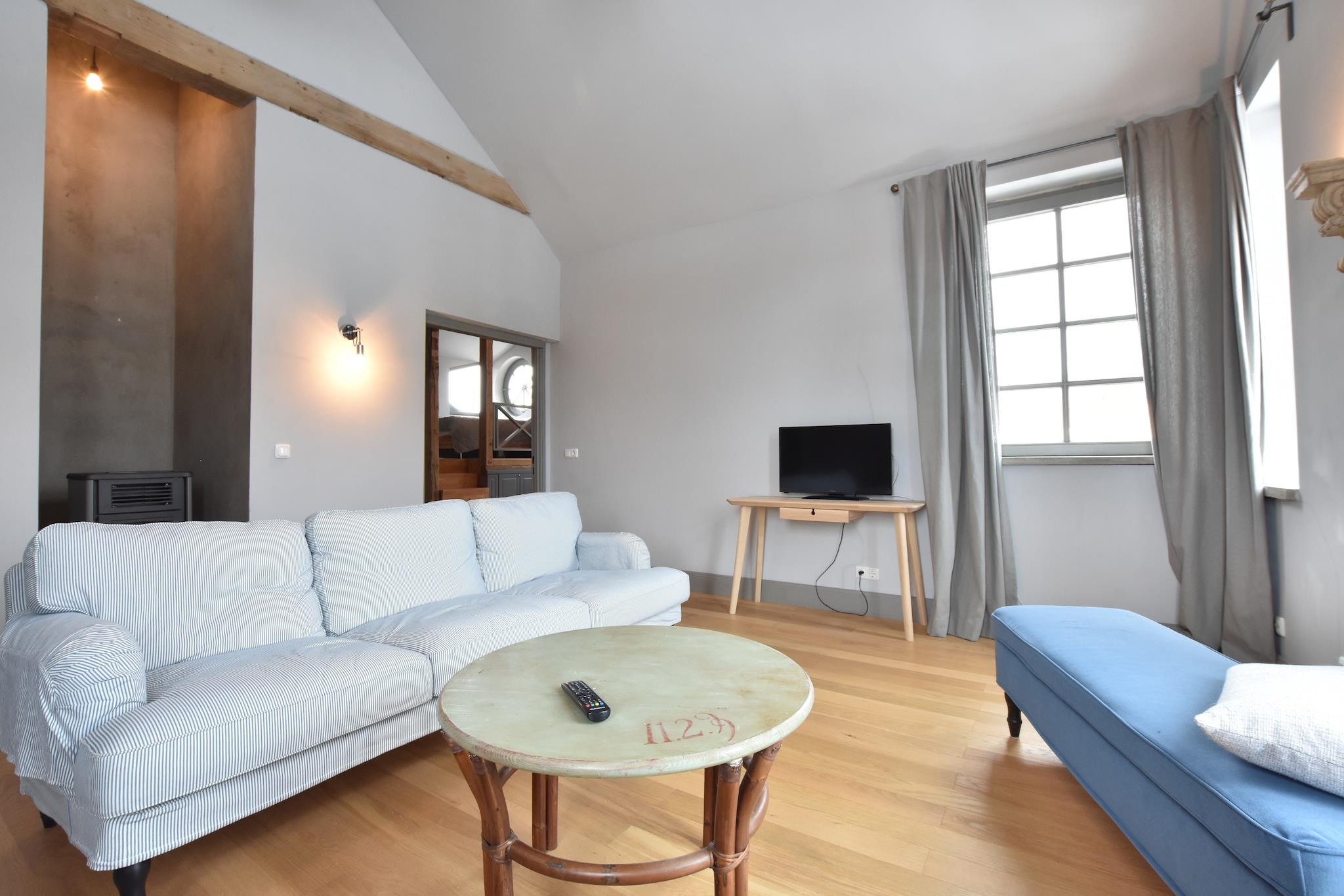 In der 1. Etage: (Diele(über Außentreppe), Wohnküche(Esstisch, Kochherd(Ceranfeld), Backofen, Spülmaschine, Kühl-/Gefrierkombination), Wohn-/Schlafzimmer(Doppelklappbett , TV, Kaminofen, Herd, Sitzecke, Balkon), Badezimmer(Dusche(ebenerdige Dusche), Waschbecken, Toilette), Empore(Doppelbett king size), Empore(über steile Treppe)(Einzelbett), Doppelbett king size, Heizung(Fußbodenheizung), Dachterasse) Pferdestall, Grill, Babybadewanne, Babybett, Garten, Gartenmöbel, Parkplatz, Spielgeräte, Hochstuhl, Spielzeug