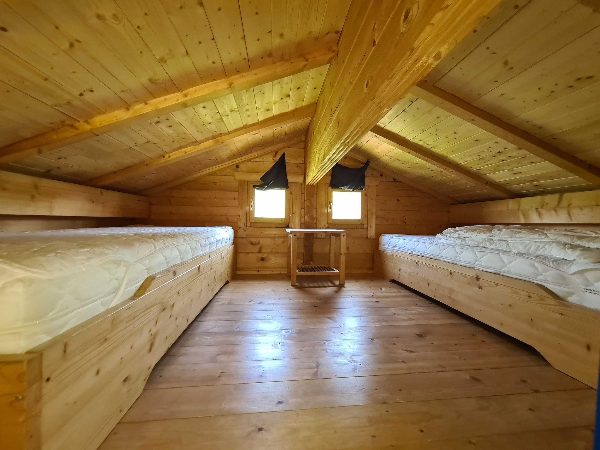 1 SZ mit 1,60 Doppelbett, ein SZ mit zwei 0,90 x 2 m Einzelbetten; Schlafboden ( keine Stehhöhe ) zwei 0,90 x 2 m Einzelbetten