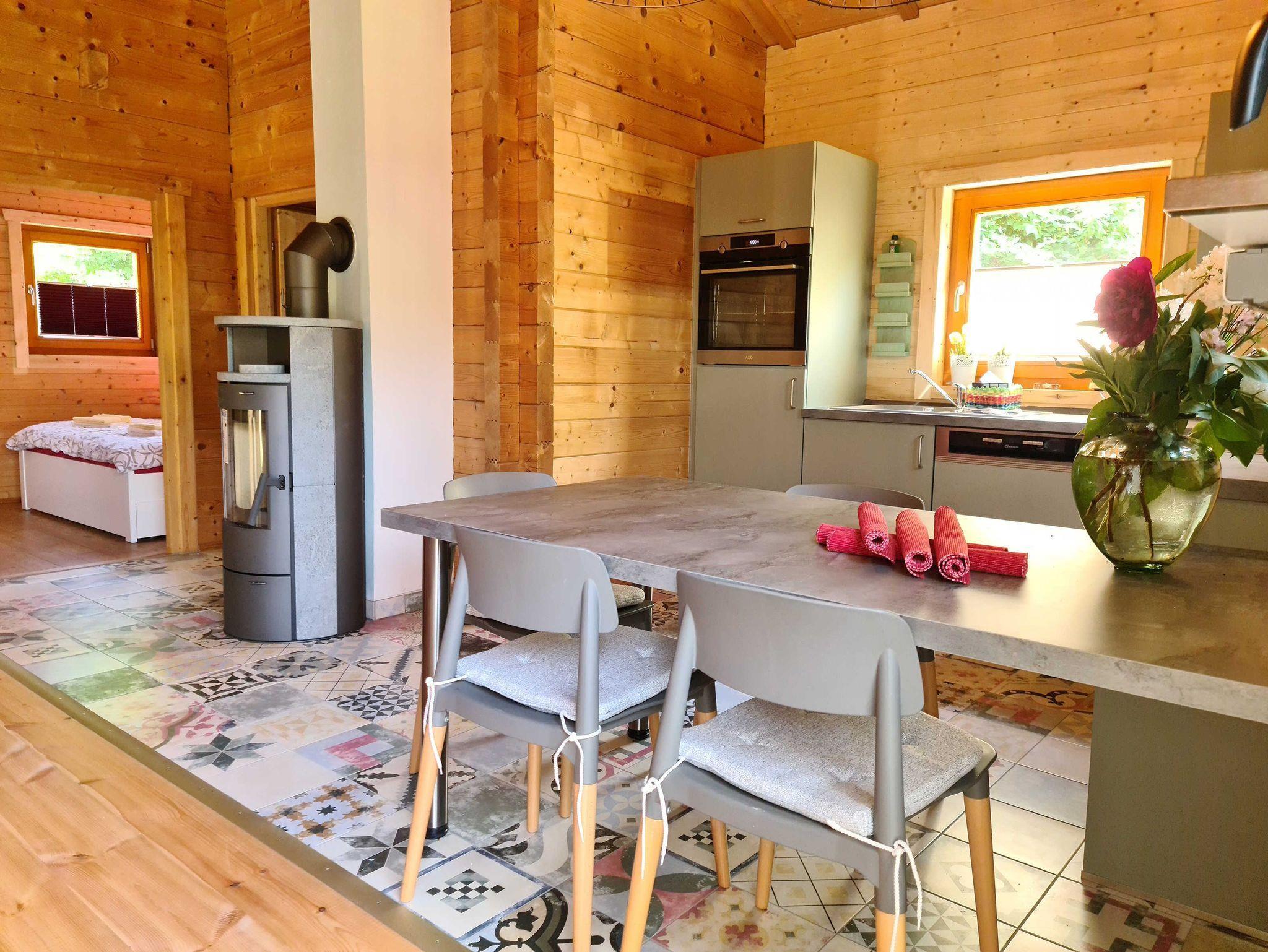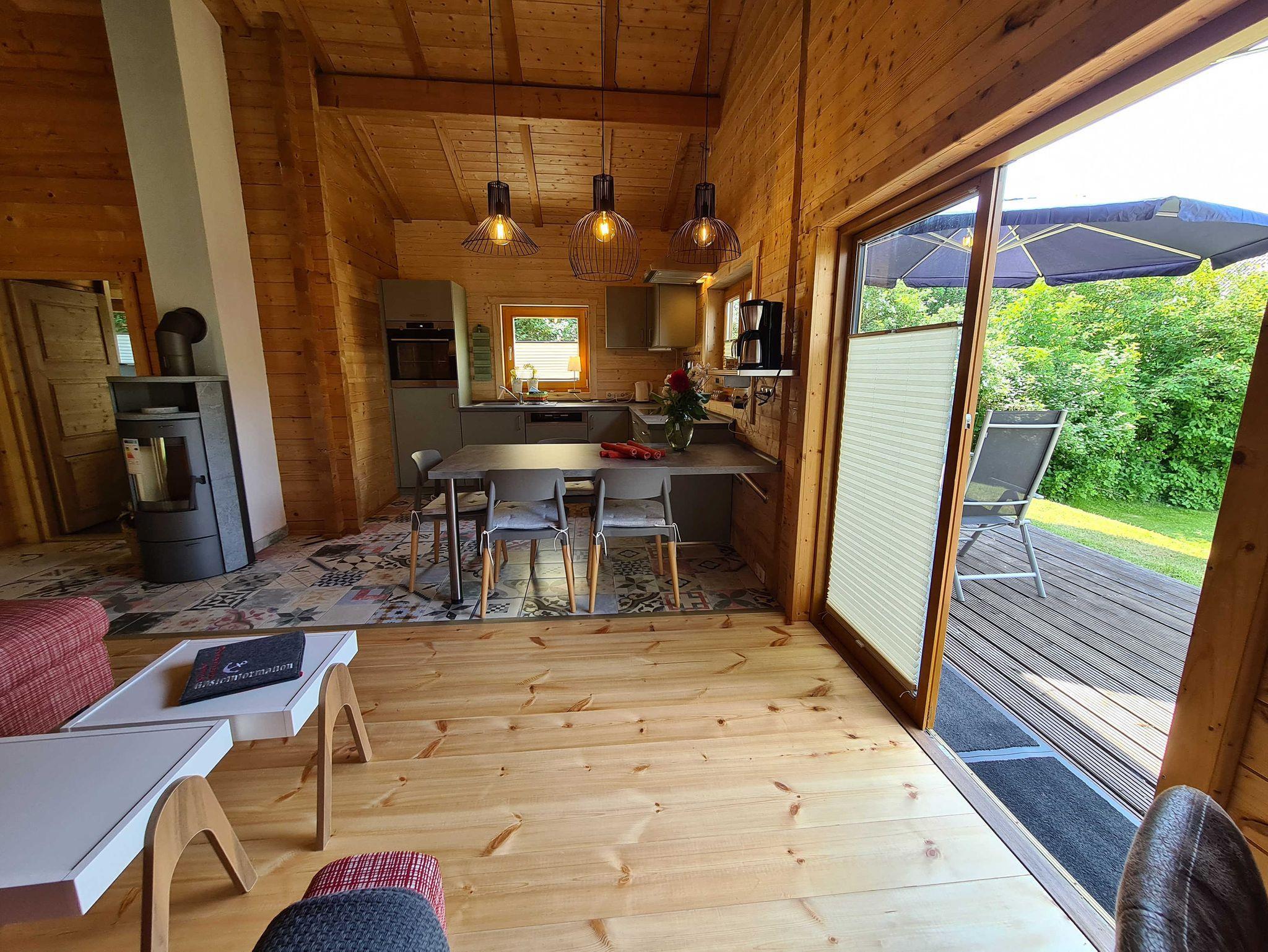 Auf dem 1600 qm großen Grundstück bieten wir in dem 50 qm großen Holzhaus besten Urlaubskomfort: ausreichend Platz für Familien, möblierte Terrasse mit Grill, rustikale Ausstattung mit Kaminofen als Hauptheizung und Fußbodenheizung im Bad und Küchenbereich.