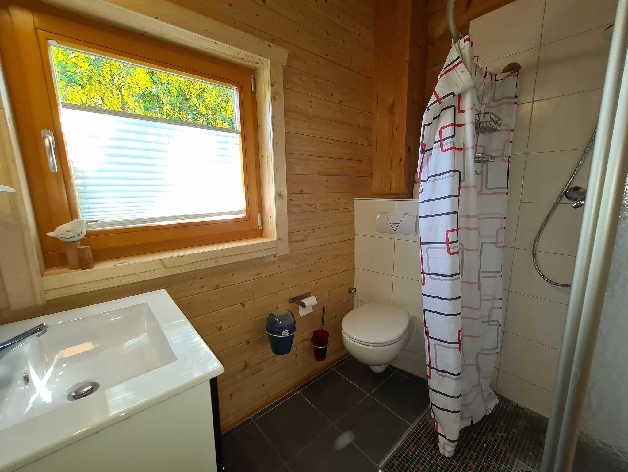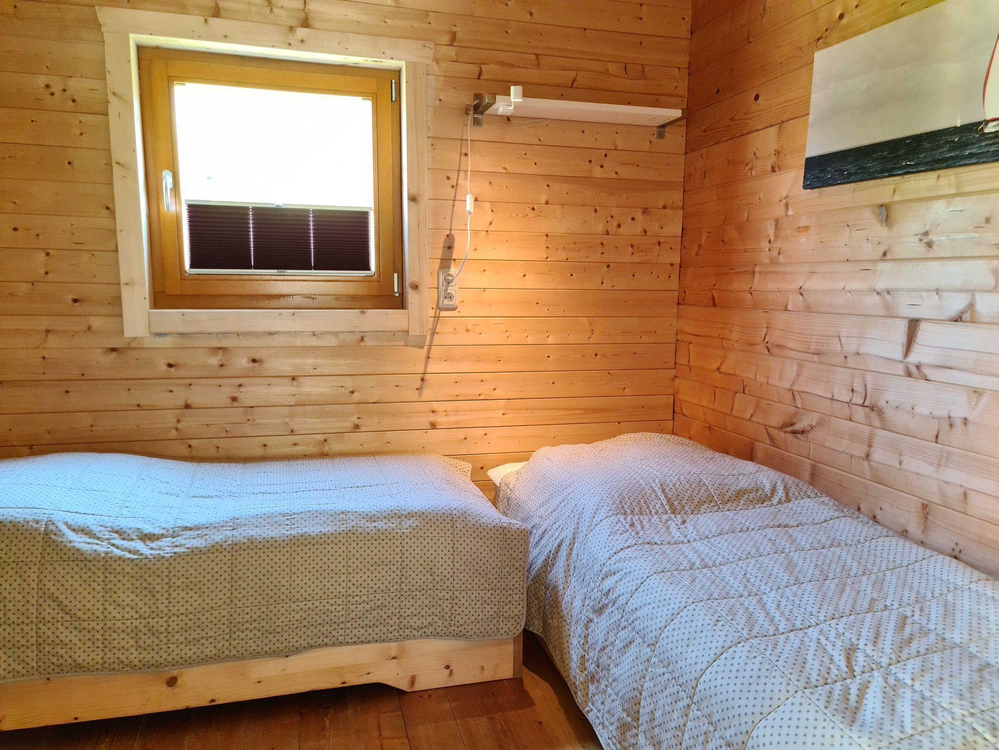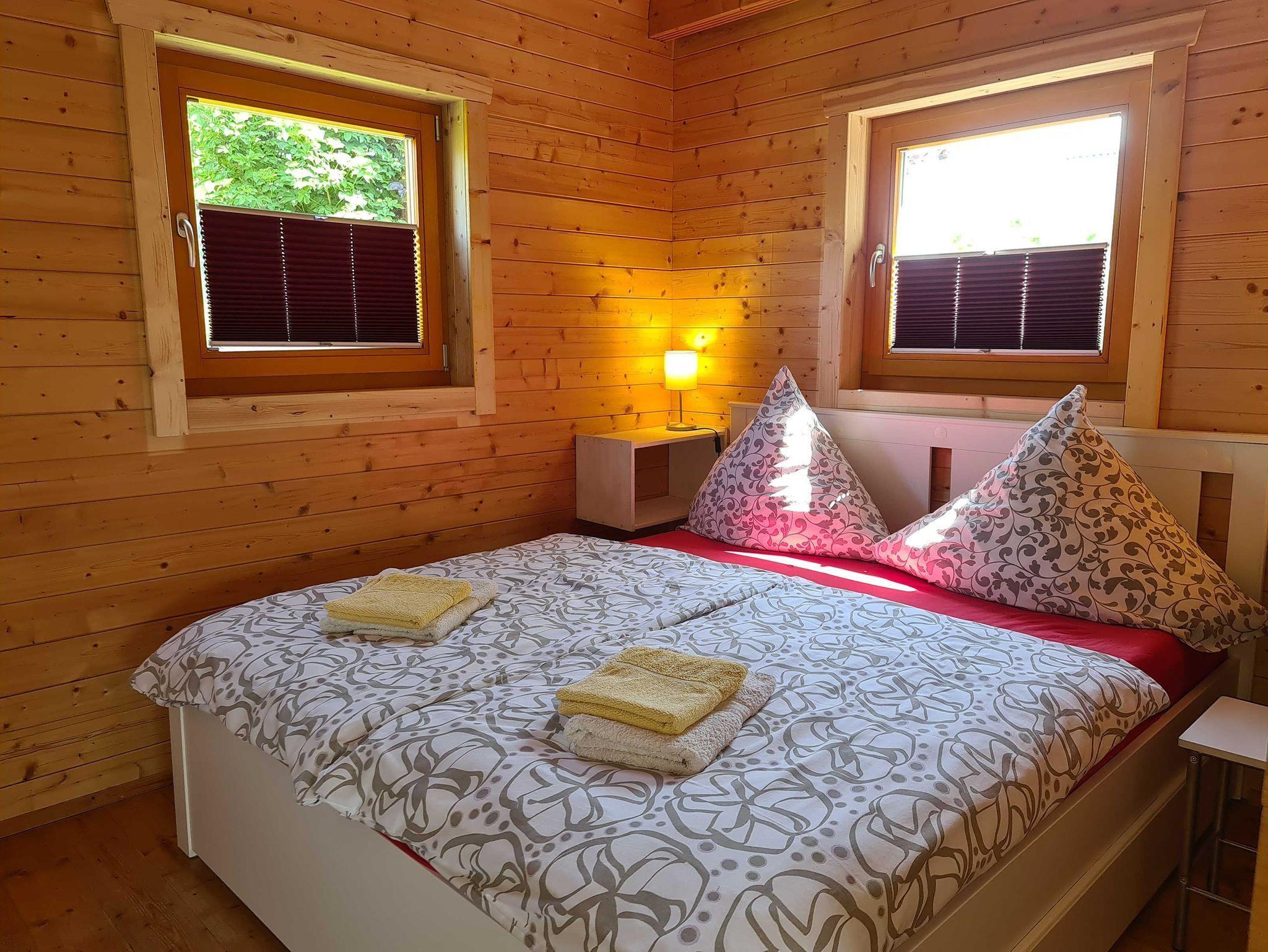 Die Holzhäuschen sind alle 50m² groß und unterscheiden sich etwas in Einrichtung und Zuschnitt der Räume.