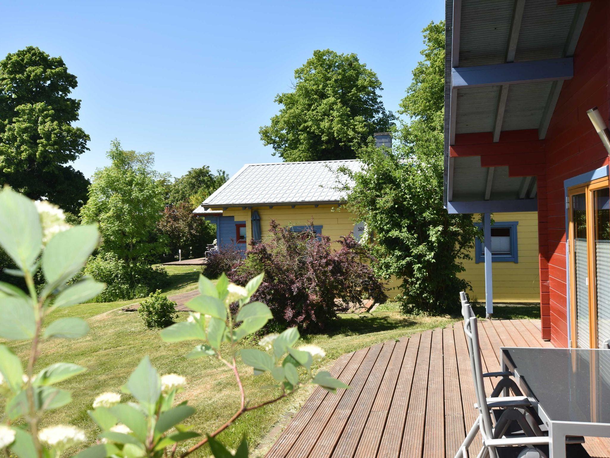 Das Haus ist ebenerdig - mit offenem Wohnraum und moderner Küche und Eßtisch und direktem Ausgang auf die sonnige Terrasse mit Blick in den Garten.