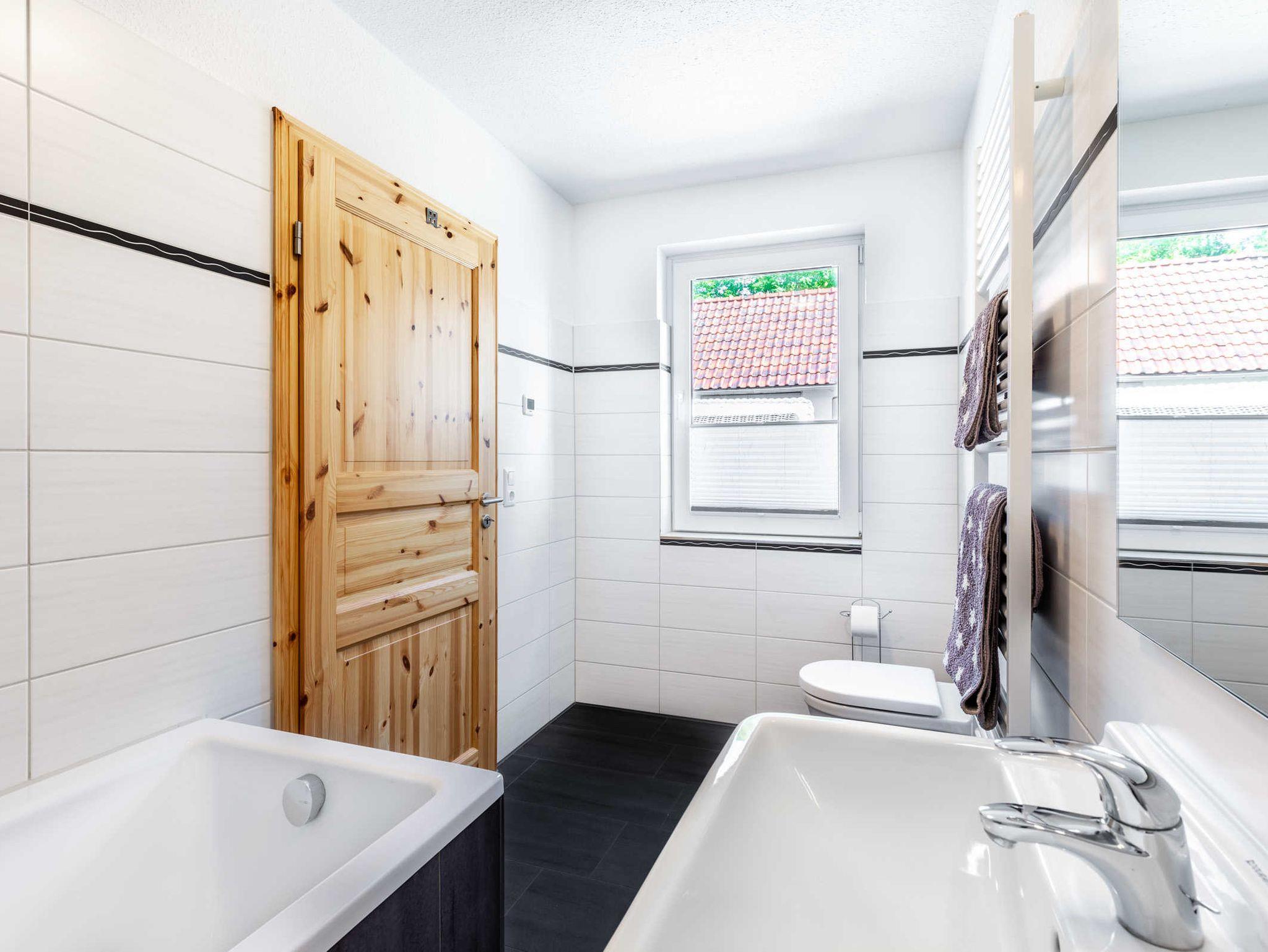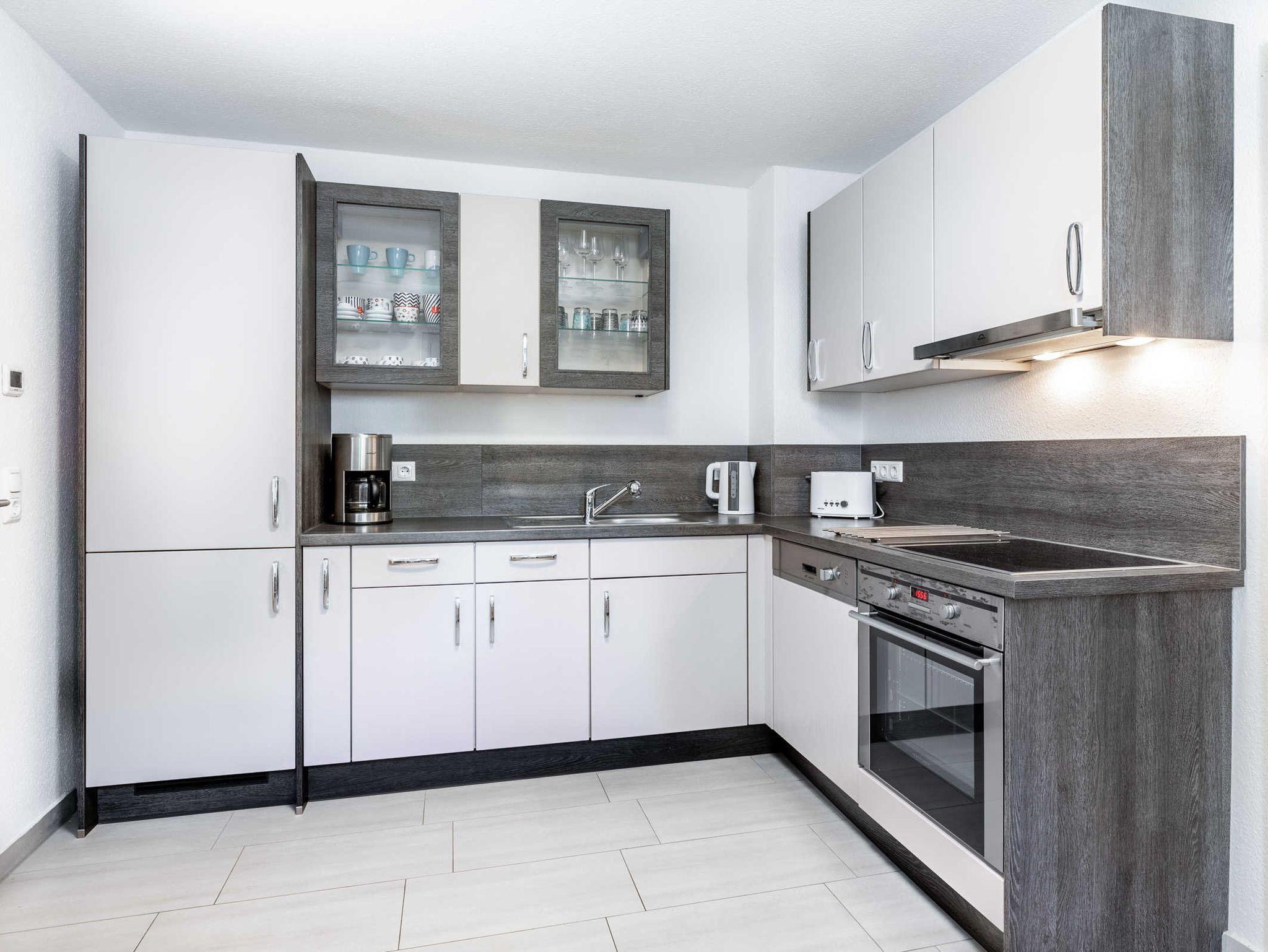 Die separate Küche ist umfangreich ausgestattet und verfügt über einen Geschirrspüler, 4- Platten Ceranherd, Backofen, Kühlschrank mit Gefrierfach, Mikrowelle, Kaffeemaschine und Wasserkocher sowie Esstisch. Das Bad ist mit Badewanne, WC und Waschmaschine ausgestattet.