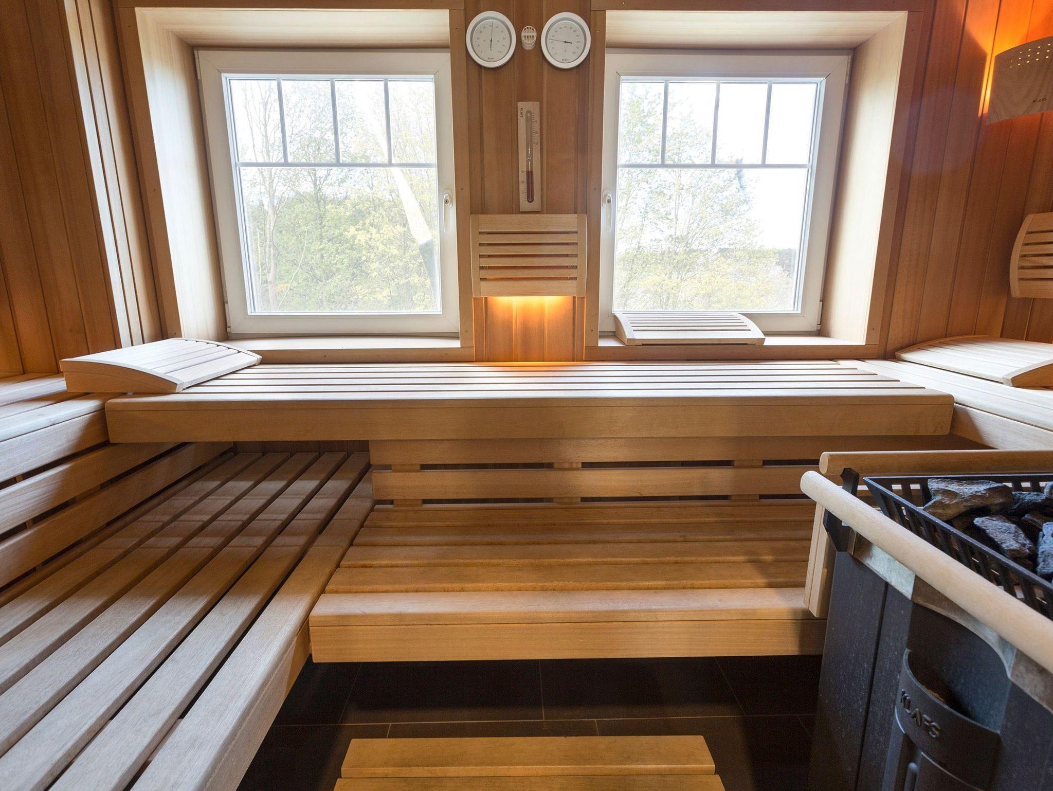 Die zwei Ferienwohnungen im Obergeschoss verfügen jeweils über einen Wohnraum mit integriertem Küchen- und Essbereich und Kaminofen, vier separaten Schlafzimmern mit Balkonen und drei Bädern. Die Ferienwohnung Usedom hat einen 40m² großen Saunabereich mit Dusche, Ruheliegen und Balkon.