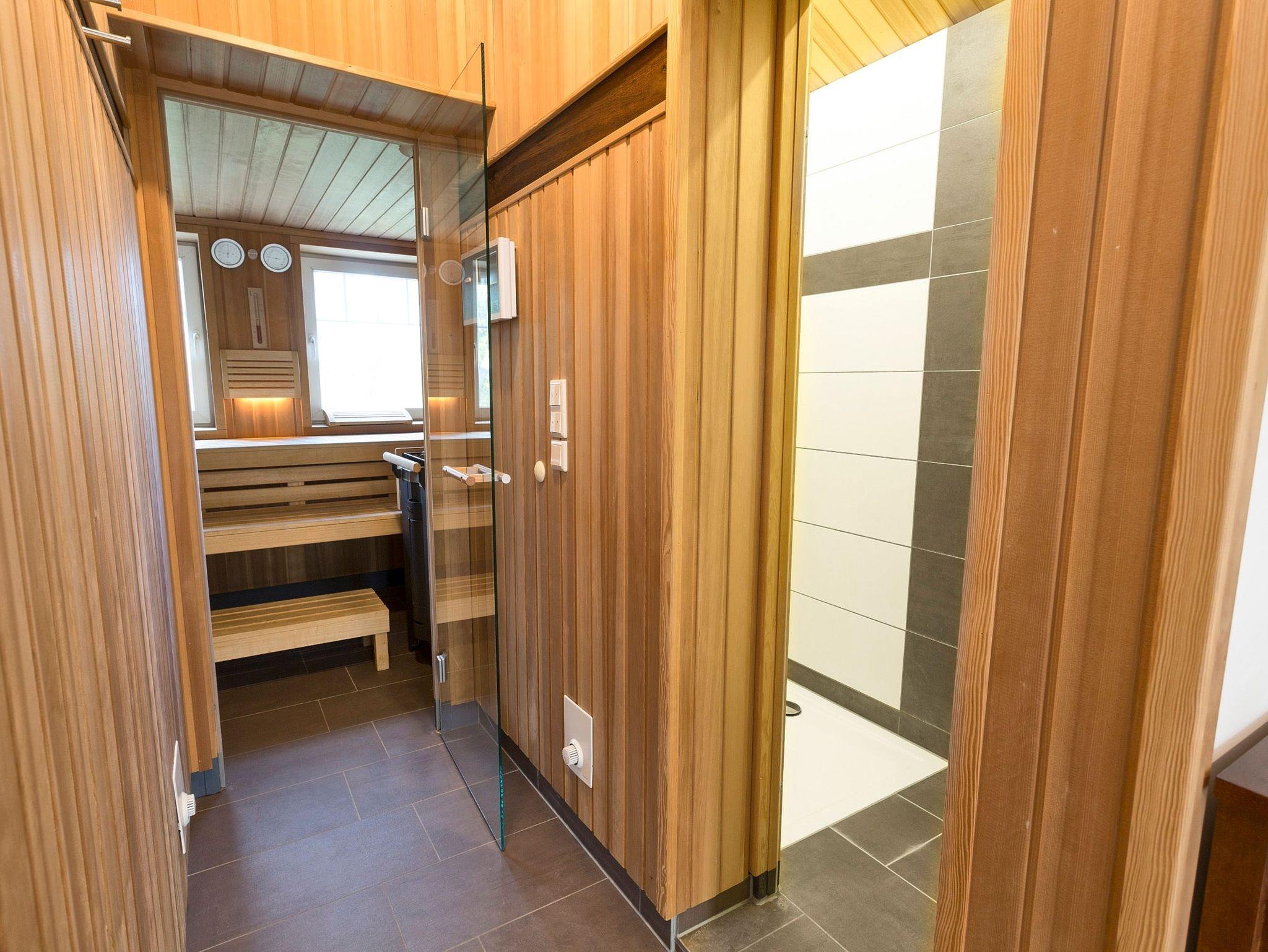 Die beiden Ferienwohnungen im Erdgeschoss verfügen jeweils über einen Wohnraum mit integrietem Küchen- und Essbereich und Kaminofen, 2 Schlafzimmer, zwei Bäder und eine eigene Sauna.