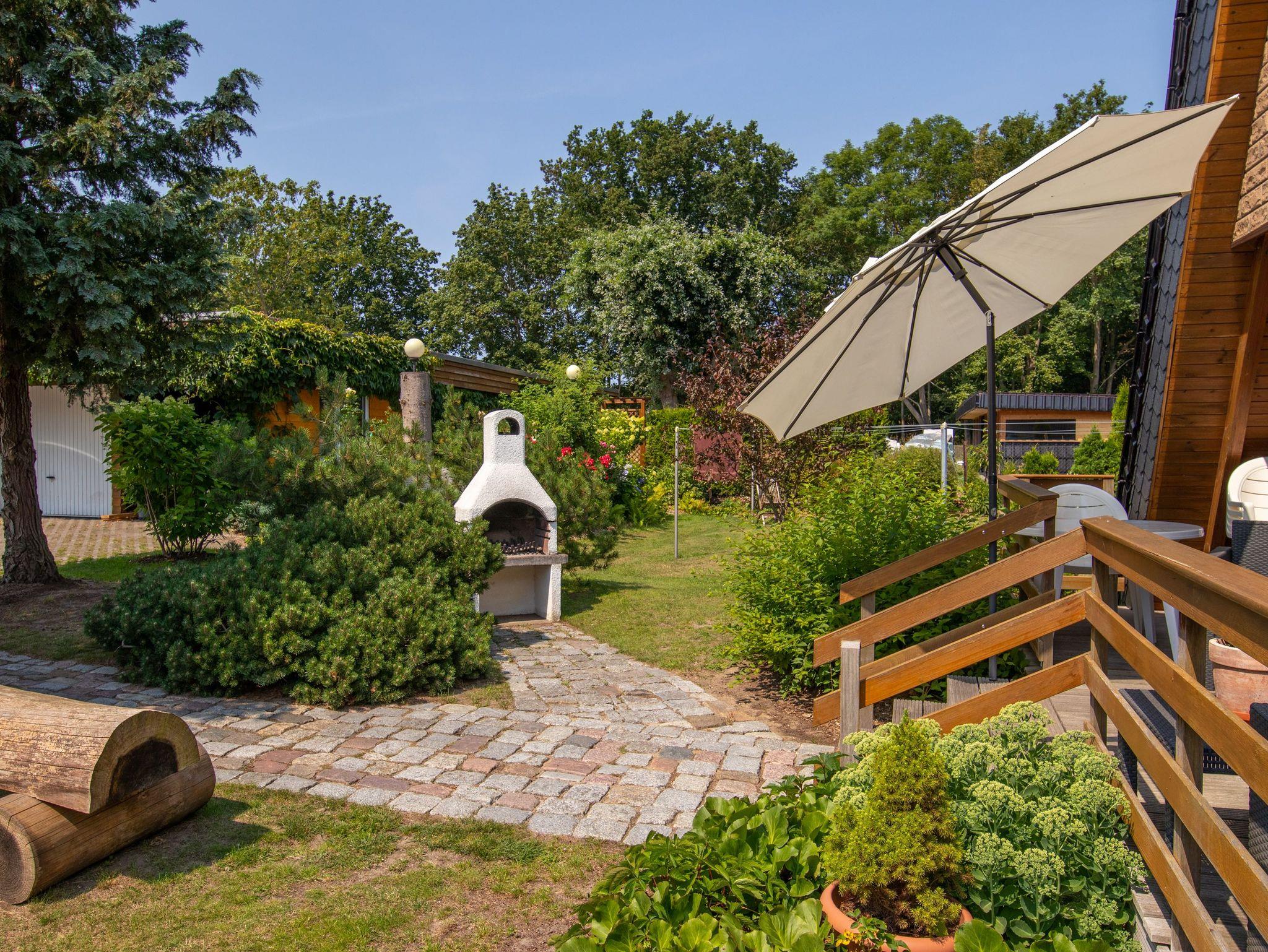 Gemütliche Finnhütte in Freest mit Terrasse, Grillplatz und familienfreundlicher Ausstattung für entspannte Urlaubstage.