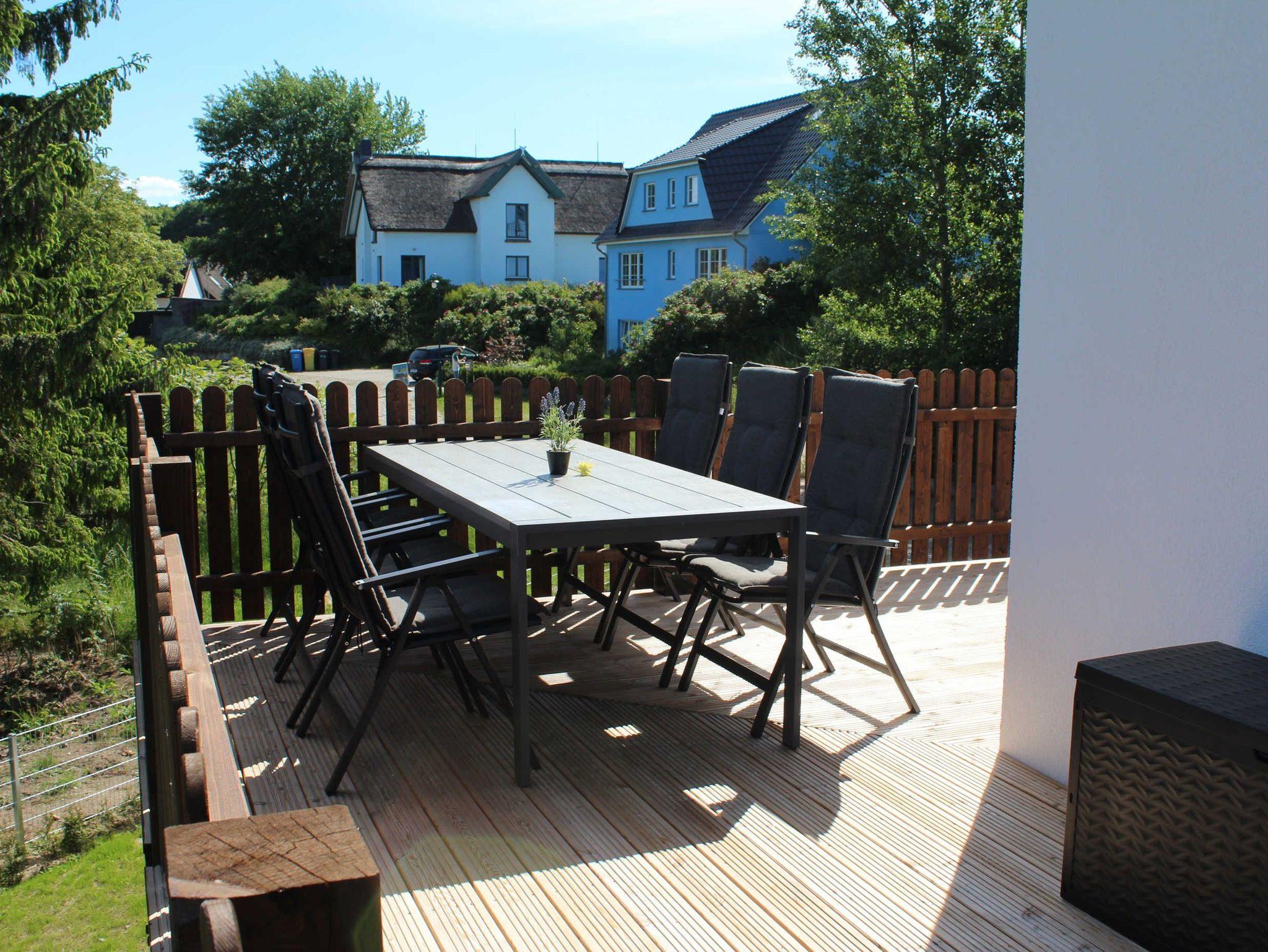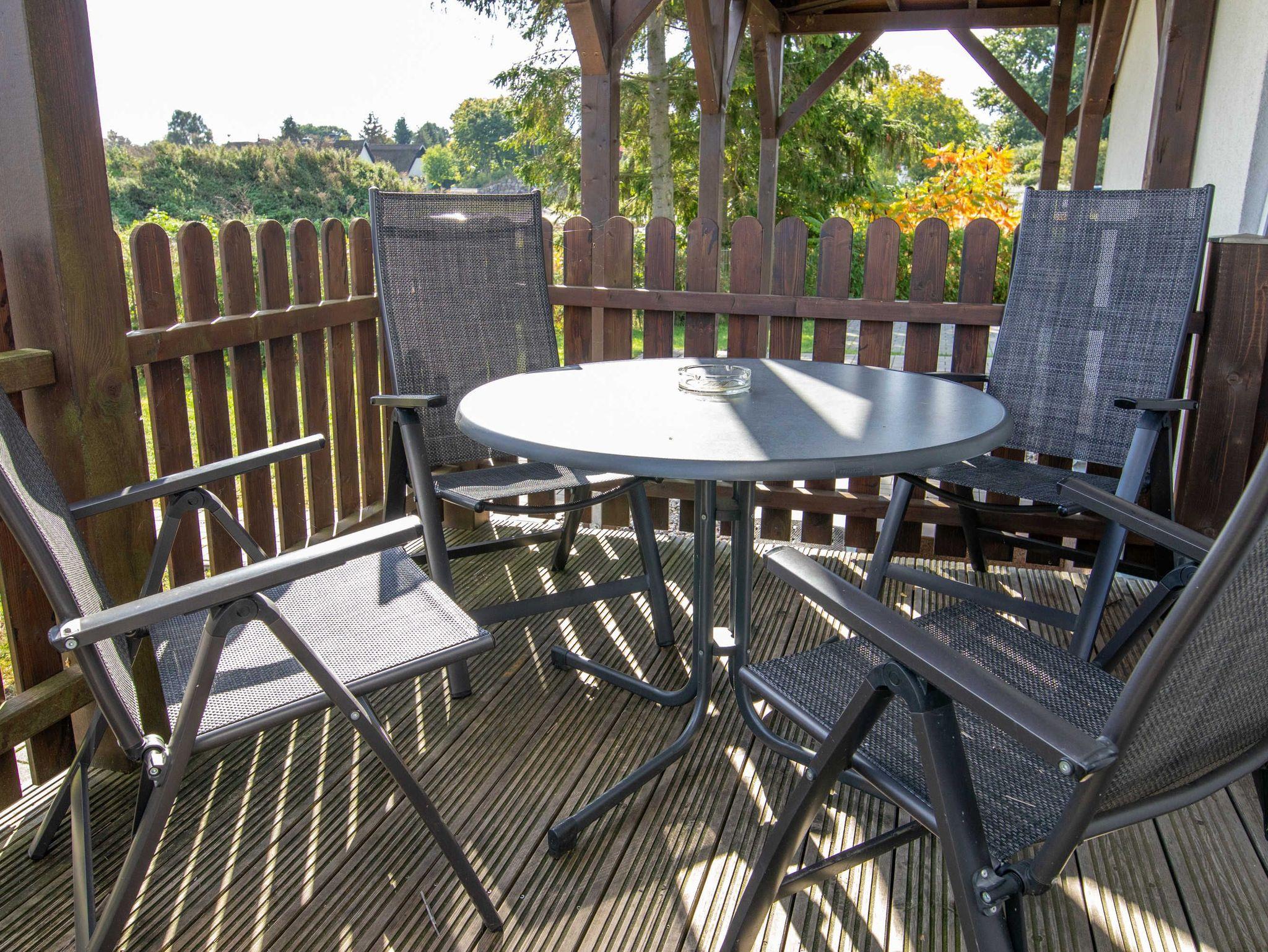 Die 70 m² Ferienwohnung befindet sich im Obergeschoss der Doppelhaushälfte und verfügt über eine voll ausgestattete Küche im integrierten Wohn-/Essbereich mit Geschirrspüler, Kühl- und Gefrierschrank, Ceranfeld, Backofen, Kaffeemaschine, Wasserkocher und Toaster. Das Schlafzimmer ist mit einem Doppelbett (180x200) ausgestattet. Das Bad enthält eine Sauna, Badewanne und WC. Vom Wohnbereich haben Sie direkten Zugang auf den eigenen Balkon mit Gartenmöbeln. Diverse Spiele und Bücher sind vorhanden.