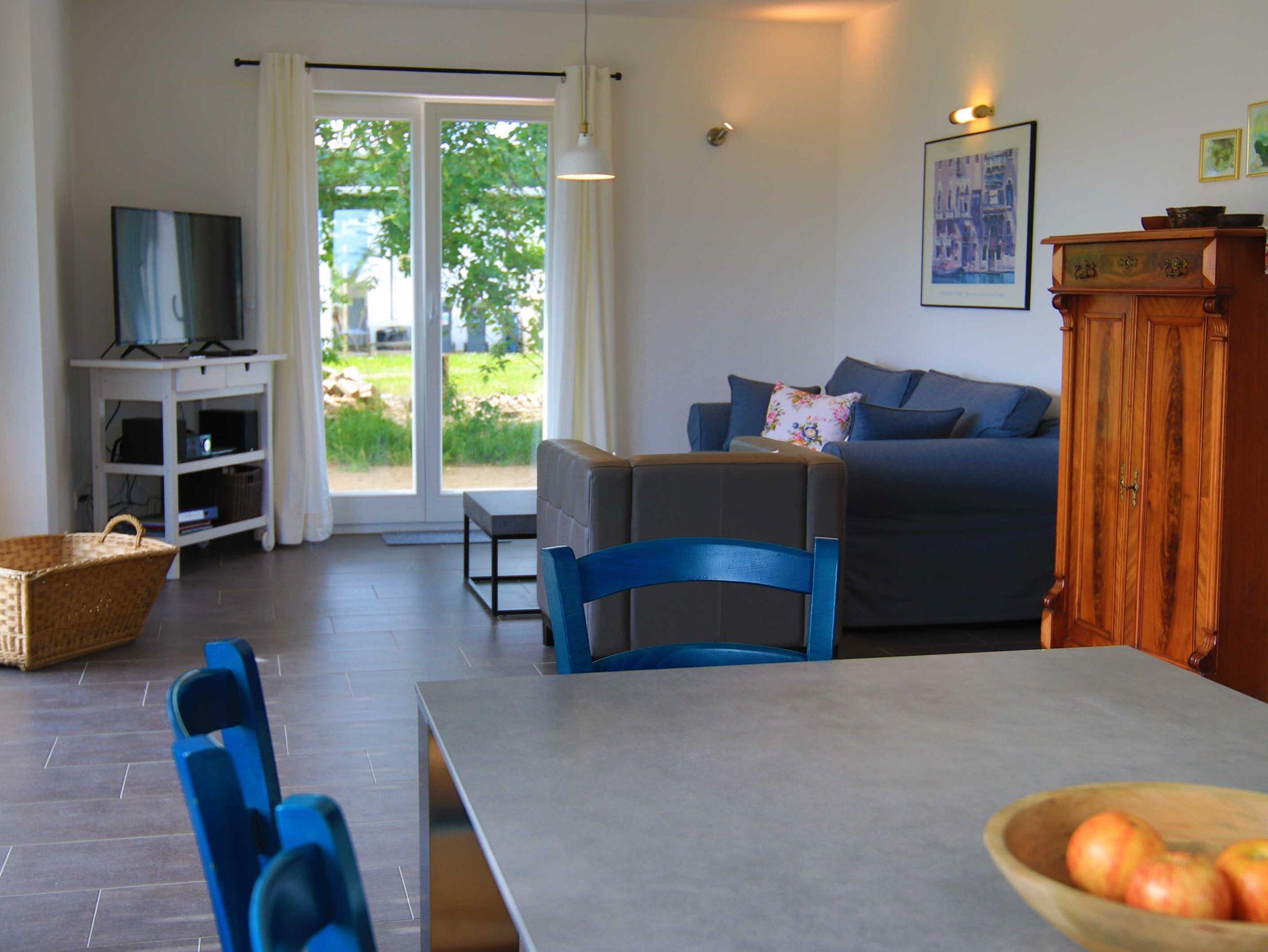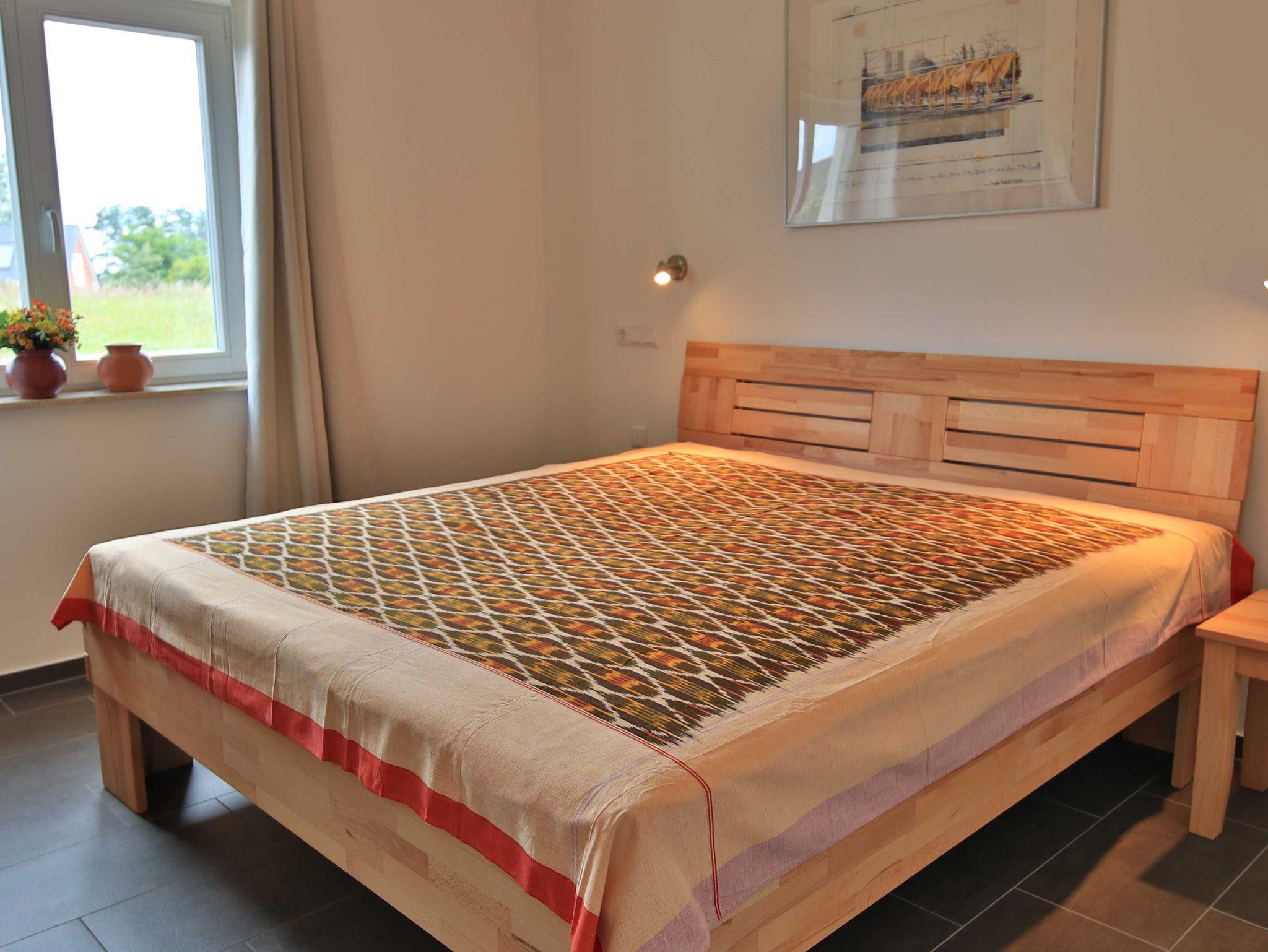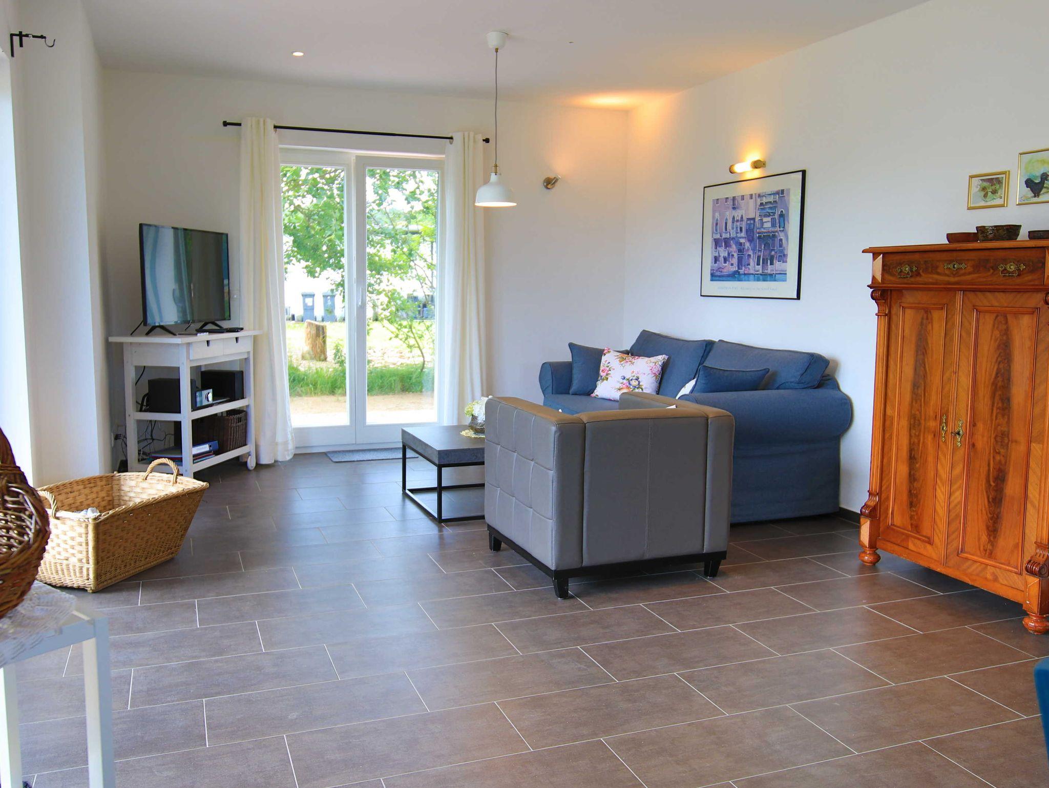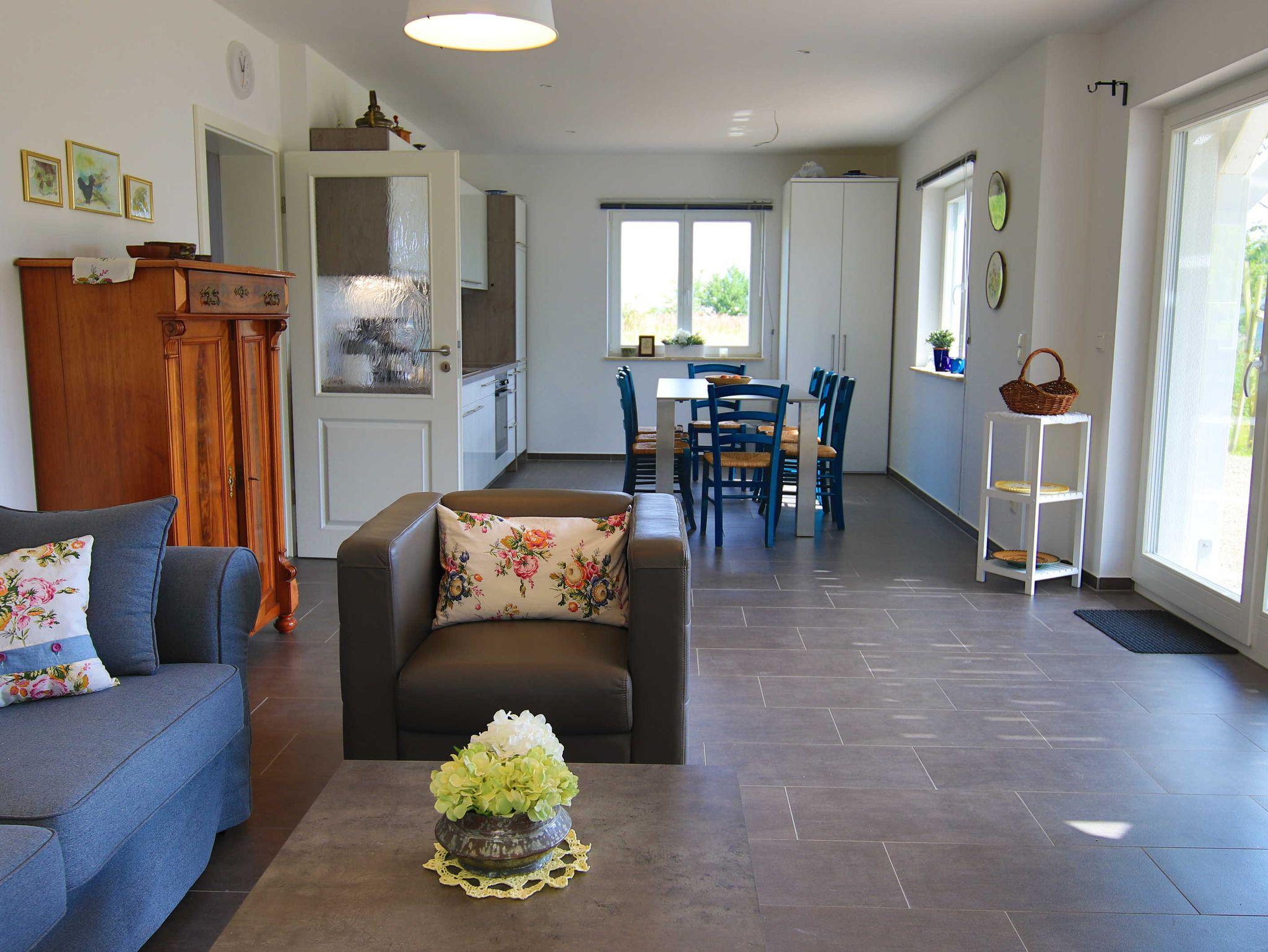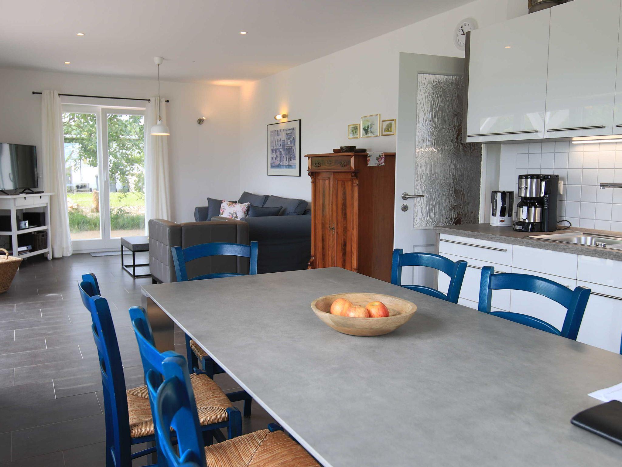 Das Ferienhaus An der alten Räucherei verfügt im Erdgeschoss über einen großen Wohnraum mit offener Küche und Essbereich, einem Schlafzimmer mit Doppelbett und einem Bad mit Dusche und WC.