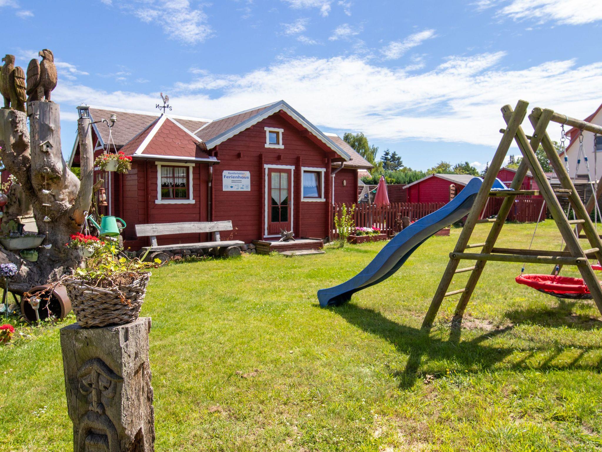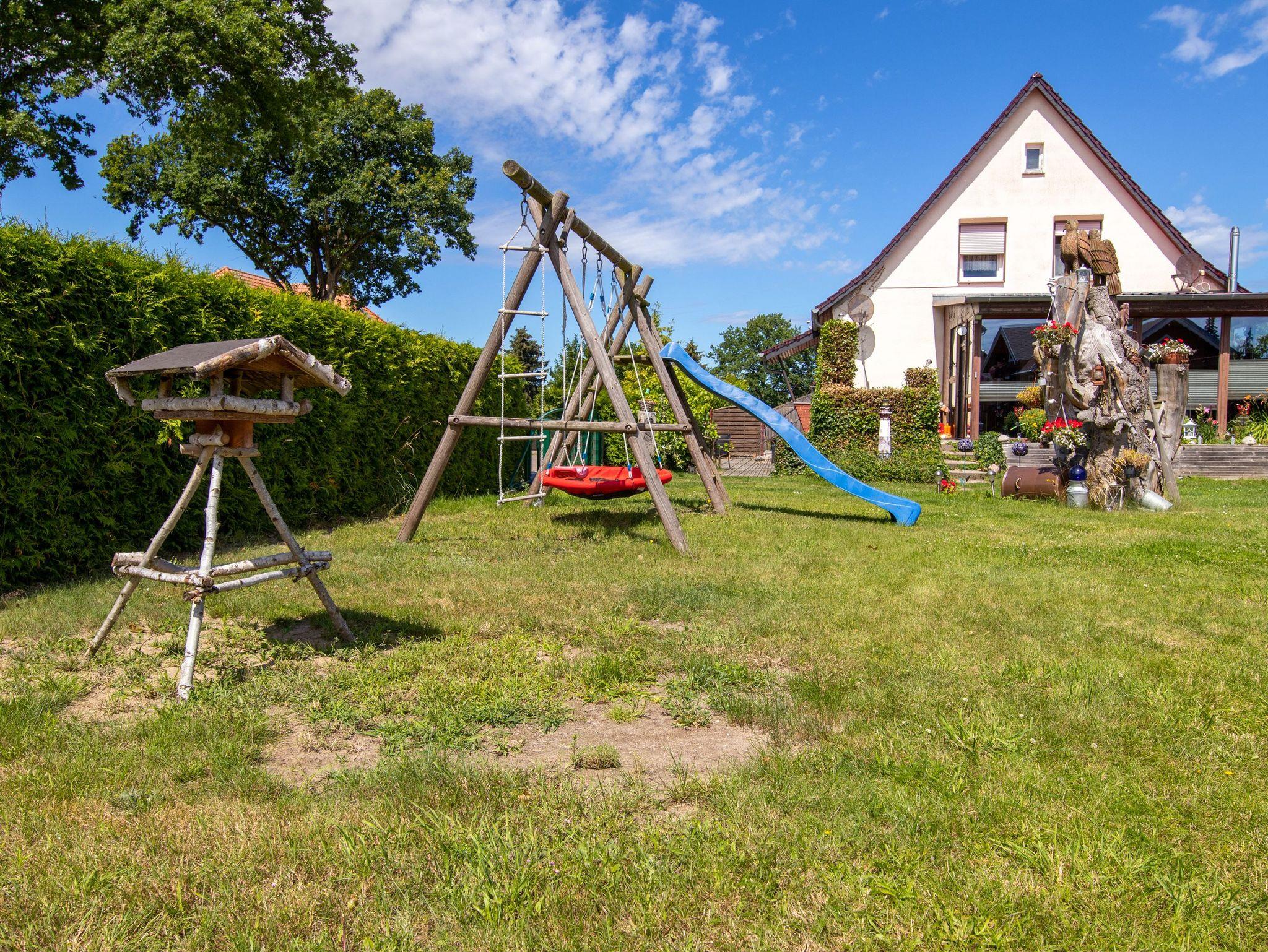 Gemütliches Ferienhaus Zur Sonne am Waldrand von Freest mit Terrasse und Spielplatz für Familien.