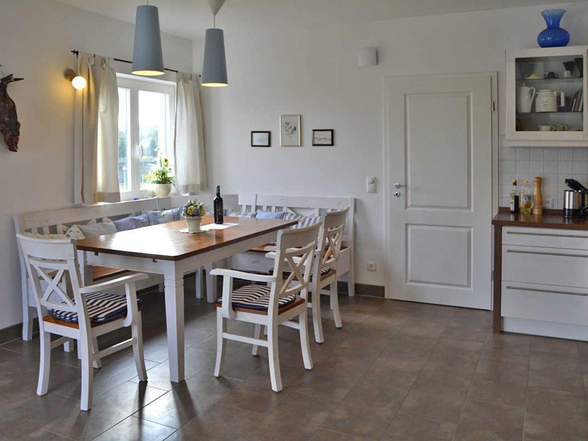 Das reetgedeckte, bildschöne Ferienhaus mit Seeblick und großem Garten liegt auf einer Anhöhe im idyllischen Fischerdorf Freest nah am kleinen Fischerhafen in Freest.