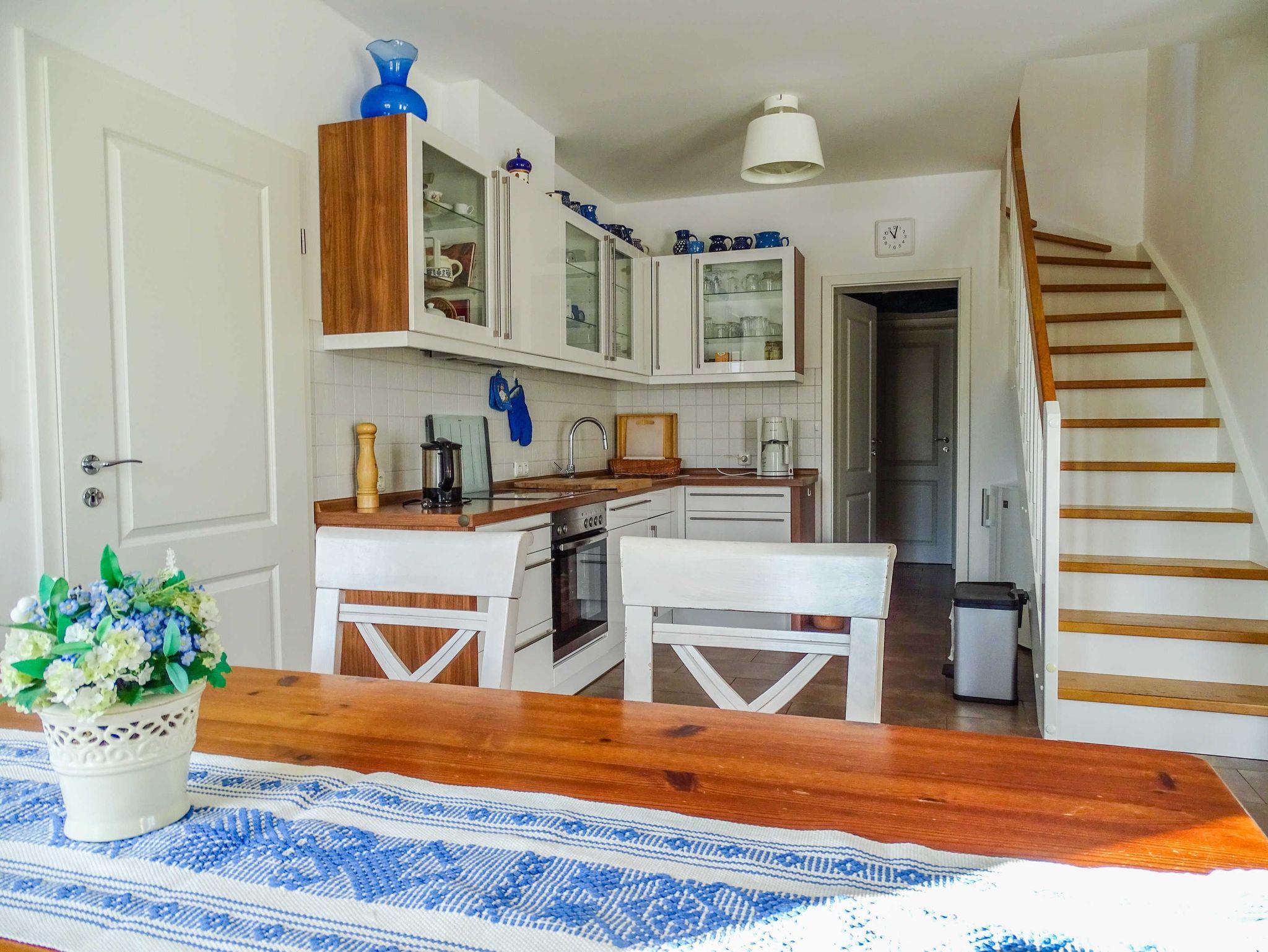 Die reetgedeckte bildschöne Doppelhaushälfte mit eigenem Eingang und Seeblick erstreckt sich über 2 Etagen und ist ca. 100 m² groß. Die untere Etage hat eine große Wohnküche, ein Schlafzimmer mit Doppelbett und ein Bad mit Dusche/WC. In der oberen Etage befindet sich eine Galerie, einen großzügiger gemütlicher Wohnbereich mit Schlafcouch, ein Schlafzimmer mit Doppelbett sowie ein Bad mit Wanne und WC. Die Ausstattung ist hochwertig und stilvoll. Aus allen Fenstern und von der Terrasse haben Sie direkten Blick auf den idyllischen kleinen Fischerhafen.