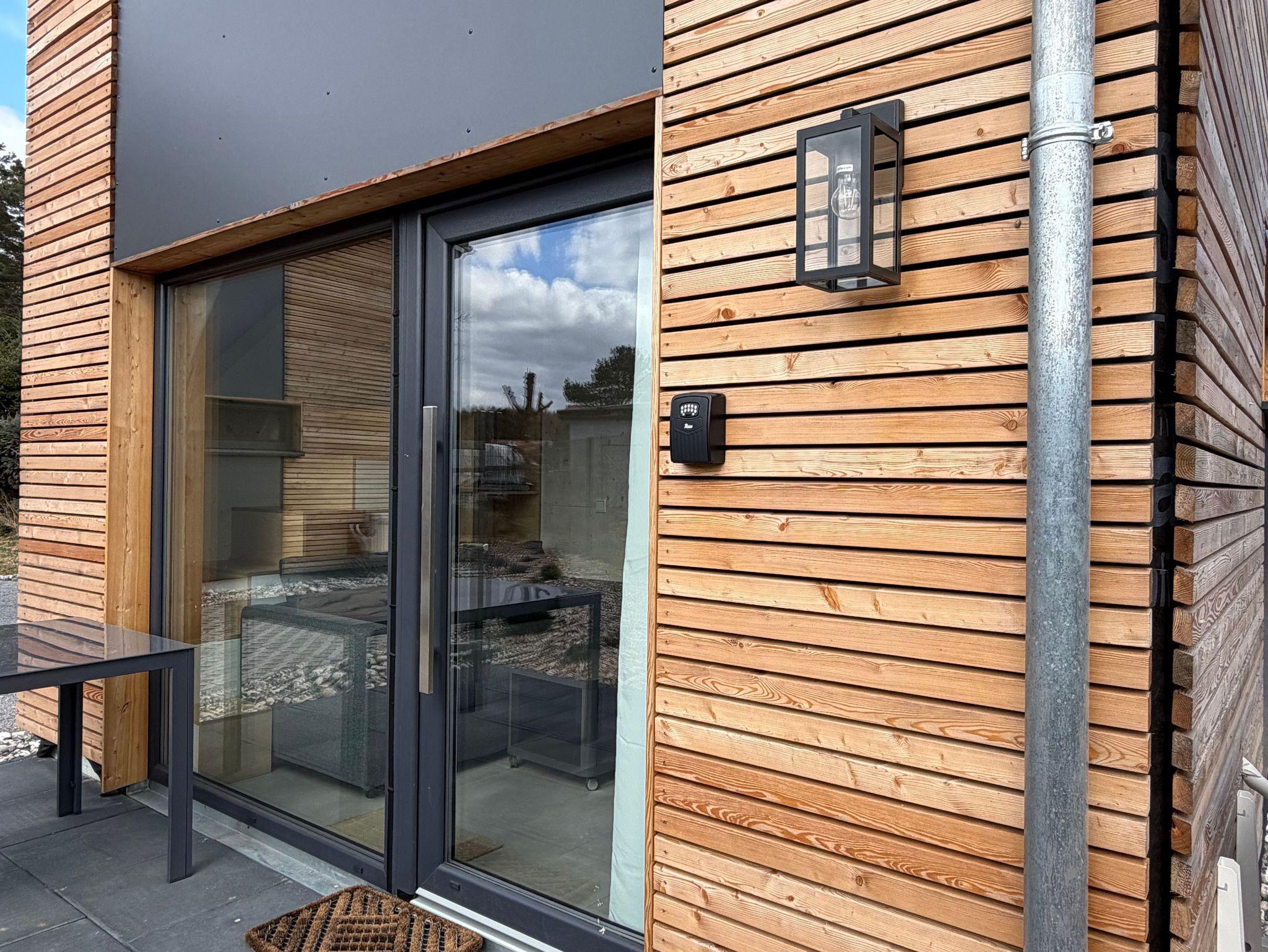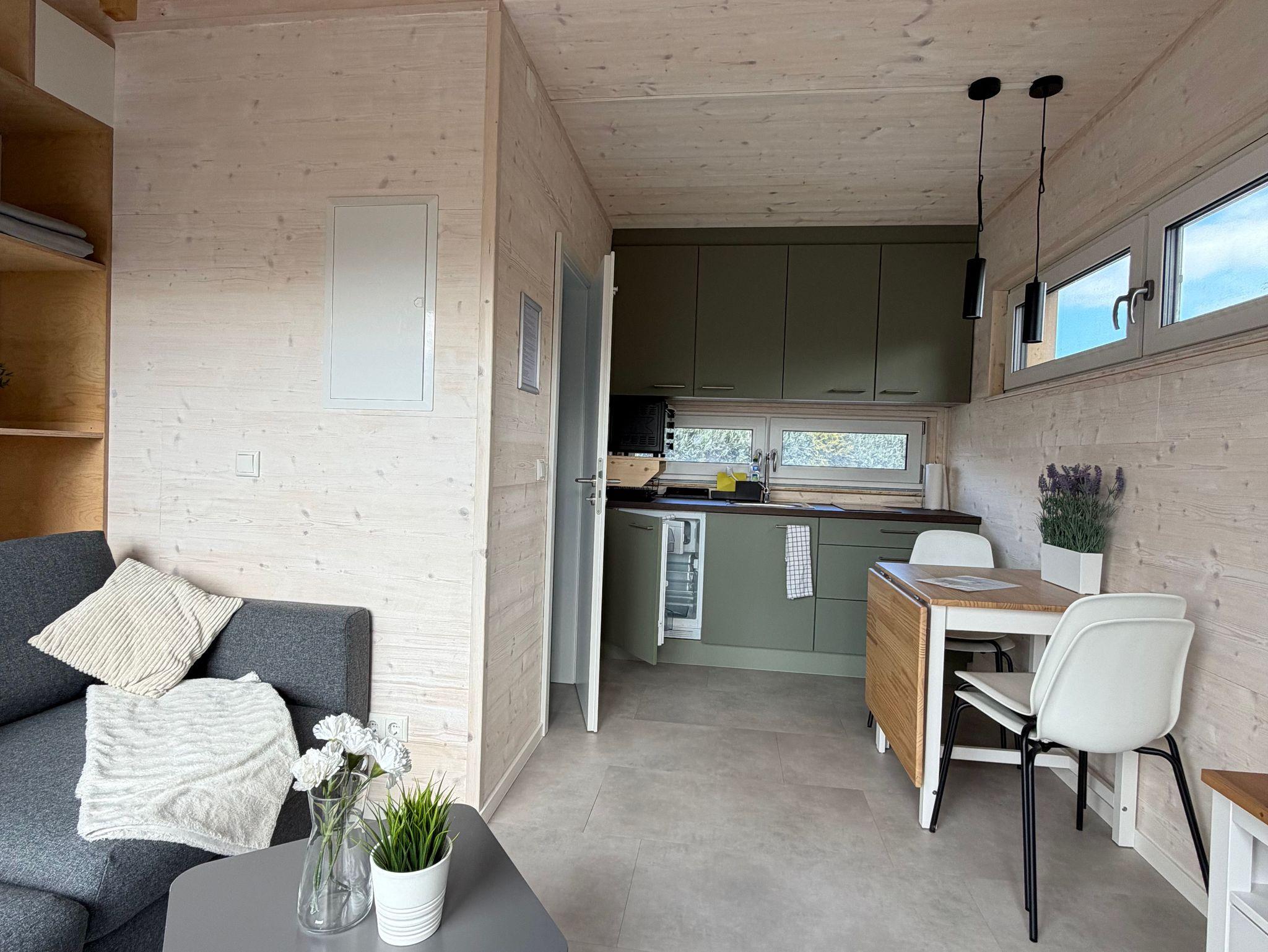 Modernes Tiny House in ökologischer Holzbauweise nahe Hafen und Strand, mit Terrasse und kostenfreiem WLAN.