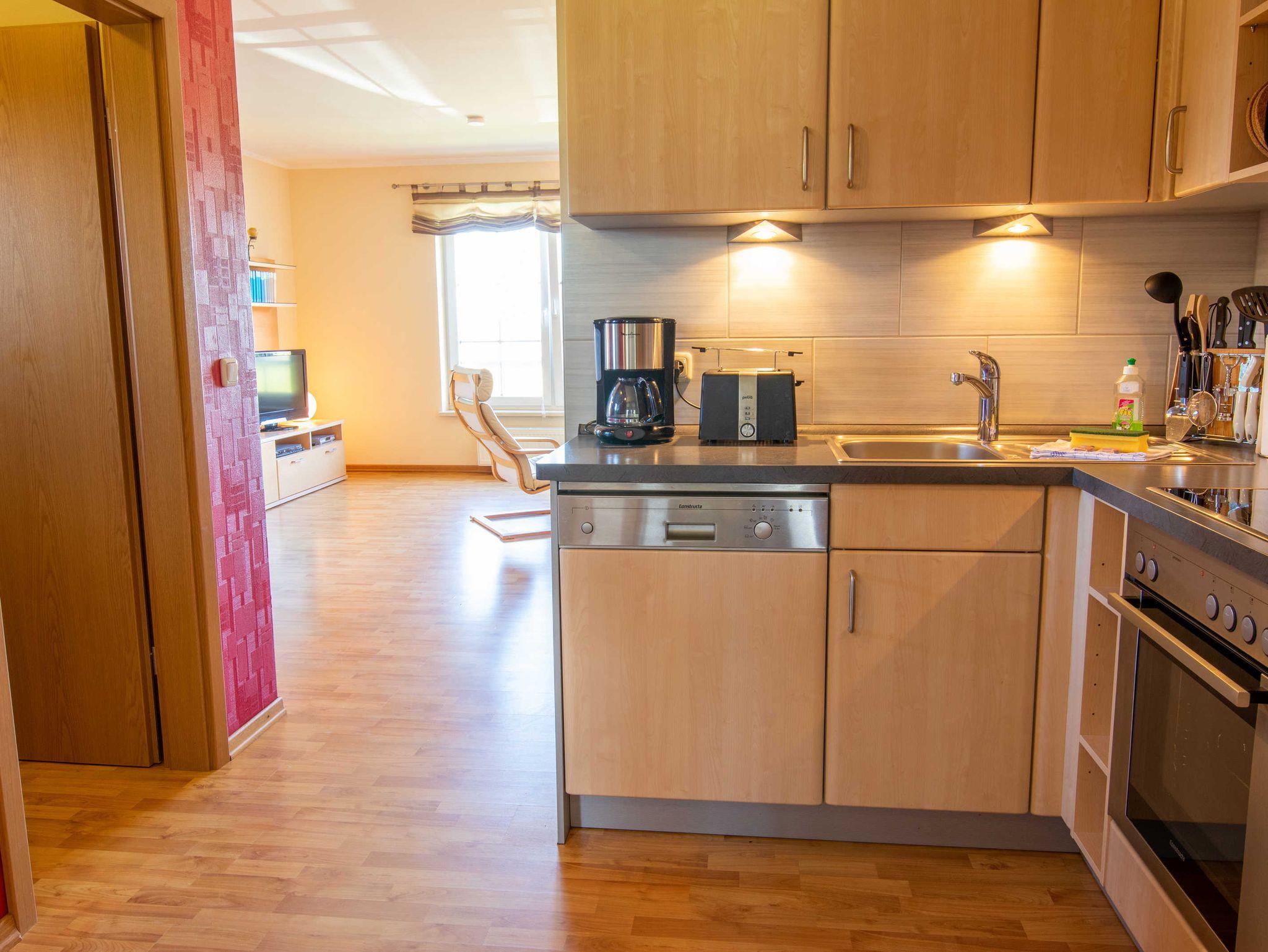 Die Ferienwohnung 1 im Blu Hus in Freest bietet auf rund 50 m² Platz für bis zu 4 Personen und befindet sich im Erdgeschoss des liebevoll gestalteten Hauses direkt am Freester Hafen. Hier wohnst du komfortabel und ganz nah am maritimen Leben, ideal für eine entspannte Auszeit an der Küste. Im Wohnzimmer findest du ein gemütliches Sofa, einen Fernseher sowie einen Esstisch, an dem ihr gemeinsam essen oder den Tag ausklingen lassen könnt. Die offene Küche ist mit Backofen, Herd, Spülmaschine und allen wichtigen Küchenhelfern ausgestattet, sodass du dich bei Bedarf auch im Urlaub problemlos selbst versorgen kannst. Vom Wohnbereich aus hast du direkten Zugang zur Terrasse, die sich bestens für ein Frühstück im Freien oder einen ruhigen Abend eignet. Die Wohnung verfügt über zwei separate Schlafzimmer. Das erste ist mit einem Doppelbett (160x200) und einem Kleiderschrank ausgestattet. Im zweiten Schlafzimmer befindet sich ein Etagenbett (90x200), ebenfalls mit Kleiderschrank, das sich besonders gut für Kinder oder getrennt schlafende Gäste eignet. Das Badezimmer verfügt über eine Dusche und ein WC. Dank der zentralen, aber ruhigen Lage am Hafen ist die Ferienwohnung der ideale Ausgangspunkt für Spaziergänge am Wasser, Ausflüge an den Strand oder entspannte Stunden im Ort. In Freest erwarten dich der kleine Strand, frischer Fisch direkt vom Kutter, ein traditionelles Fischerfest im August und das besondere Flair eines echten Küstendorfes.