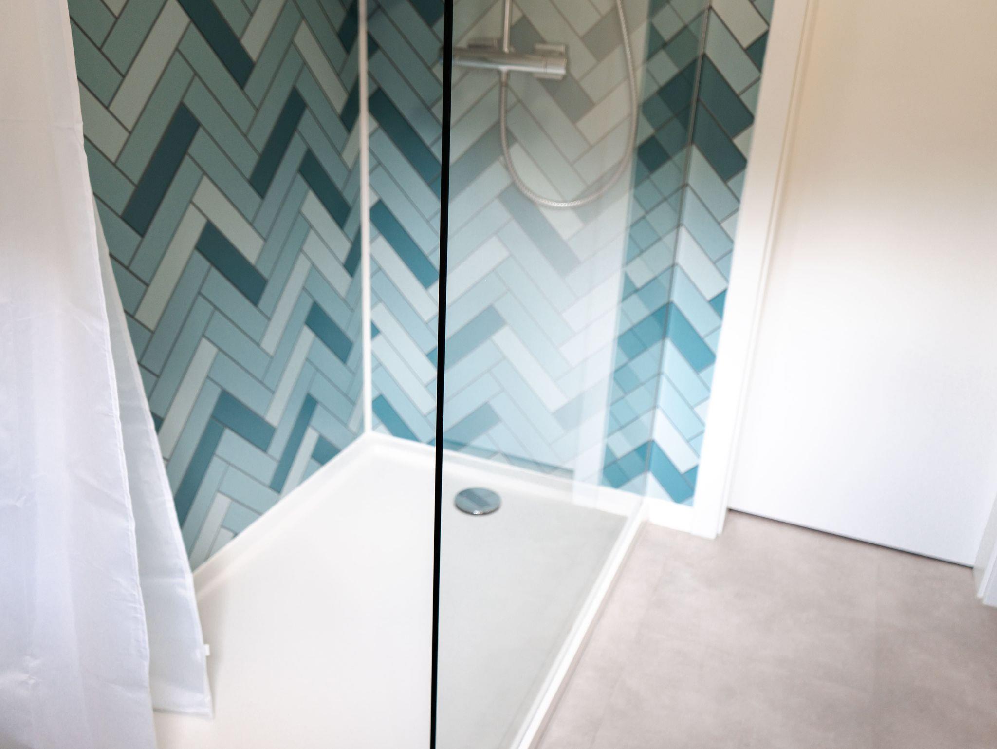 Das moderne Badezimmer verfügt über Dusche, Waschbecken, WC sowie einen 80-Liter-Boiler für warmes Wasser.
