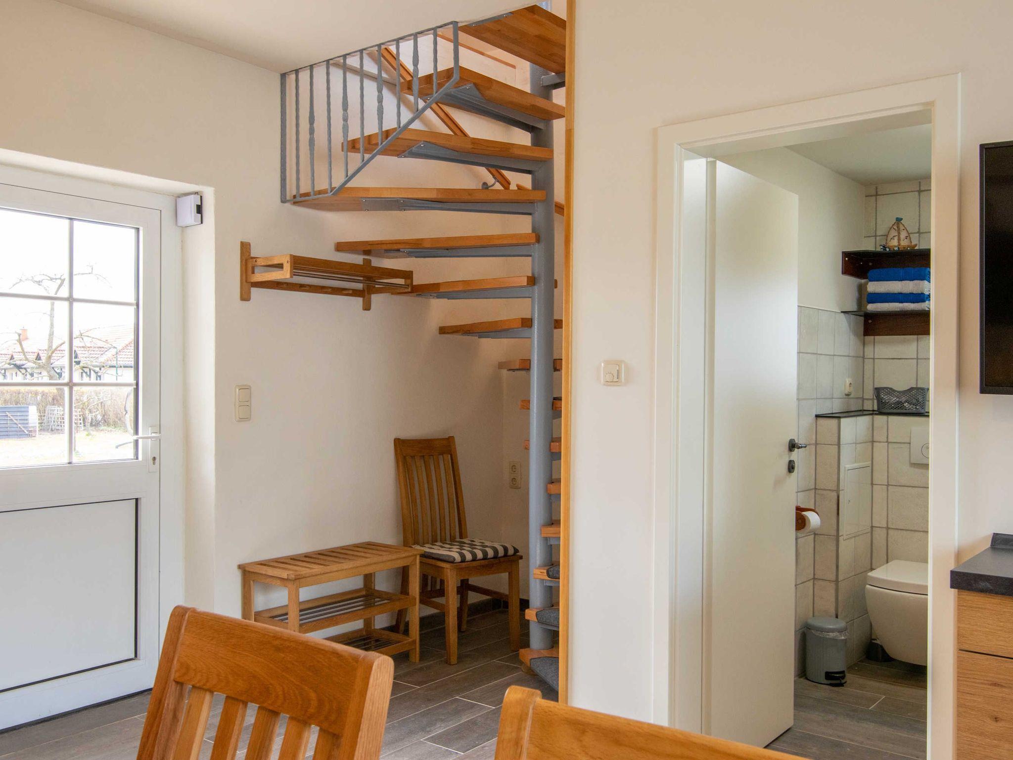 Das liebevoll renovierte 50m² große Maleratelier befindet sich ruhig gelegen im Fischerdorf Freest. Im Erdgeschoss des Ferienhauses befindet sich die geräumige Wohnküche mit Sofa, Kamin und Einbauküche. Das Badezimmer befindet sich ebenfalls im Erdgeschoss und verfügt über WC, barrierefreie Dusche, Fußbodenheizung und Handtuchtrockner. Über die bequeme Wendeltreppe gelangt man in das Obergeschoss und den offenen Schlafraum mit Boxspringbett (140x200). Dieser Raum ist auch der Durchgang zum zweiten Schlafzimmer mit Doppelbett (160x200).