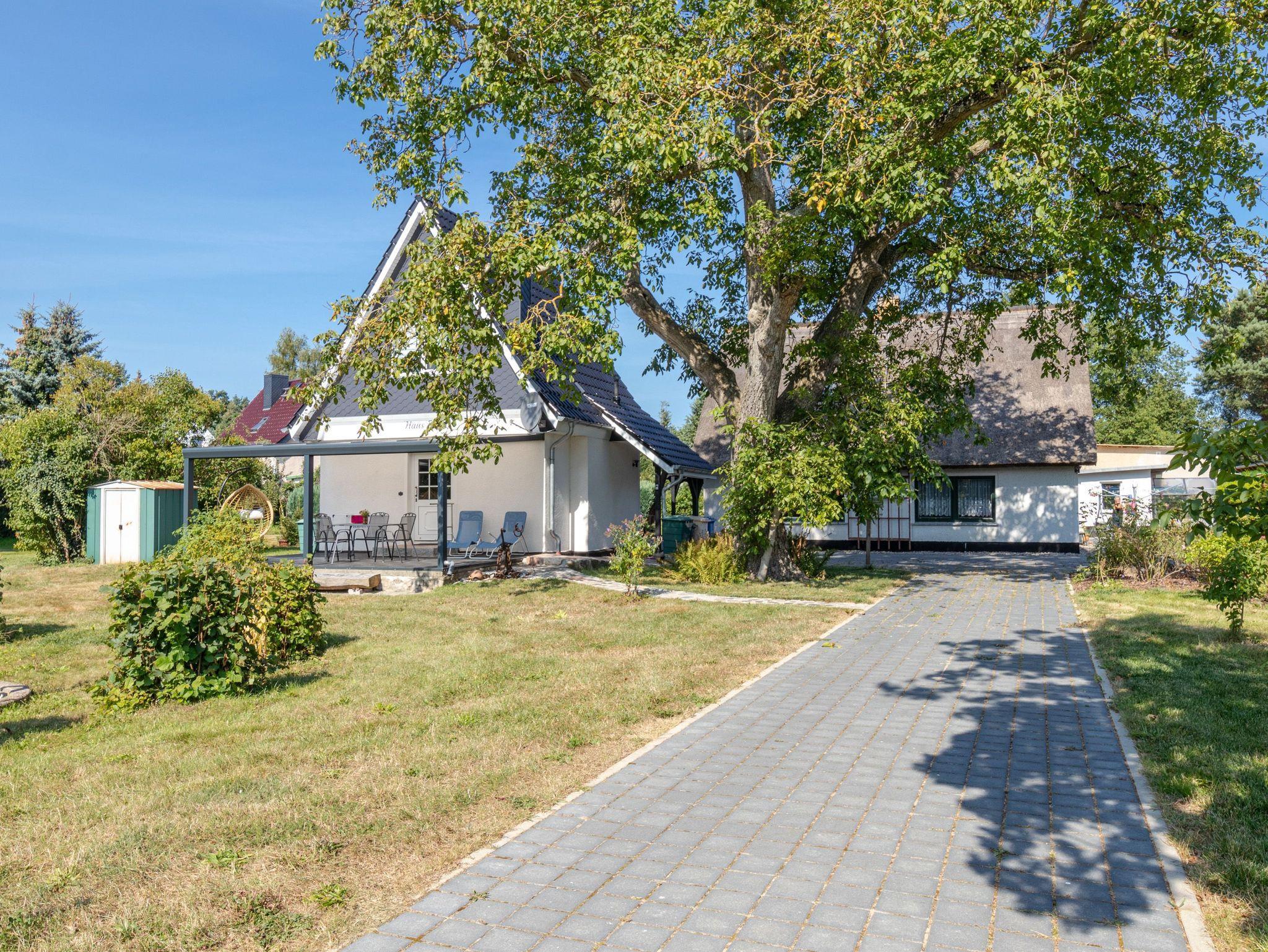 Auf der angrenzenden großen Terrasse gibt es Sitzmöglichkeiten und einen Grill. Möglichkeiten zum Säubern und Räuchern von gefangenem Fisch sind ebenfalls vorhanden. Es gibt einen großen Garten und 2 Pkw-Stellplätze. Ein 28er Herren-und ein 28 Frauenfahrrad stehen zur kostenlosen Nutzung bereit.