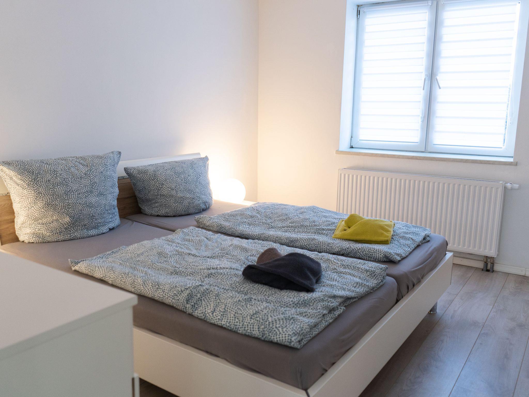 Im modernen Schlafzimmer erwartet Sie ein komfortables Doppelbett (200x200, getrennte Matratzen) und ein geräumiger Kleiderschrank. Das helle Wohnzimmer mit SAT-TV lädt zum Entspannen ein. Auf der gemütlichen Couch lässt sich nicht nur ein Filmabend genießen ? sie kann auch als Schlafcouch (160x200) für zwei weitere Gäste genutzt werden.