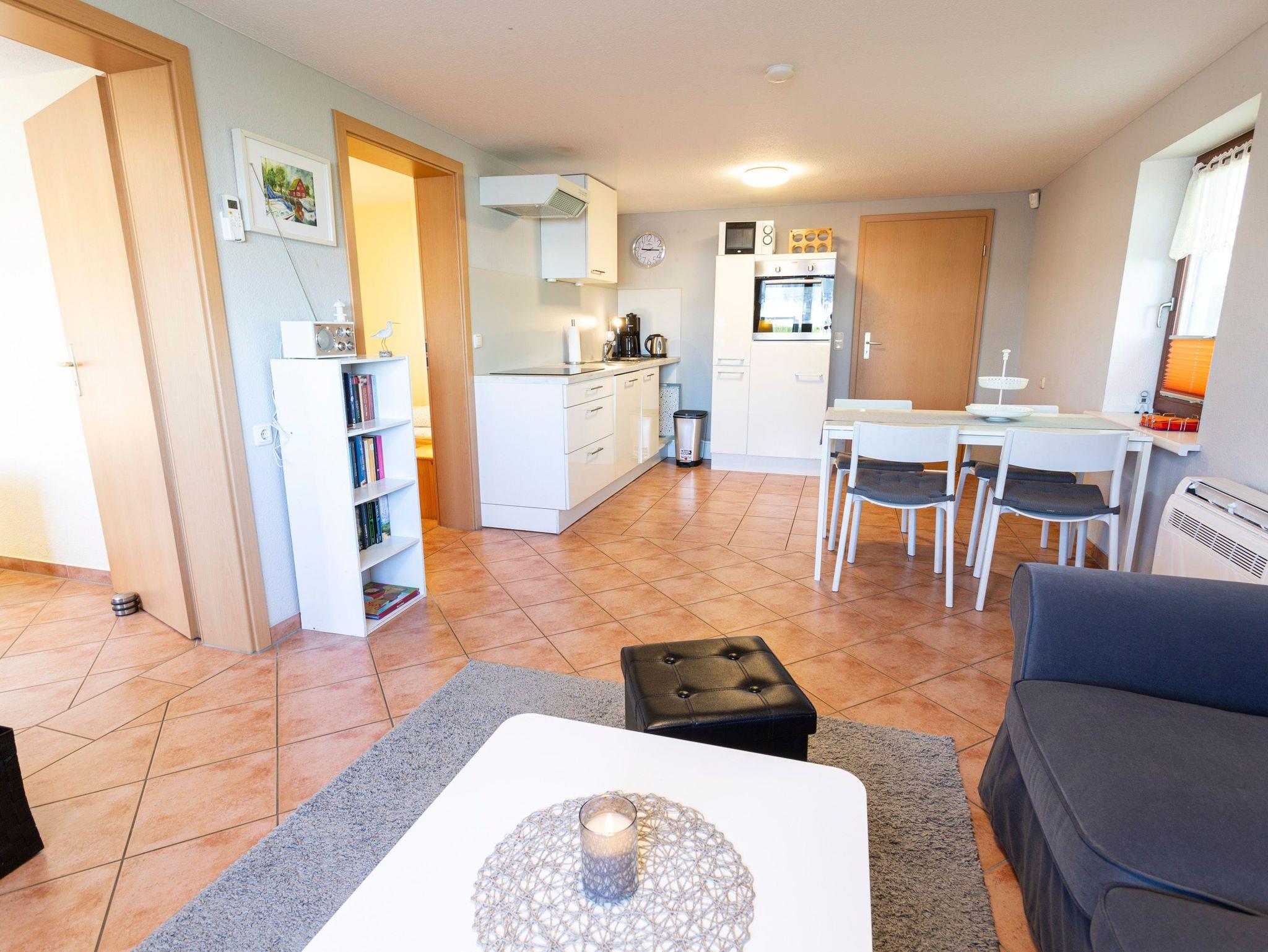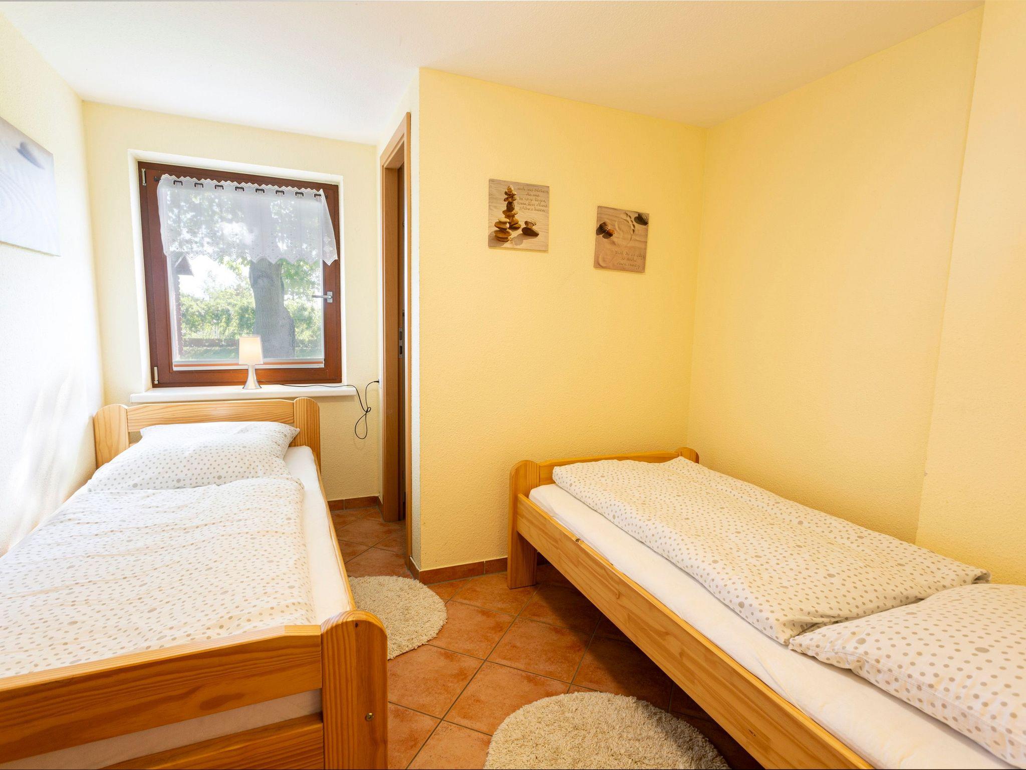 Die gemütliche Erdgeschosswohnung im Bootshaus Freest ist ideal für bis zu 4 Personen und ein Kleinkind bis 2 Jahre. Hunde sind bei uns herzlich willkommen, sodass die ganze Familie den Urlaub genießen kann! Diese Ferienwohnung verfügt über zwei komfortable Schlafzimmer, eines mit einem gemütlichen Doppelbett (180x200) und das andere mit zwei Einzelbetten (90x200). Das Wohnzimmer lädt mit einem bequemen Sofa und einem TV zum Entspannen ein. Die offene Küche ist voll ausgestattet und bietet alles, was du für die Zubereitung köstlicher Mahlzeiten benötigst. Hier stehen dir ein Herd, Backofen, Mikrowelle, Geschirrspüler und Utensilien des täglichen Bedarfs zur Verfügung. Das Bad ist mit einer Dusche ausgestattet und sorgt für erfrischende Momente nach einem erlebnisreichen Tag. An sonnigen Tagen kannst du die Terrasse mit eigenem Grill nutzen und den Tag bei einem gemütlichen Grillabend ausklingen lassen. Genieße die ruhige und naturnahe Umgebung und entdecke die zahlreichen Freizeitmöglichkeiten, die die Region zu bieten hat.