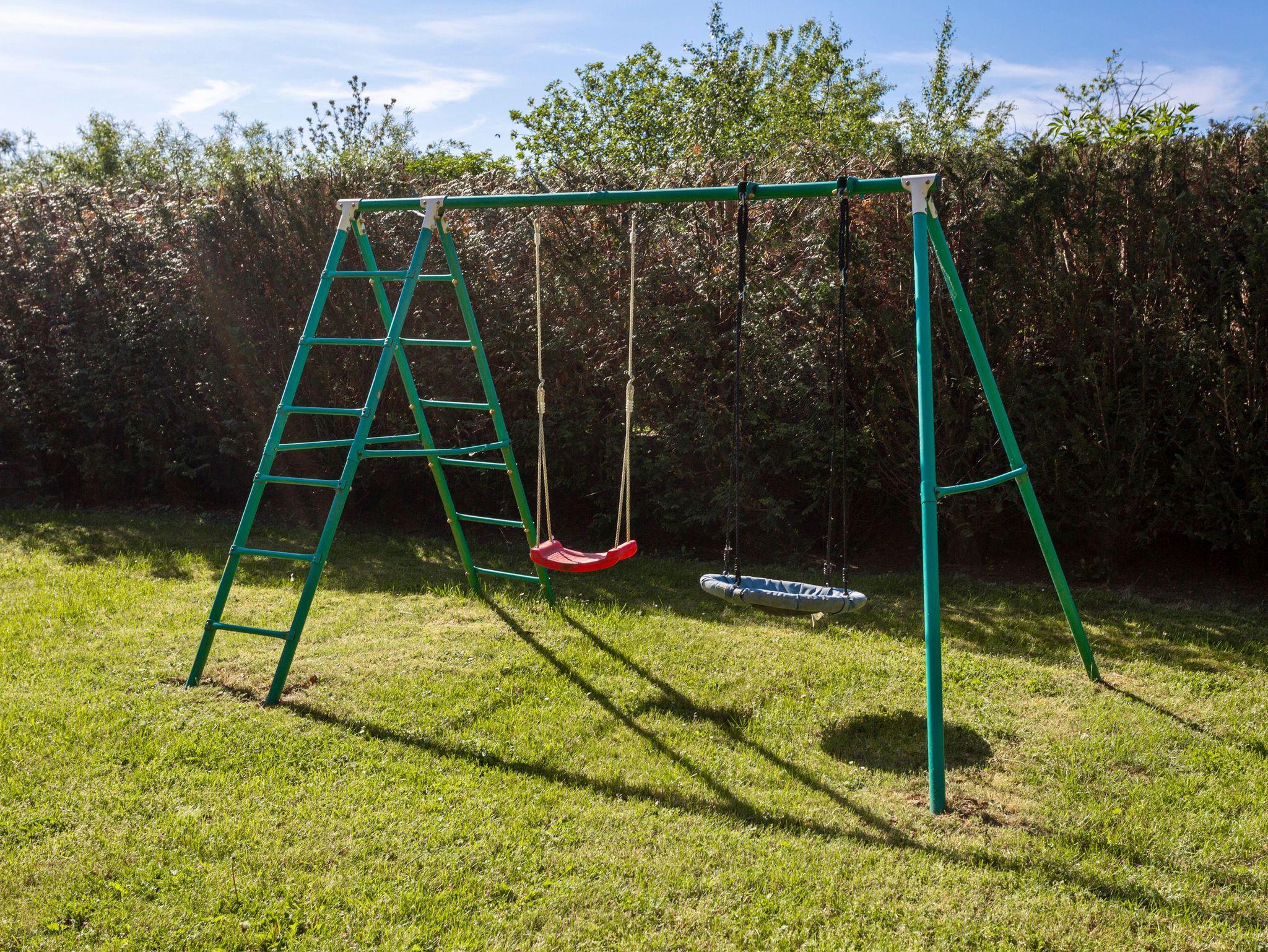 Jede Wohnung hat ihre eigene Terrasse mit Grill, ideal für gemütliche Abende im Freien. Der großzügige Garten lädt zum Entspannen ein hier findest du Liegeflächen, Sonnenliegen und sogar eine Schaukel für die kleinen Gäste.
