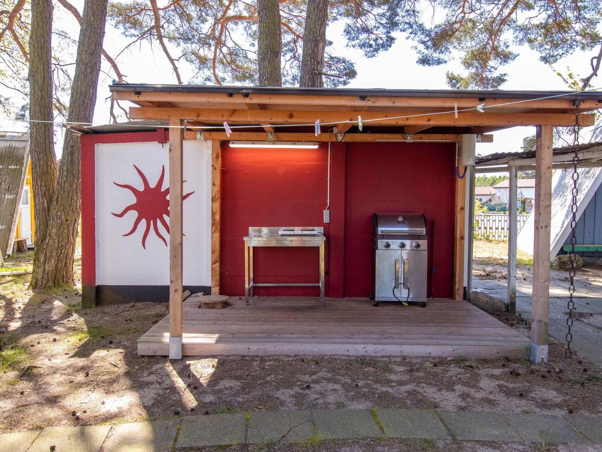 Gemütliche Finnhütte für 2 Personen auf dem Ostseecamping Peenemündung mit Gemeinschaftsküche und Grillmöglichkeit.