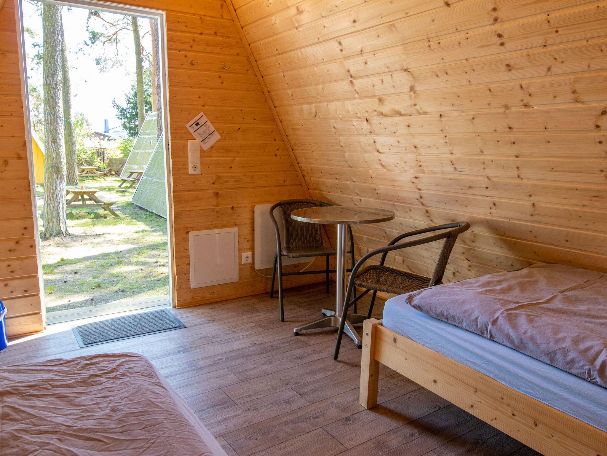 Die 2er Finnhütten befinden sich am Rand des Ostseecamping Peenemündung im Fischerdorf Freest und ermöglichen ein wetterfestes Campen für 2 Personen. In den 9 m² großen Finnhütten befinden sich zwei Einzelbetten (90x200), die zusammengestellt werden können und ein Bistrotisch mit 2 Stühlen. Die drei Sanitärbereiche (WC, Waschraum, Dusche) werden gemeinschaftliche genutzt und liegen verteilt auf dem Campingplatz. Vor Ort stehen eine Gemeinschaftsküche, ein Outdoorgrill, Picknickbänke und ein Kulturraum, der bei schlechtem Wetter gut genutzt werden kann, zur Verfügung.