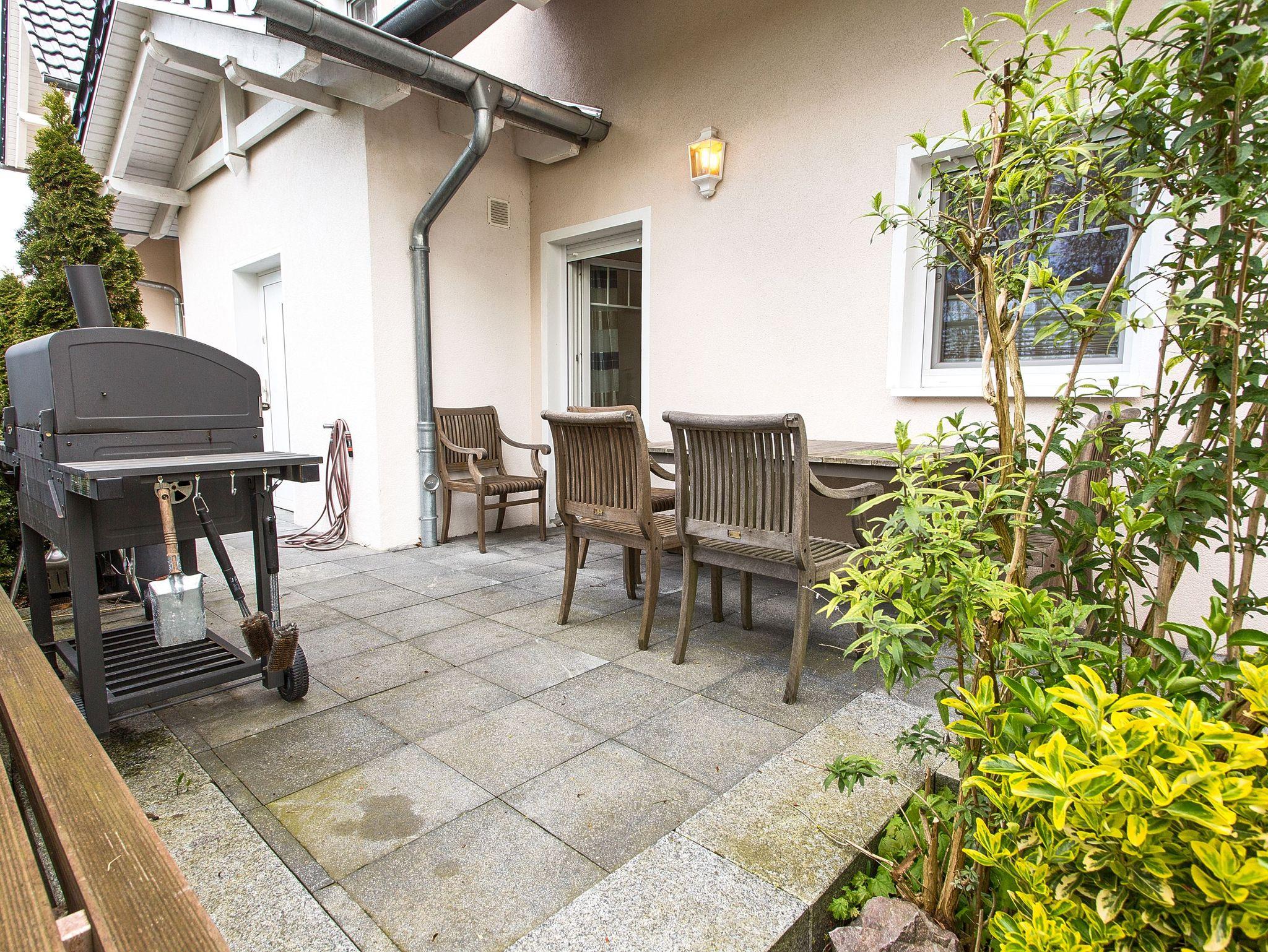 Moderne Ferienwohnung mit Sauna, Kamin und Terrasse im idyllischen Fischerdorf Freest nahe Strand.