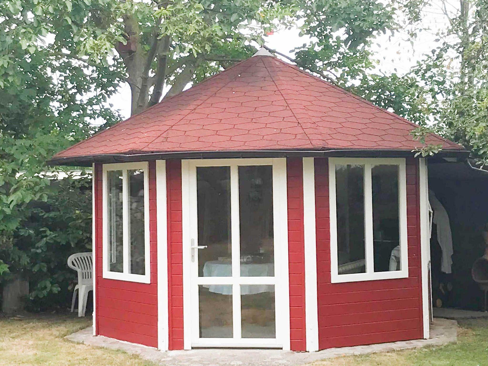 An die Finnhütte ist eine Terrasse mit Gartenmöbeln, Liegestühlen und einen Grill angeschlossen. Den PKW können Sie gerne auf dem komplett umzäunten Grundstück parken.