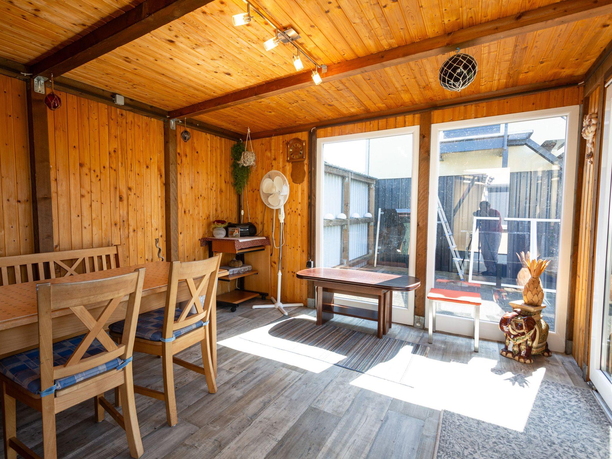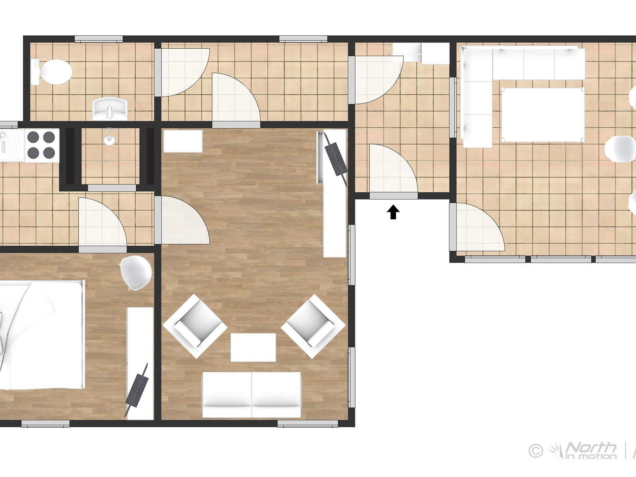 Der Bungalow besteht aus einem gemütlichen Wohnzimmer mit einer Couch und einem Flachbild-TV, einem separatem Schlafzimmer, einer Küche, einem Badezimmer mit WC und einer separaten Dusche. Aufbettungen für Kinder bis max. 12 Jahre sind auf der Couch im Wohnzimmer möglich. Vor dem Bungalow befindet sich ein kleiner Wintergarten und eine Terrasse mit Sitzgelegenheiten und Grill, die beide zum Verweilen einladen. Da der Bungalow über keine Heizung verfügt, kann er nur in den Sommermonaten gebucht werden. Ein Parkplatz und WLAN ist vorhanden.