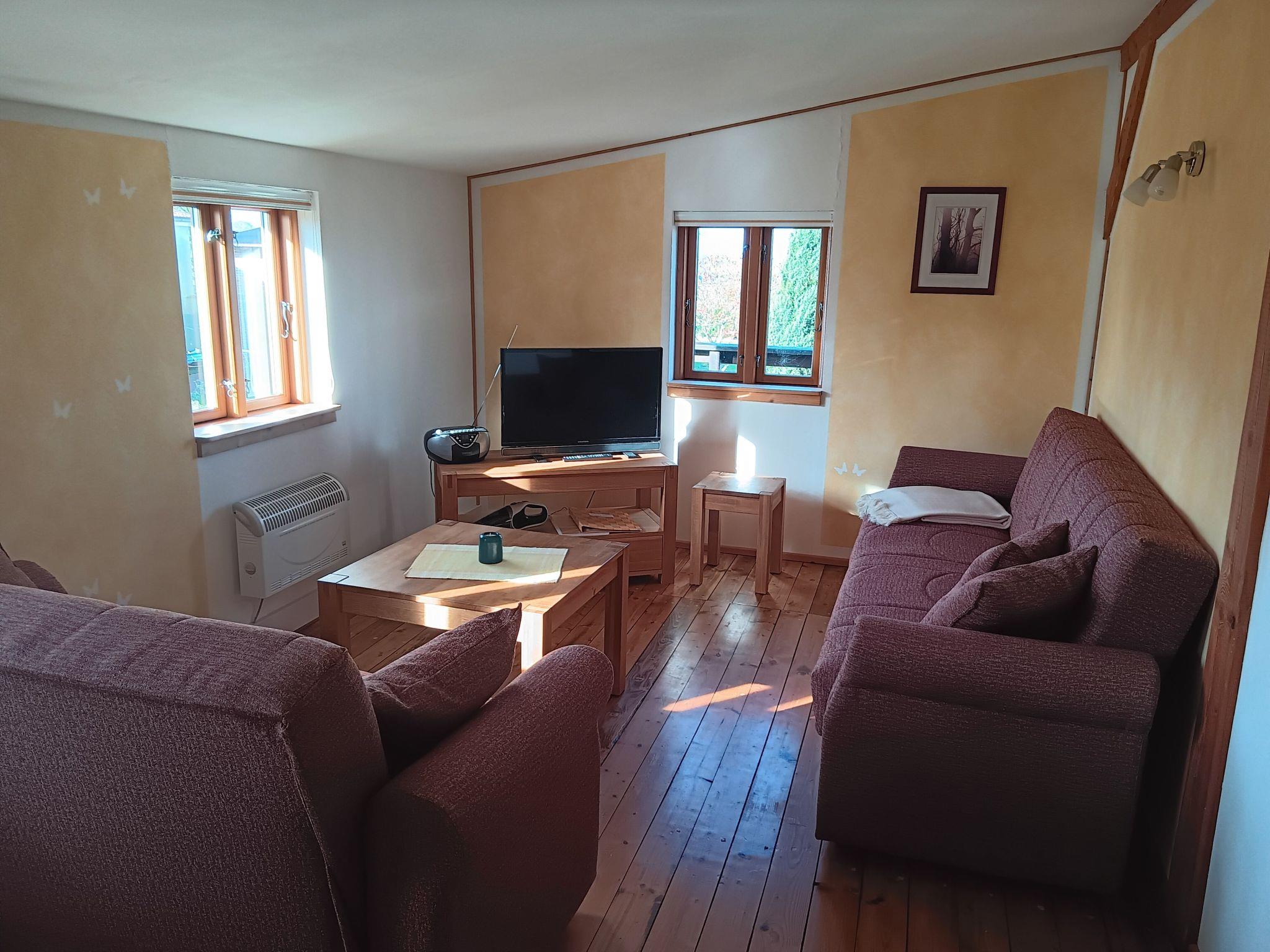 Gemütliches Appartement in alter Bootsscheune nahe Meer und Wald, ideal für Familien und Paare, mit Balkon und Gartenblick.