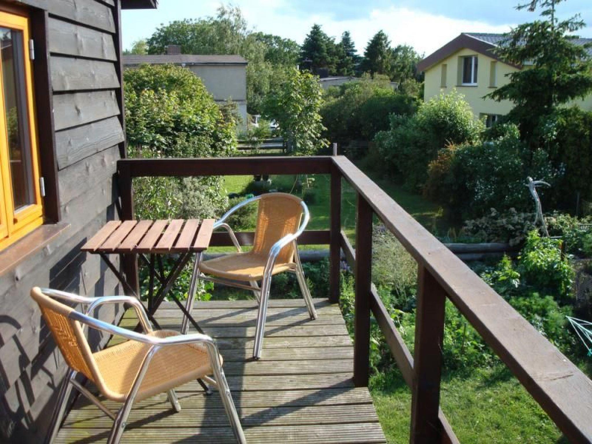 • einen Balkon mit Blick in den Garten und teilweise auf den Greifswalder Bodden