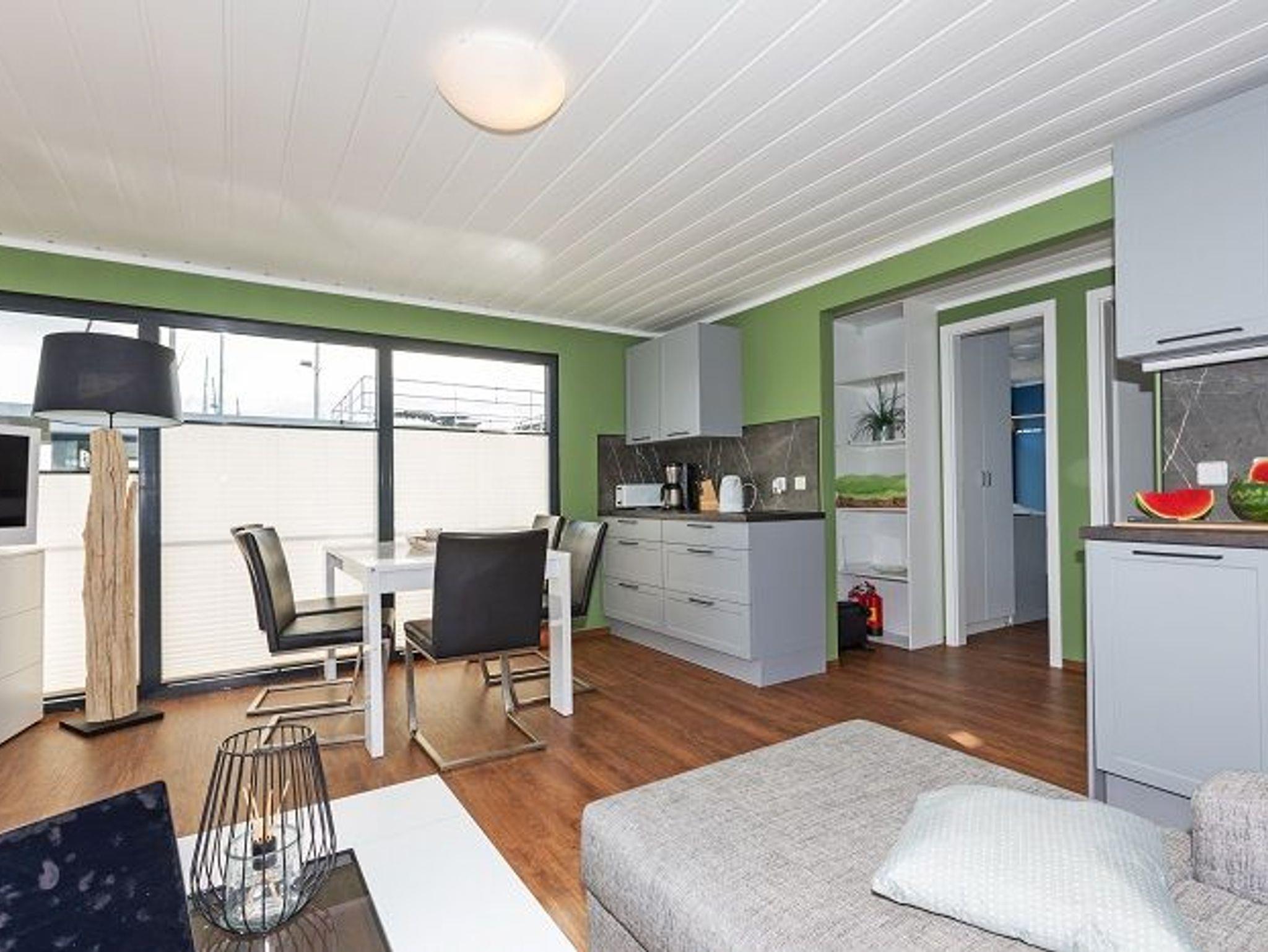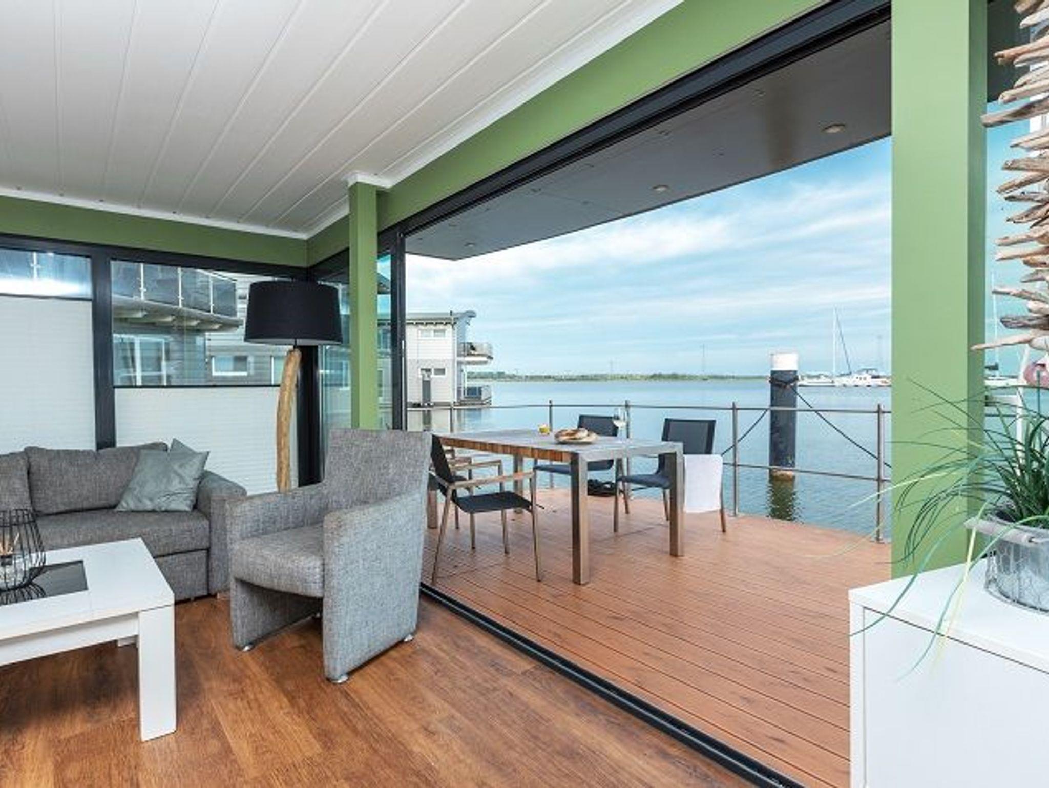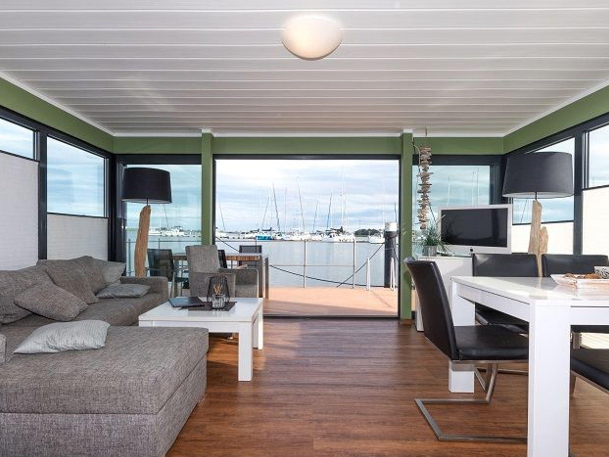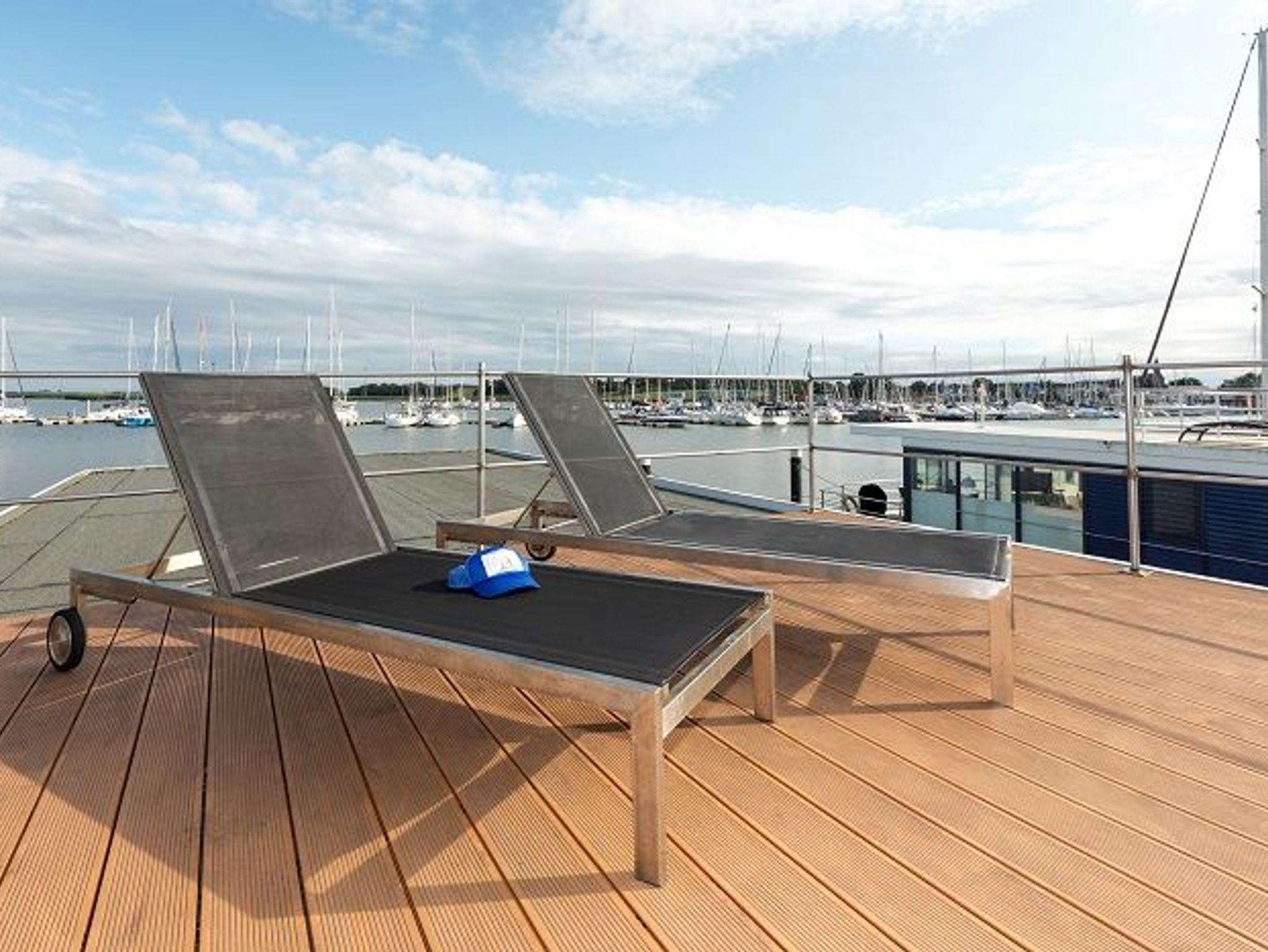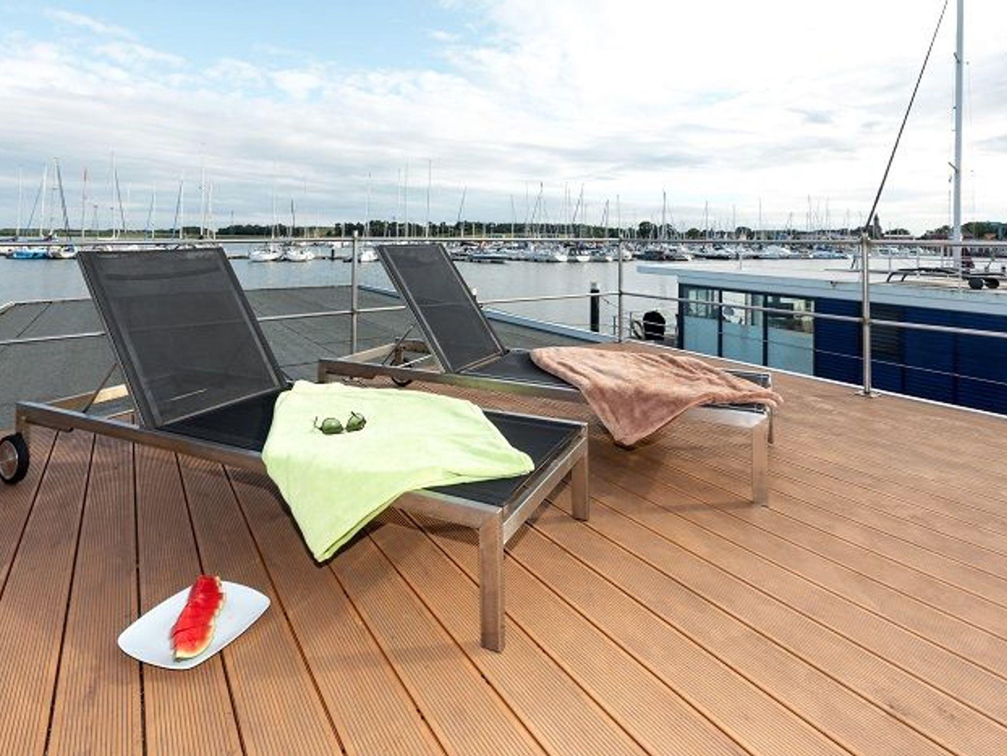 Charmantes Hausboot Zudar in der Marina Kröslin mit Seeblick und großzügiger Terrasse für unvergessliche Urlaubsmomente.