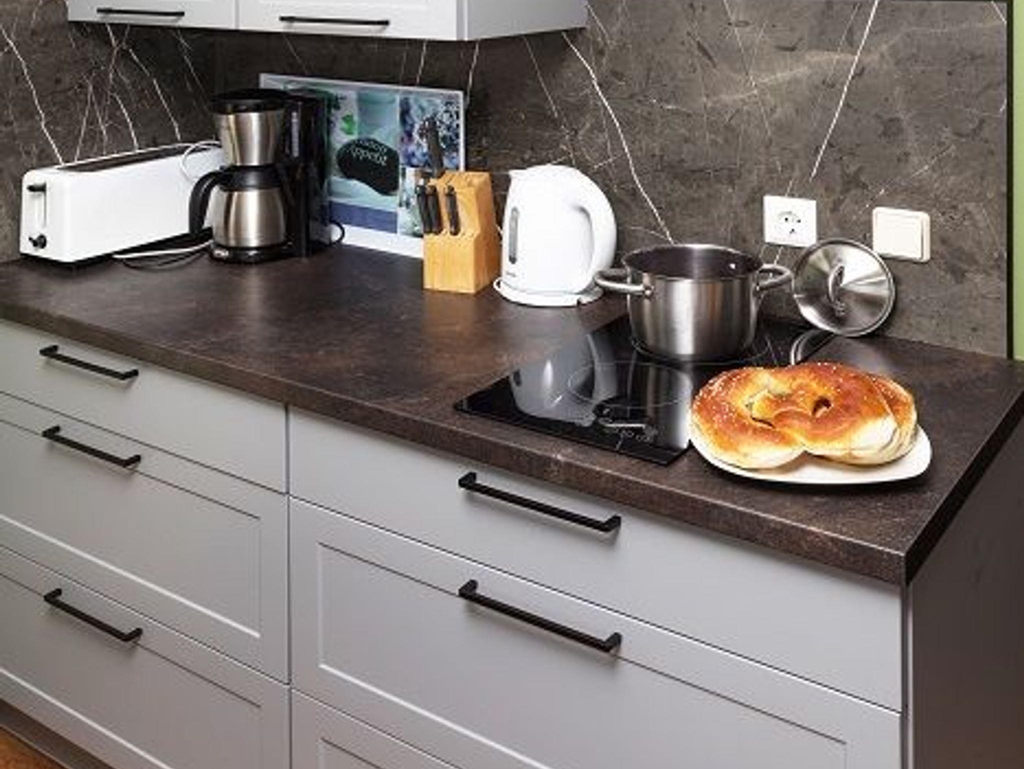 - 1 Wohnraum mit Schlafcouch und offener Küche