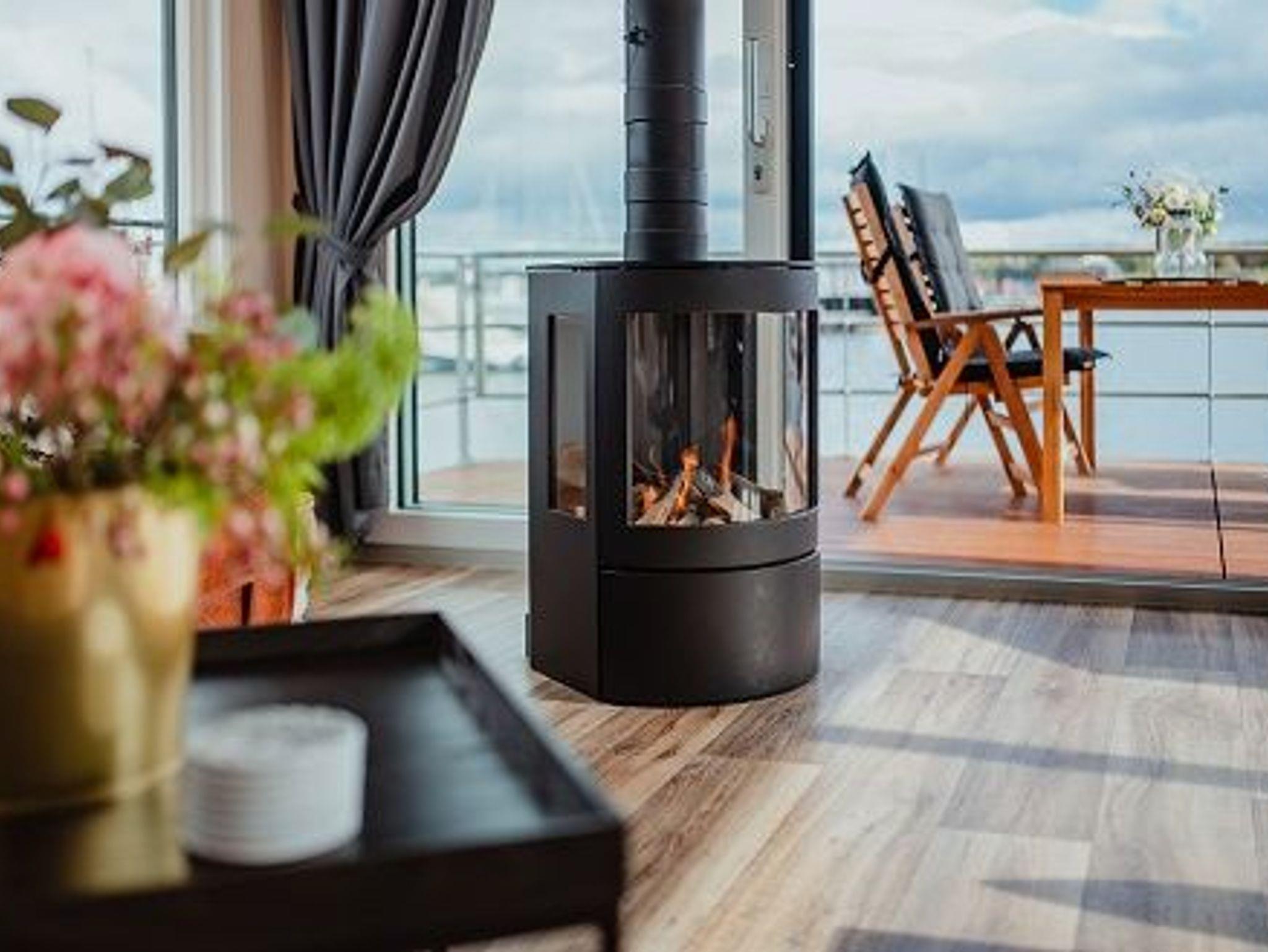 Das Seemobil bietet alles, was einen Aufenthalt in diesem Haus angenehm und so einmalig macht: einen Kamin, viel Glas und die optimale Aufteilung der beiden Schlafzimmer und der Wohnebene mit großzügiger Terrasse (Bug und Oberdeck).