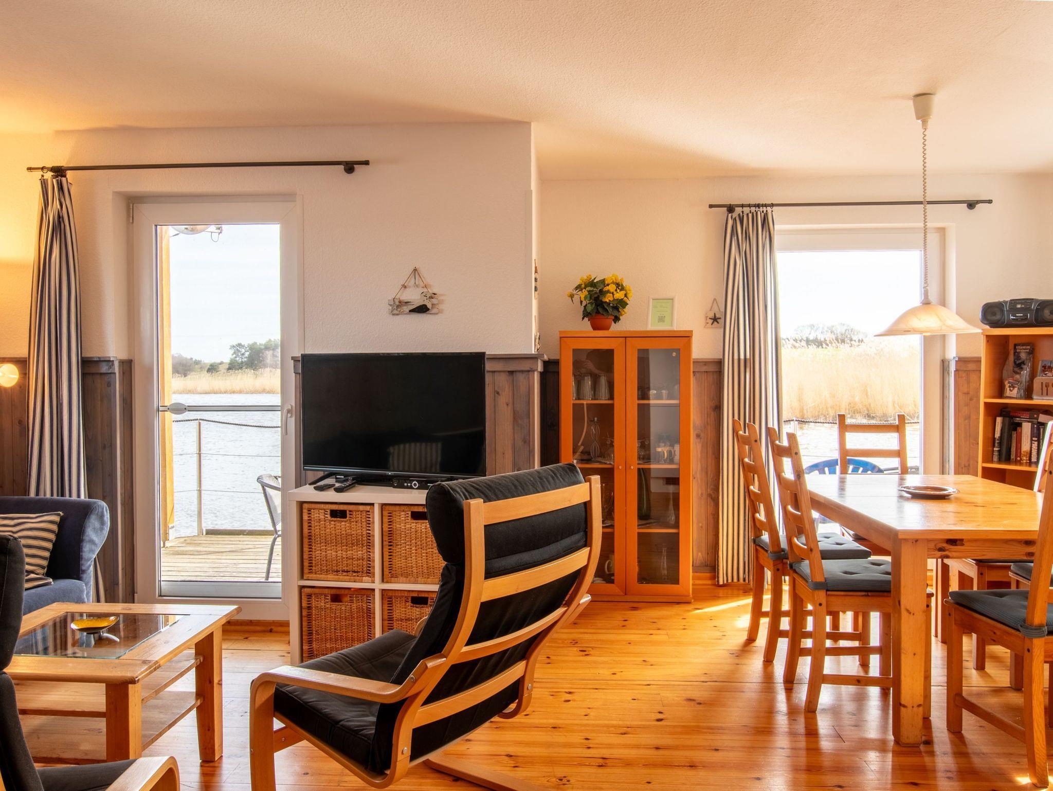 Erleben Sie maritimen Komfort und Naturblick in Floating House 1 im Hafen Kröslin, ideal für entspannte Tage mit Haustier.