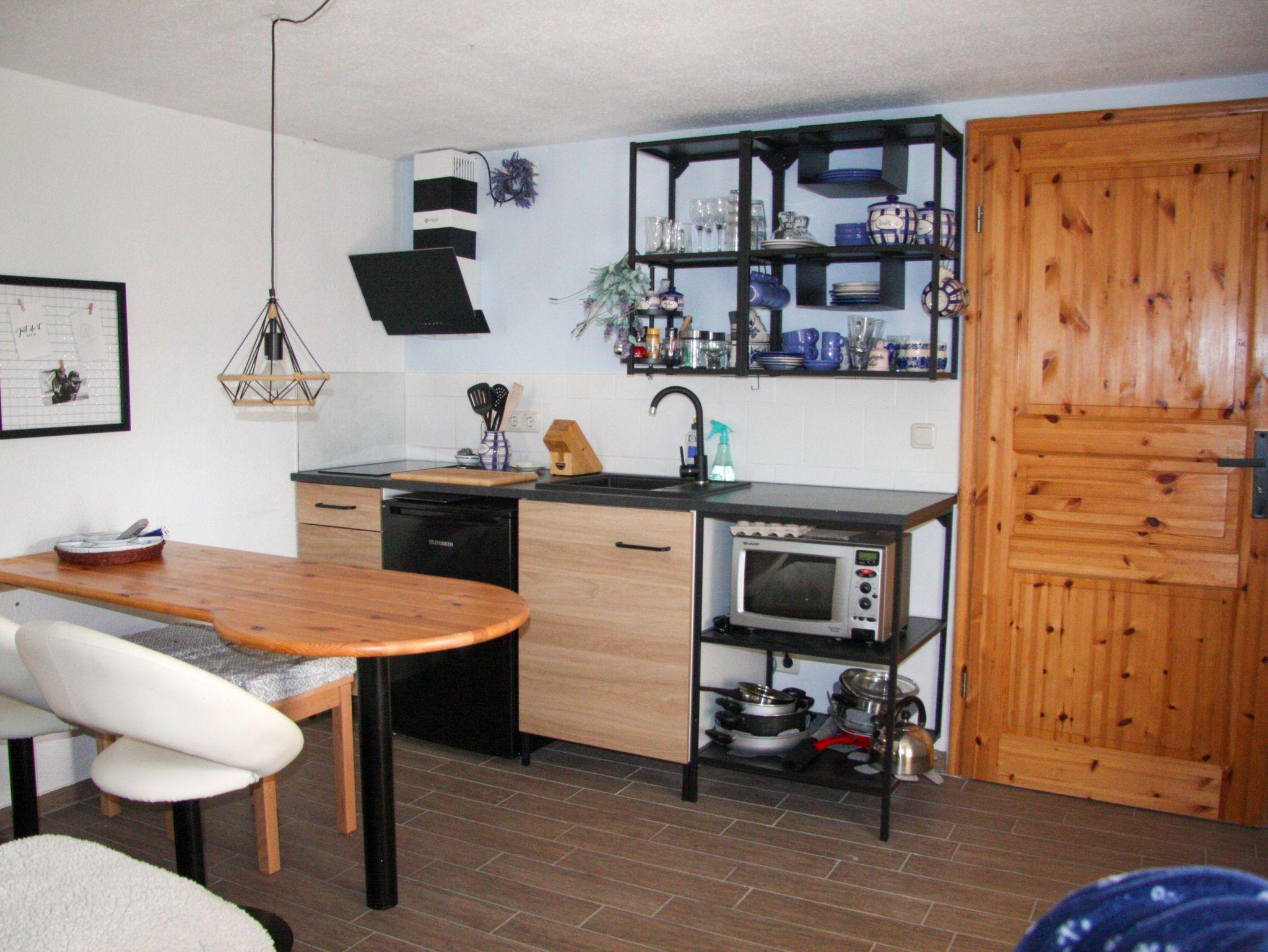 Die charmante Ferienwohnung kleine Koje befindet sich im hinteren Gartenbereich des Vermieters und bietet auf 35 m² Platz für bis zu 3 Personen. Hier findest du alles, was du für einen entspannten Aufenthalt benötigst. Das kombinierte Wohn- und Schlafzimmer ist mit einem komfortablen Doppelbett und einer praktischen Schlafcouch ausgestattet. Ein TV sorgt für Unterhaltung, wenn du abends entspannen möchtest. Die gut ausgestattete Küchenzeile verfügt über ein Induktionskochfeld, einen Kühlschrank und Kochutensilien für den täglichen Bedarf. So kannst du dir jederzeit ein leckeres Essen zubereiten. Das Badezimmer bietet eine Dusche und ein WC, damit du dich nach einem langen Tag erfrischen kannst. Ein Highlight der kleinen Koje ist die Terrasse, die mit einer Sonnenliege und einem Grill ausgestattet ist. Hier kannst du die frische Luft genießen und gemütliche Grillabende verbringen.