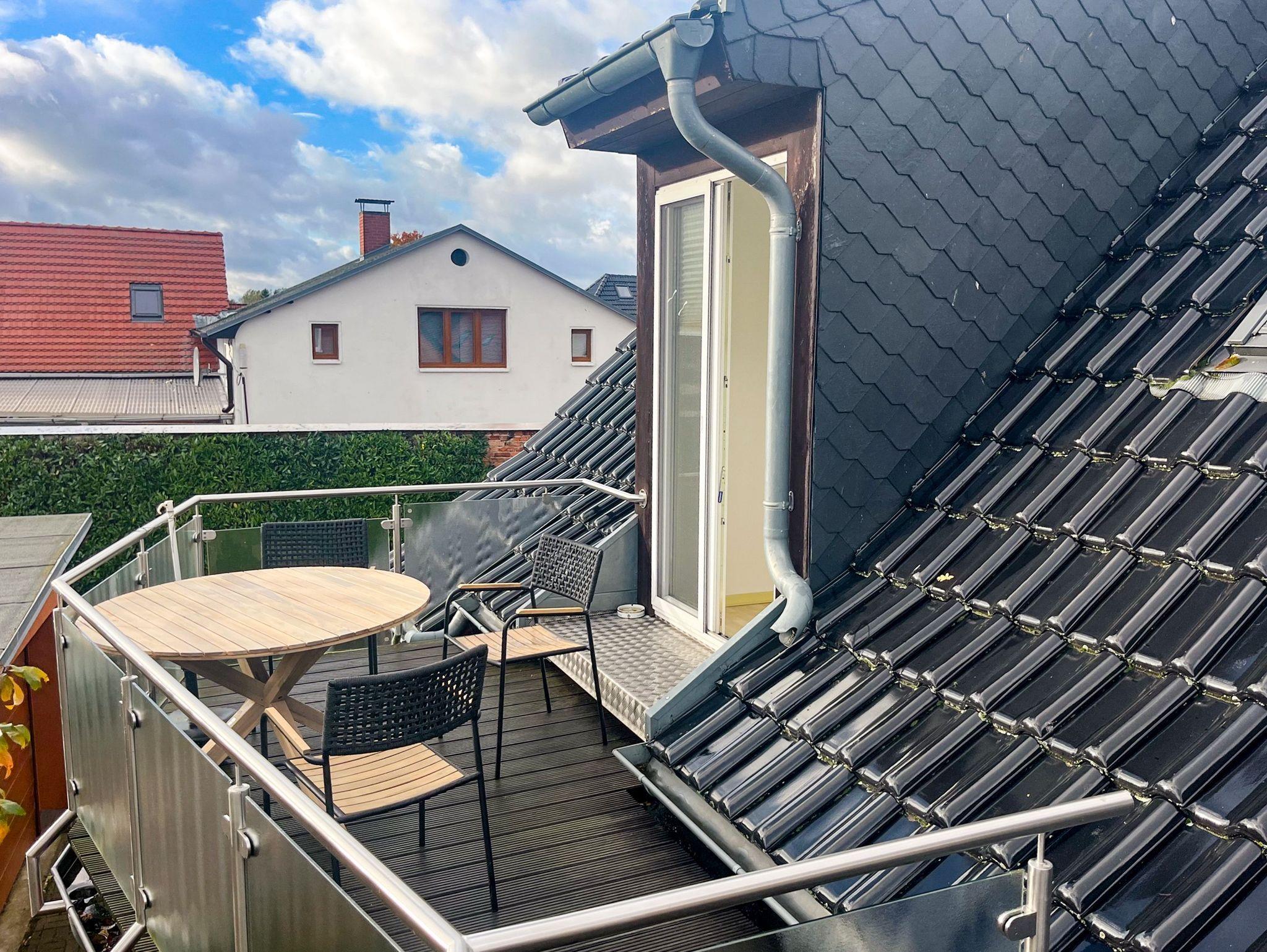 Besonders angenehm: Der großzügige Balkon mit Sitzgelegenheit, auf dem du die ruhige Lage genießen oder einfach den Tag in aller Ruhe ausklingen lassen kannst.