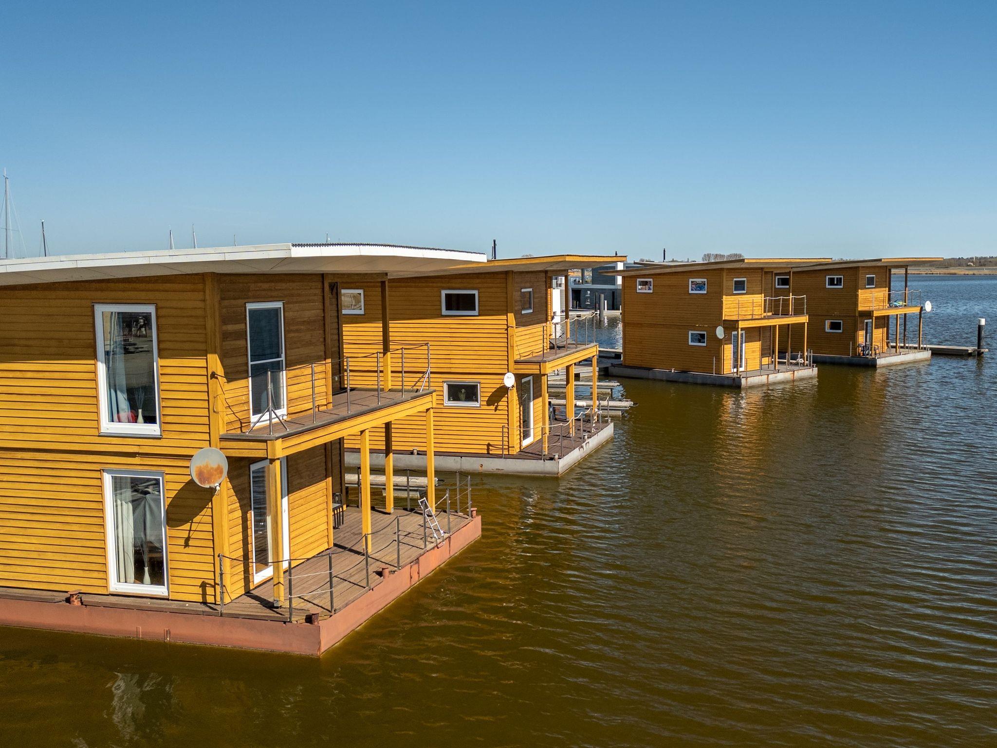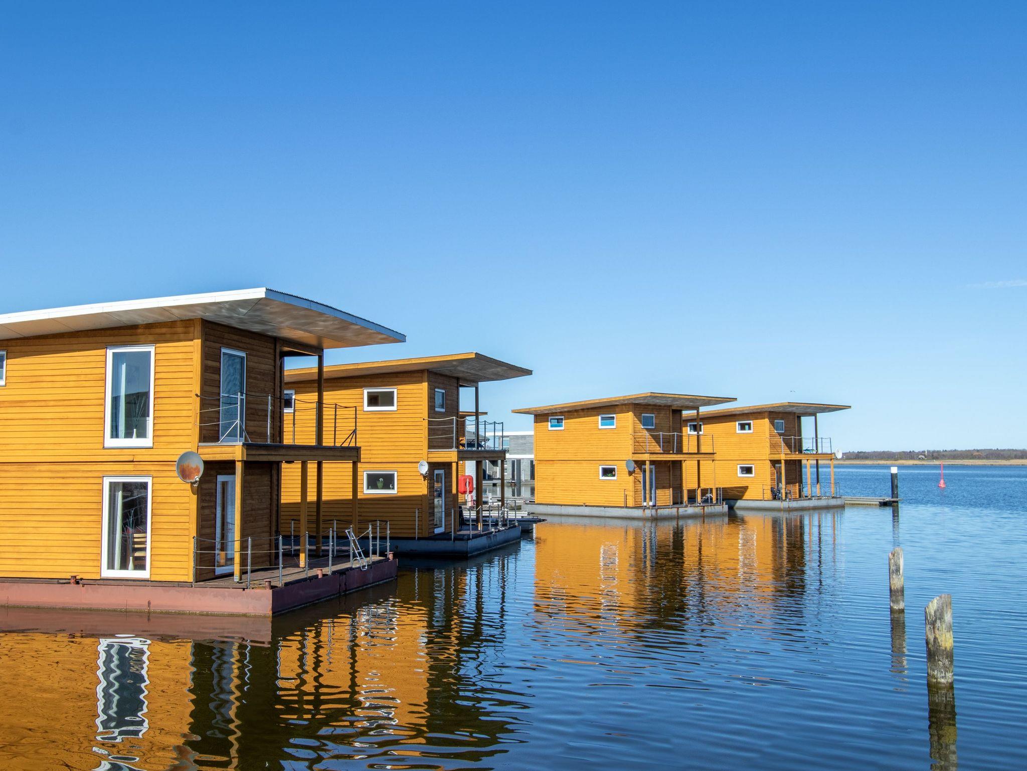 Floating Houses Kröslin ? das ist Urlaub mitten im Hafenleben, mit direktem Blick aufs Wasser, auf Segelboote und in die Natur. In der geschützten Lage am Rande der Marina erwarten dich fünf großzügige Hausboote mit 75m² Wohnfläche auf zwei Etagen ? eine perfekte Kombination aus maritimem Flair und modernem Ferienkomfort. Je nach Haus finden hier 4 bis 6 Personen Platz, verteilt auf 2 bis 3 Schlafzimmer ? ideal für Paare, Familien oder Freundesgruppen. In allen Häusern außer Haus 3 ist dein Hund herzlich willkommen. Die schwimmenden Ferienhäuser liegen fest verankert im Yachthafen von Kröslin ? mit Blick auf das Wasser, das angrenzende Naturschutzgebiet und von der oberen Etage sogar bis zu den Inseln Usedom und Rügen. Ob du vom Balkon aus das Hafentreiben beobachtest, auf der Terrasse die Sonne genießt oder einfach in der gemütlichen Sofaecke die Seele baumeln lässt ? hier spürst du in jeder Ecke: Du bist angekommen. Die Floating Houses verbinden das Gefühl von Freiheit auf dem Wasser mit dem Komfort eines echten Ferienhauses. WLAN ist im Hafen verfügbar, ein kostenfreier Parkplatz gehört ebenso zur Ausstattung wie ein gemütlicher Wohnbereich, eine moderne Küche, ein Bad und natürlich viel Licht und Luft durch große Fensterflächen. Und auch drumherum gibt?s viel zu entdecken: Die Marina Kröslin bietet dir saisonal zahlreiche Freizeitangebote ? von Fahrradverleih über Sauna bis hin zum Bootsverleih und Kinderspielplatz. Wenn du ein kleines Trailerboot mitbringen möchtest: Kein Problem ? Boote bis 4,50m Länge kannst du direkt am Hausboot anlegen. Ganz gleich, ob du aktiv sein möchtest oder einfach nur den Sonnenuntergang auf dem Balkon genießen willst ? in Kröslin findest du Urlaub auf dem Wasser, wie er sein sollte: entspannt, besonders und unvergesslich.