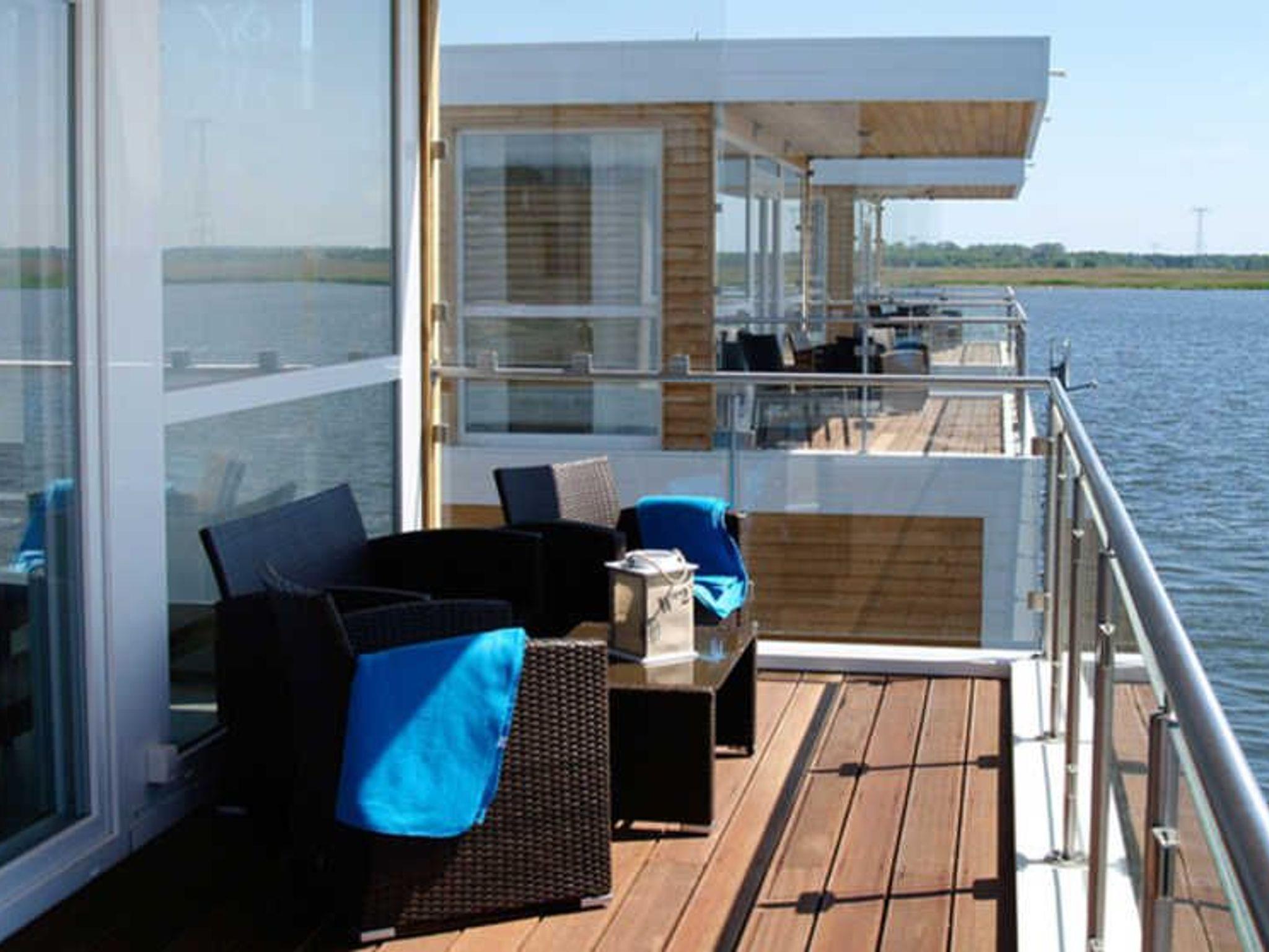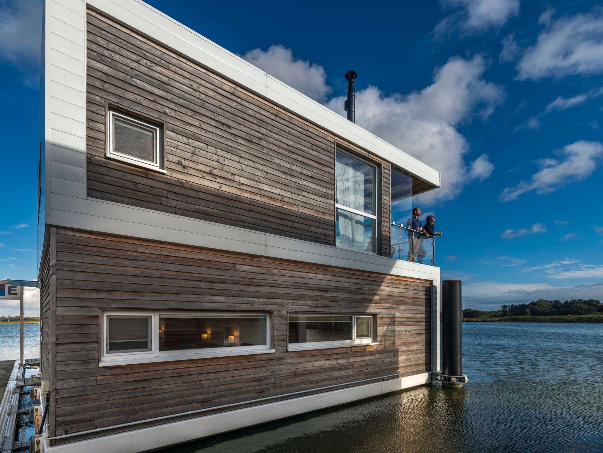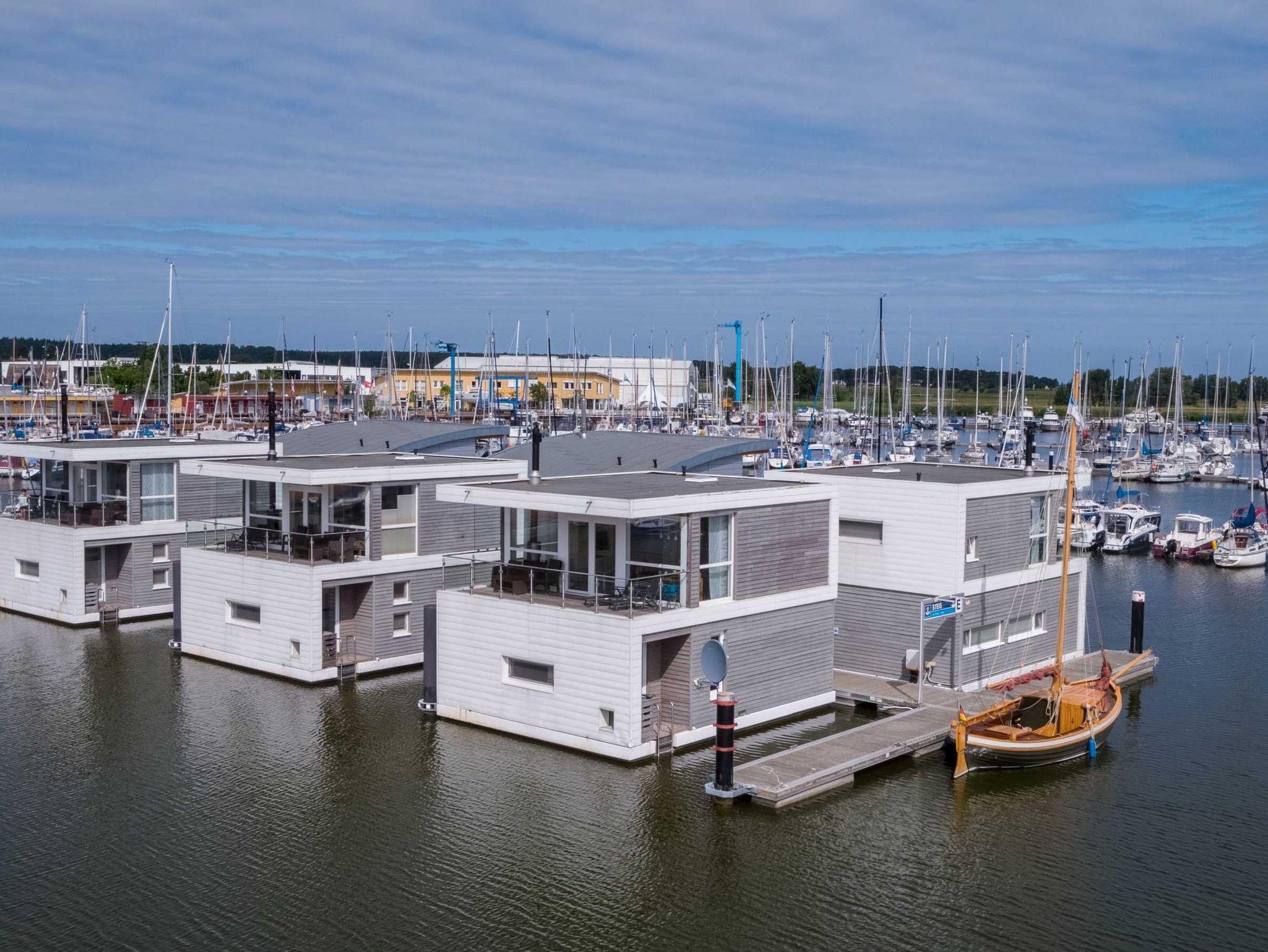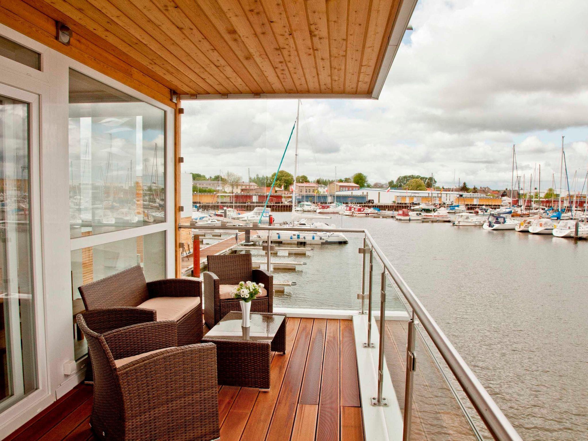 Genießen Sie luxuriösen Komfort in einem schwimmenden Ferienhaus mit Kamin und traumhaftem Meerblick an der Marina Kröslin.