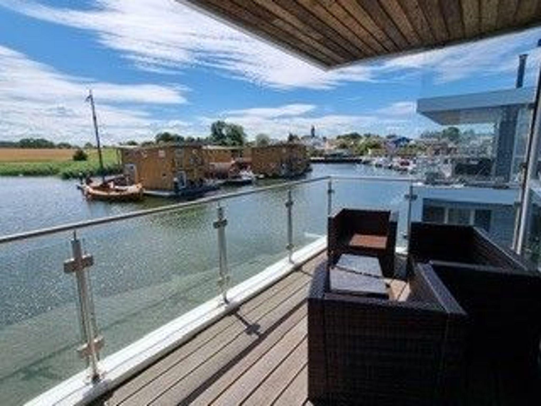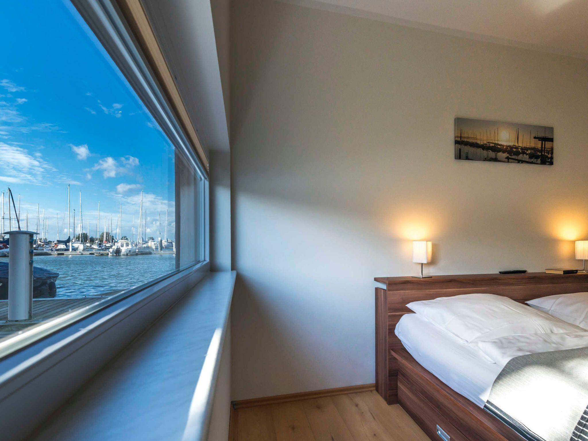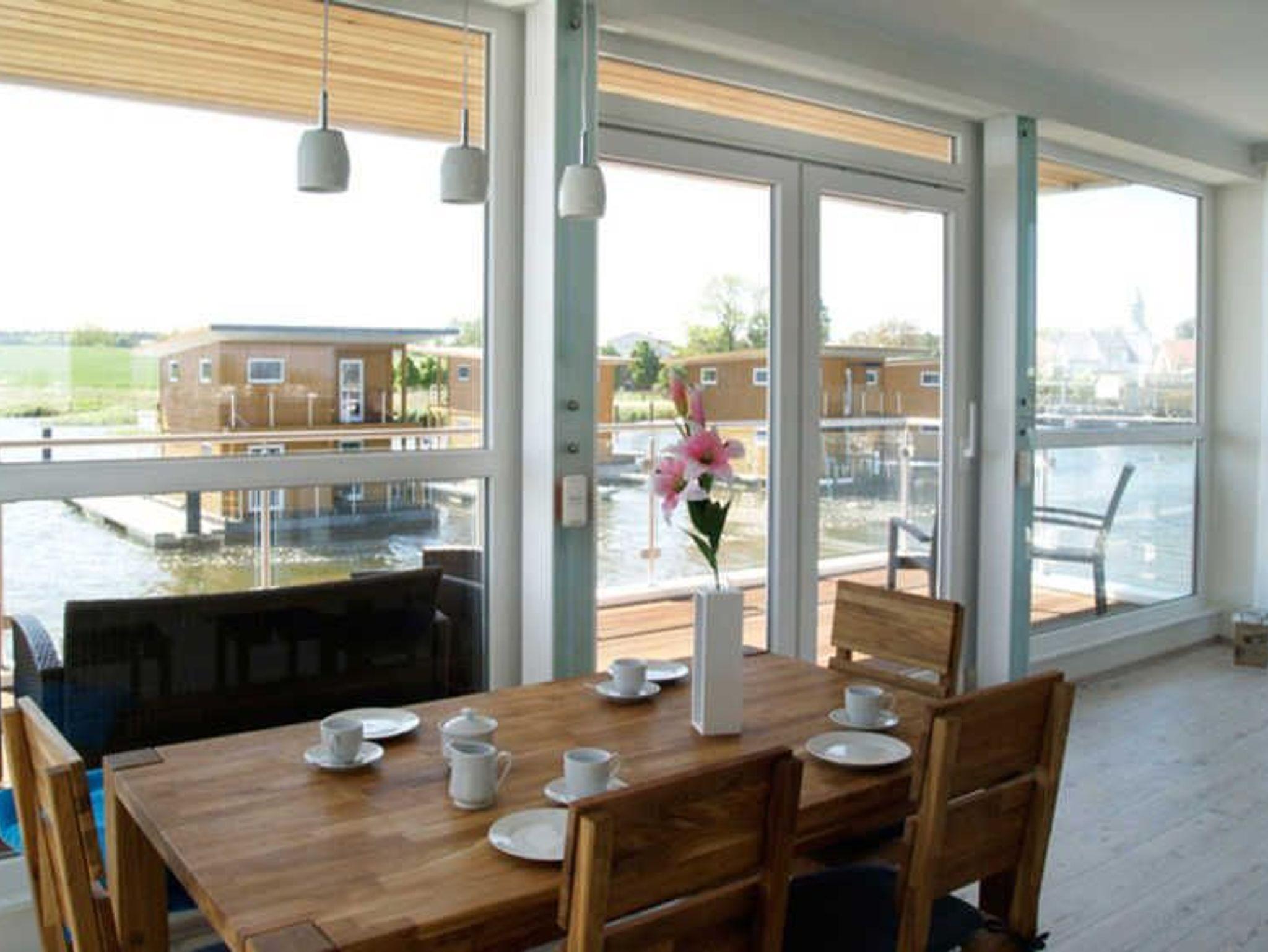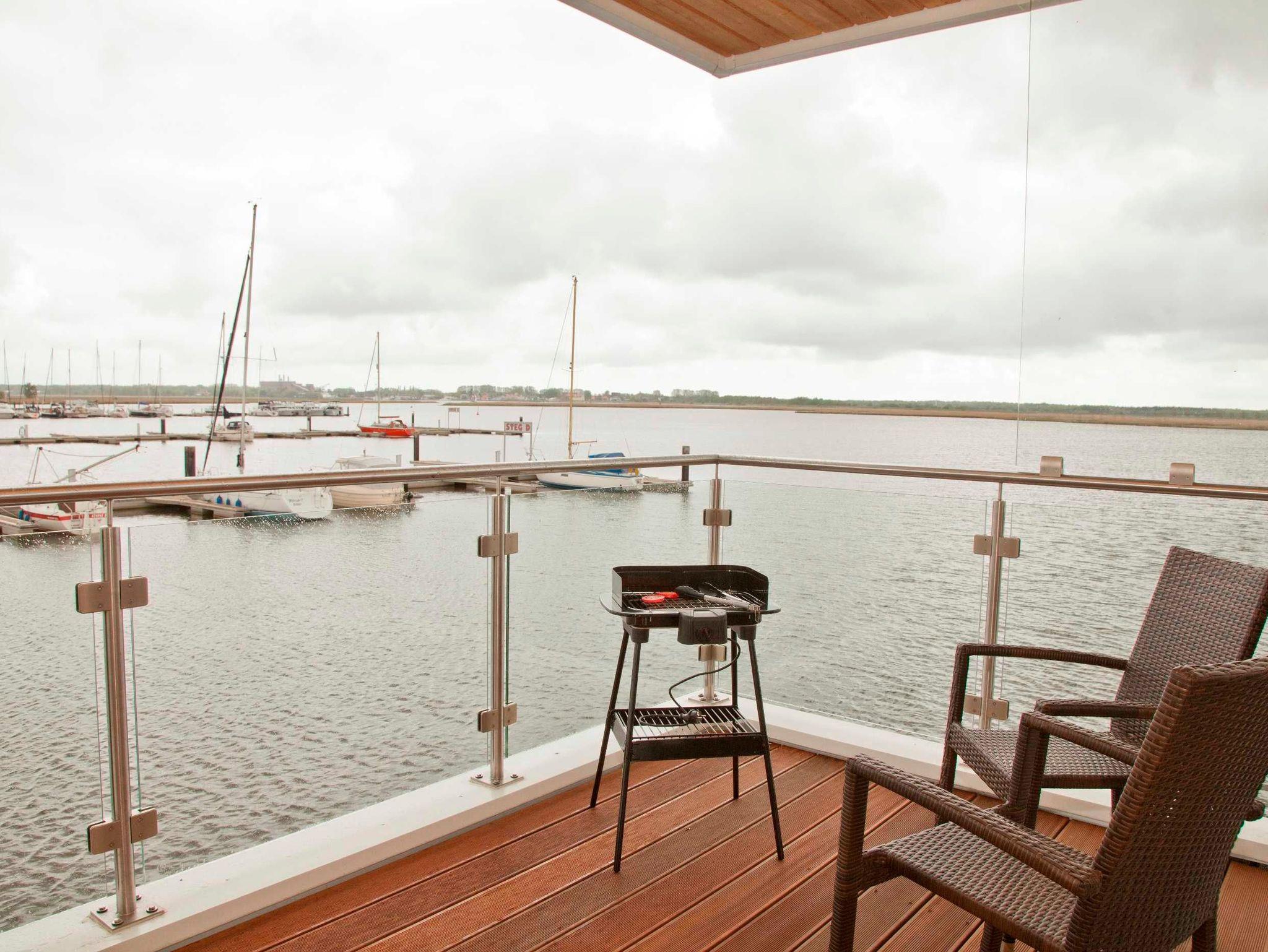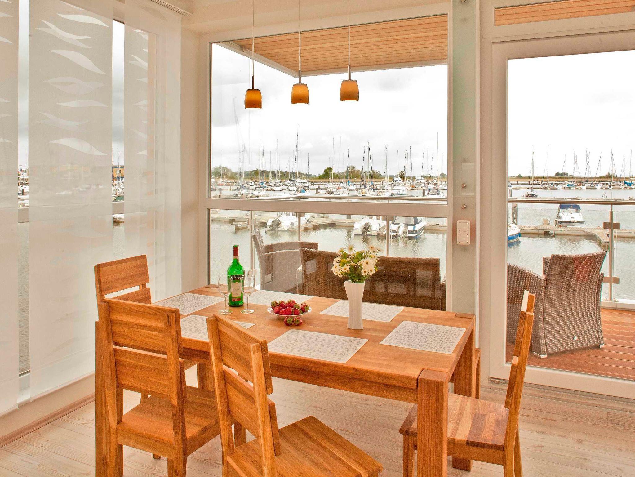 Genießen Sie luxuriösen Komfort in einem schwimmenden Ferienhaus mit Kamin und traumhaftem Meerblick an der Marina Kröslin.