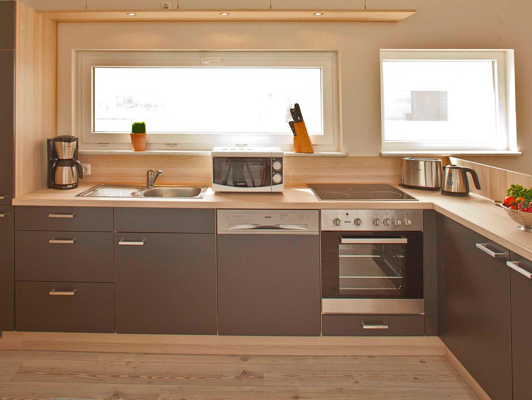 Die Küche verfügt über jeglichen Komfort: Backofen, Herd, Mikrowelle, Spülmaschine, Kühlschrank mit Gefrierfach, Kaffeemaschine, Wasserkocher und Toaster gehören zu unserer Standardausstattung. Im Wohnzimmer erwartet Sie ein fast 180 Grad Panoramafenster, ein Flachbildschirm mit DVD Recorder, eine Musikanlage und ein kostenloser W-LAN Zugang.
