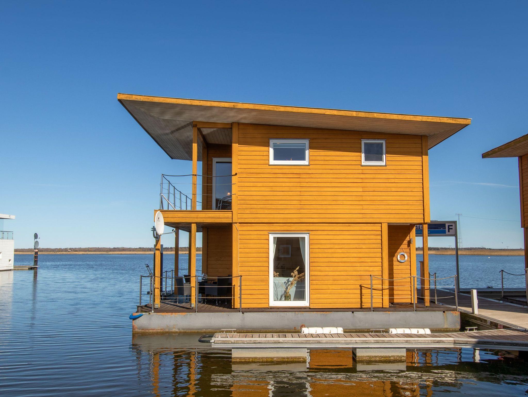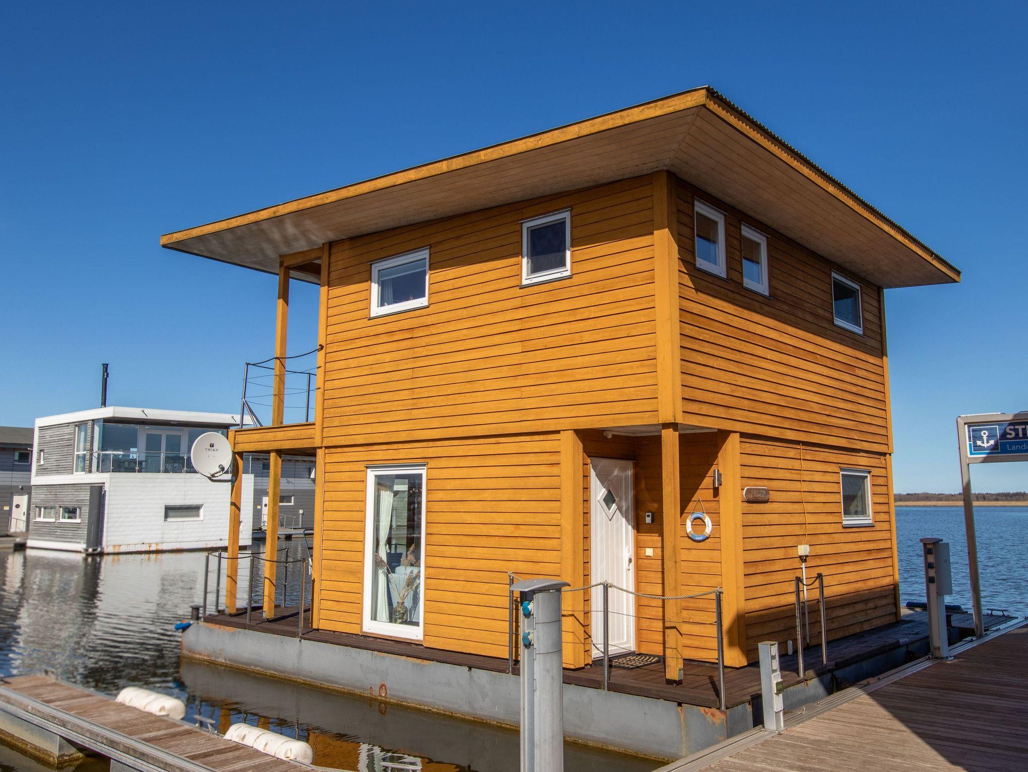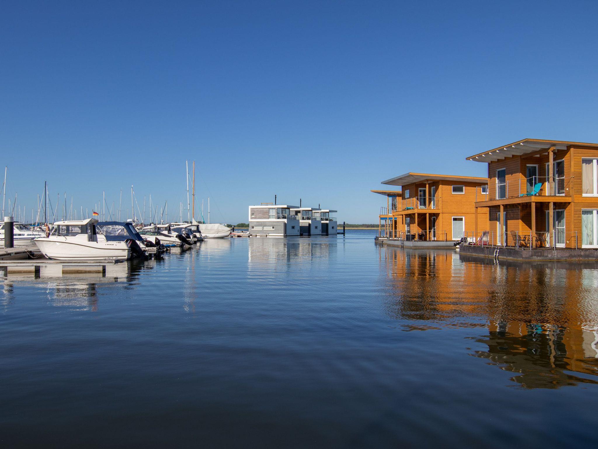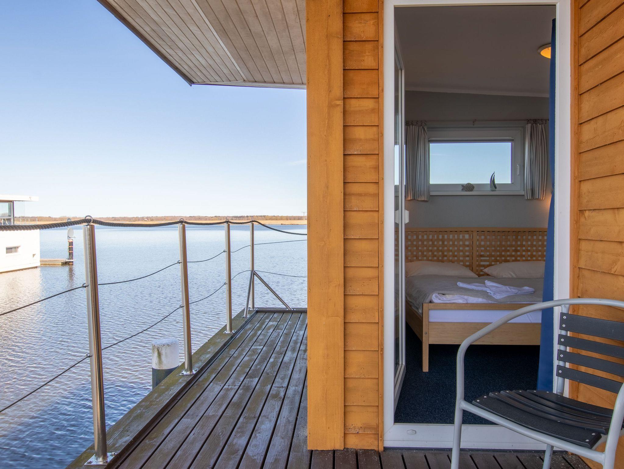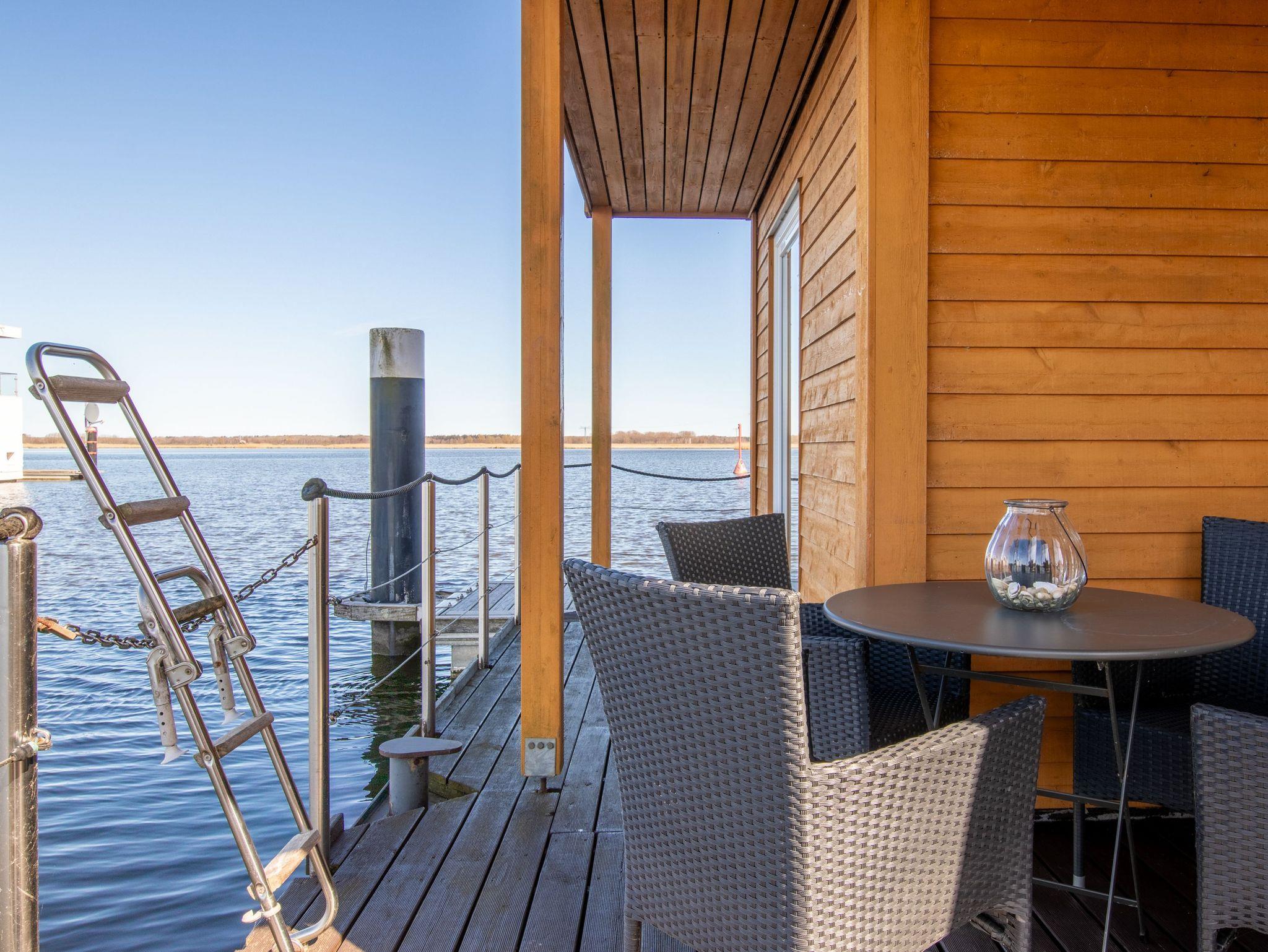 Genießen Sie maritimen Komfort in einem modernen Floating House mit Blick auf die Marina Kröslin und die umliegende Natur.