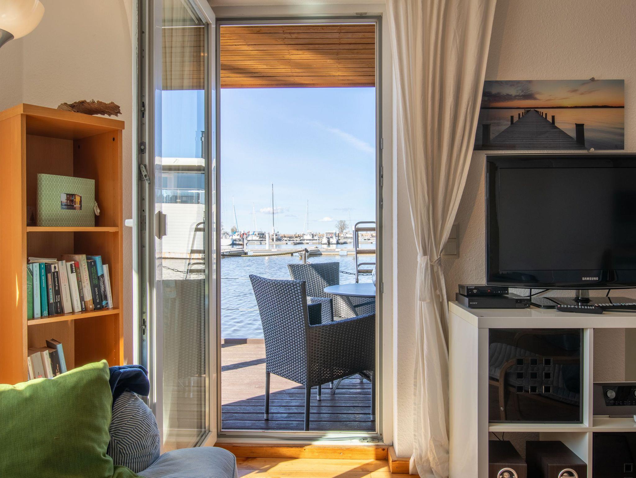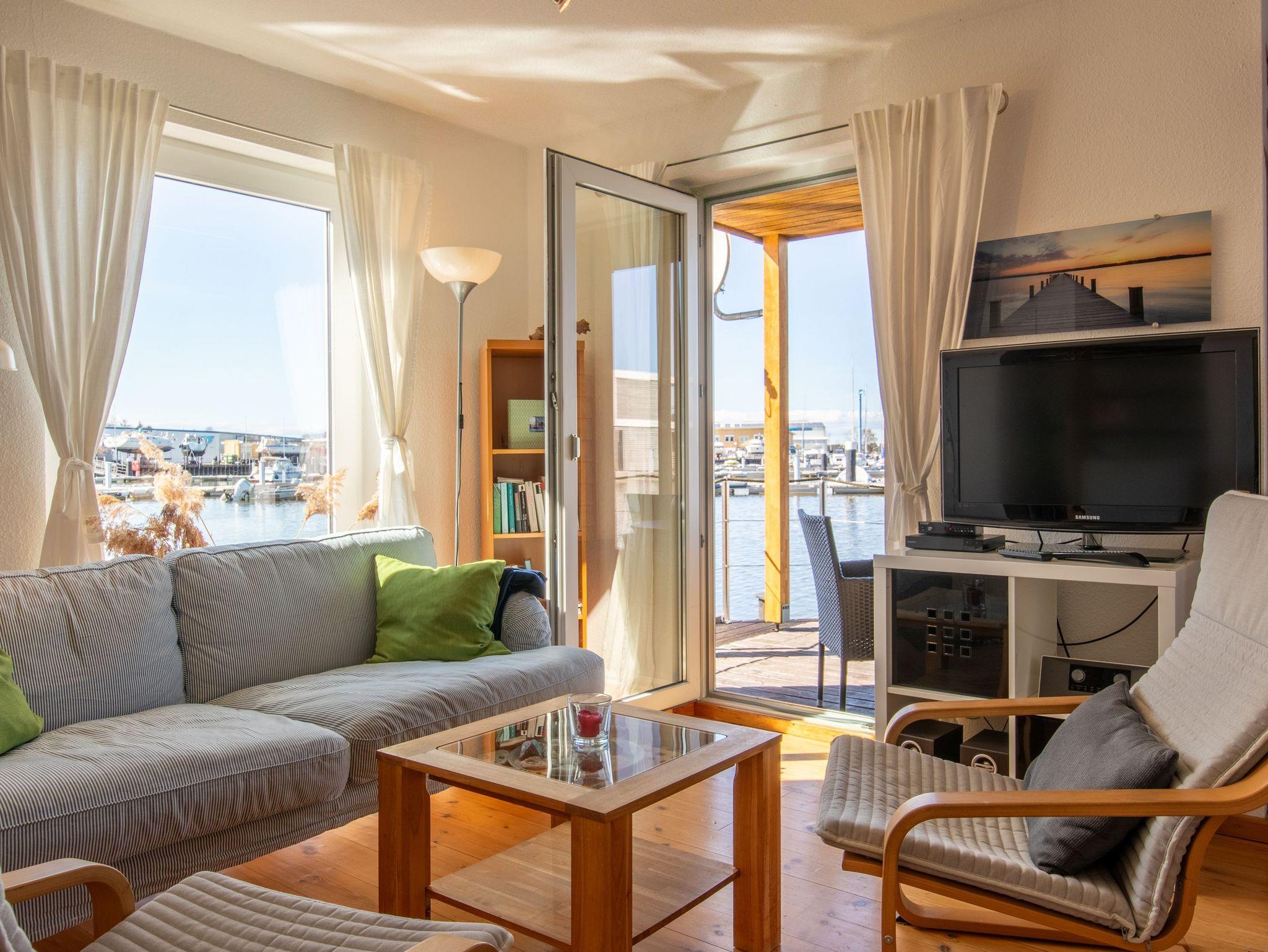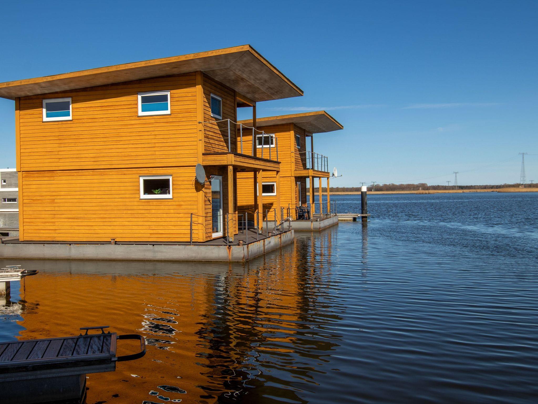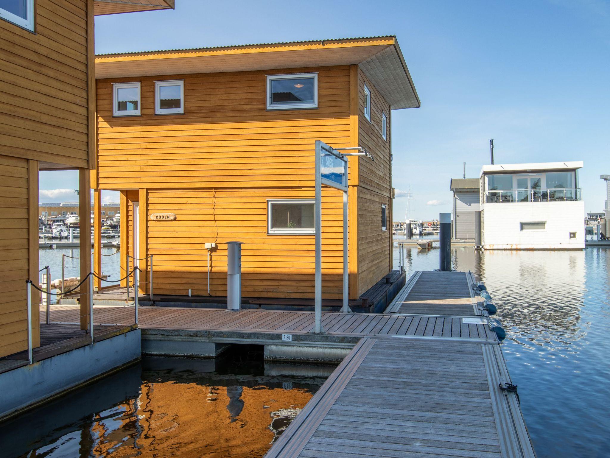 Genießen Sie maritimen Komfort in einem modernen Floating House mit Blick auf die Marina Kröslin und die umliegende Natur.