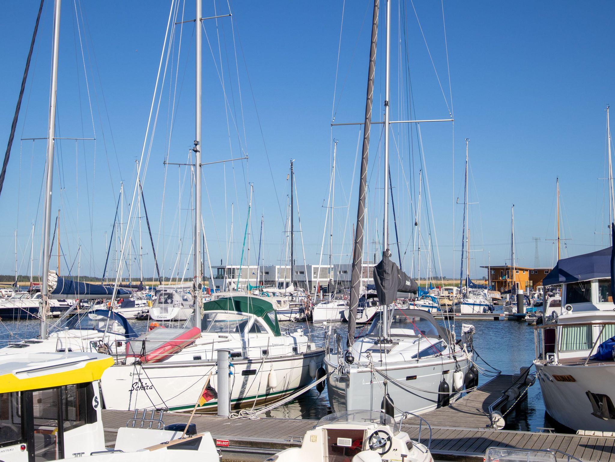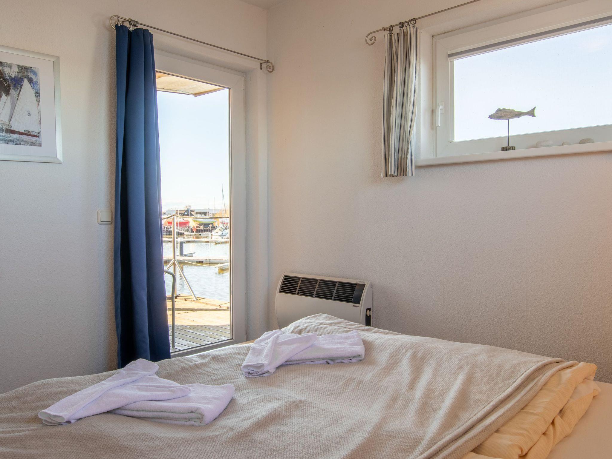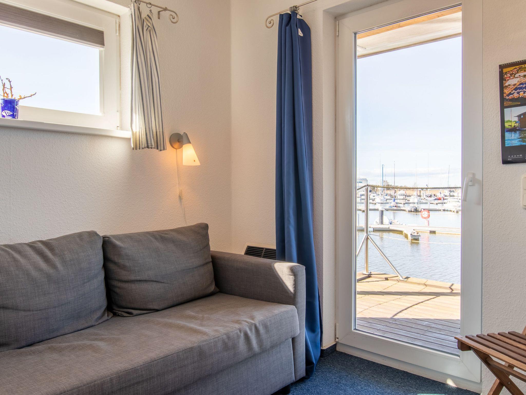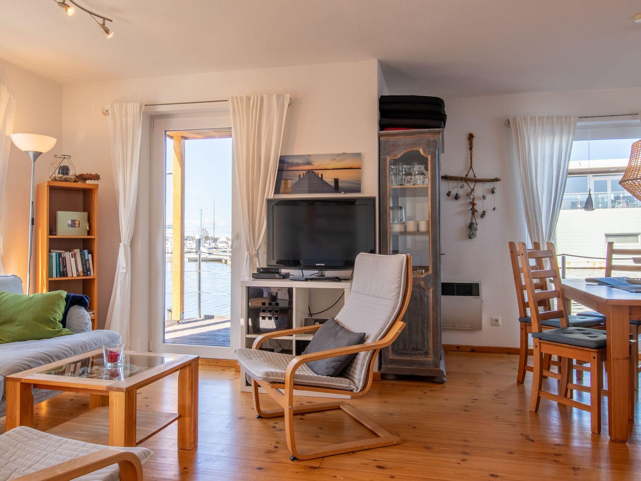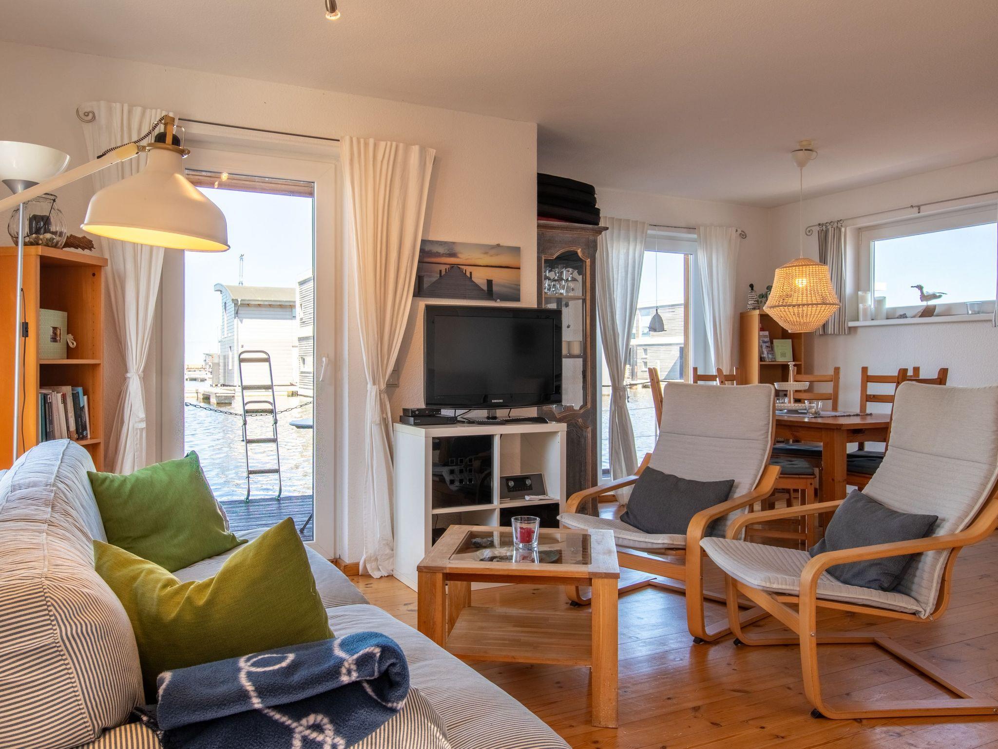 Genießen Sie maritimen Komfort in einem modernen Floating House mit Blick auf die Marina Kröslin und die umliegende Natur.