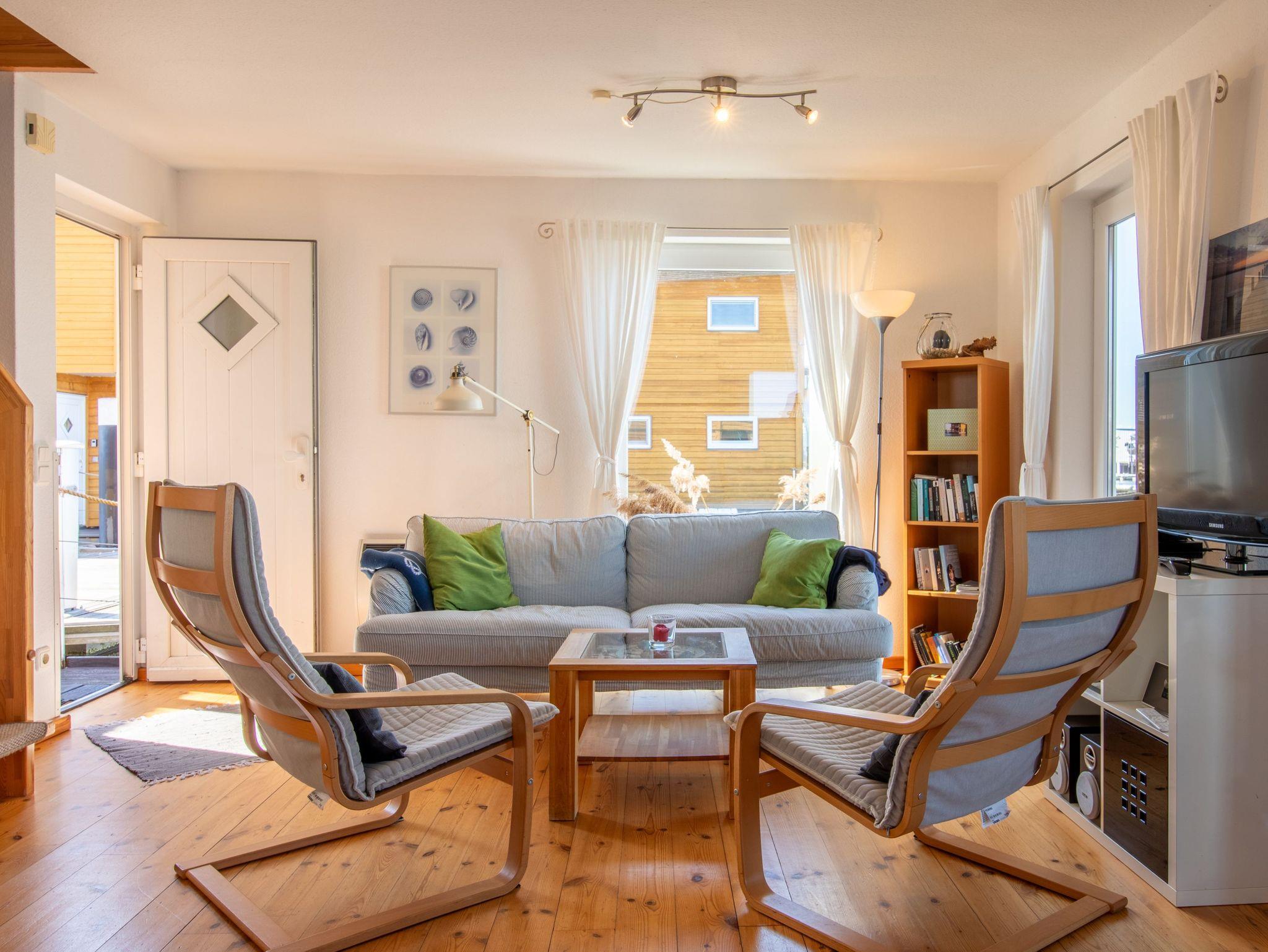 Floating House 3 in Kröslin ist dein persönlicher Rückzugsort am Wasser ? mit viel Raum für Erholung, maritimer Leichtigkeit und wunderbaren Blicken über den Peenestrom bis hin zur Insel Usedom. Auf zwei Etagen und ca. 75m² Wohnfläche bietet das Hausboot Platz für bis zu 5 Personen, die ihren Urlaub ganz nah am Wasser verbringen möchten ? ohne Haustier, denn dieses Floating House ist haustierfrei. Im Erdgeschoss wartet ein großzügiger Wohnbereich mit maritimem Flair auf dich ? mit bequemer Couch, Schwing-Sessel mit Hocker und einem großen Esstisch. Die offene Küche ist komplett ausgestattet: Ceranfeld, Backofen mit Grill, Mikrowelle, Spülmaschine, Kühlschrank, Kaffeemaschine, Toaster, Wasserkocher ? alles da für entspanntes Kochen im Urlaub. Der direkte Zugang zur möblierten Terrasse am Bug macht die Mahlzeiten draußen besonders angenehm. Im oberen Deck findest du zwei separate Schlafzimmer mit Doppelbett (180x200) und Kleiderschrank. Ein zusätzliches Zimmer mit Schlafcouch (140x200) eignet sich wunderbar als Kinderzimmer oder Leseecke. Zwei Schlafzimmer haben Zugang zum Balkon, auf dem dich Relax-Liegen und ein weiter Blick über die Landschaft erwarten. Im Bad erwartet dich eine Dusche, WC, Spiegelschrank, Haartrockner und Kosmetikspiegel ? praktisch und komfortabel. Für Unterhaltung sorgen Sat-TV, Radio/CD-Kompaktanlage und WLAN, das über den Hafen bereitgestellt wird. Geheizt wird über moderne Elektroheizkörper in allen Räumen. Für Bootsliebhaber: Ein kleines offenes Sportboot (bis 4,5m Länge) kannst du direkt am Haus anlegen ? und dann vielleicht gleich zu einem kleinen Törn rund ums Achterwasser aufbrechen? Alternativ warten die Freizeiteinrichtungen der Marina Kröslin: Restaurant, Tapasbar, Wellnessbereich, Mini-Markt, Fahrrad- und Bootsverleih, Waschsalon, Sauna, Spielplatz und mehr.