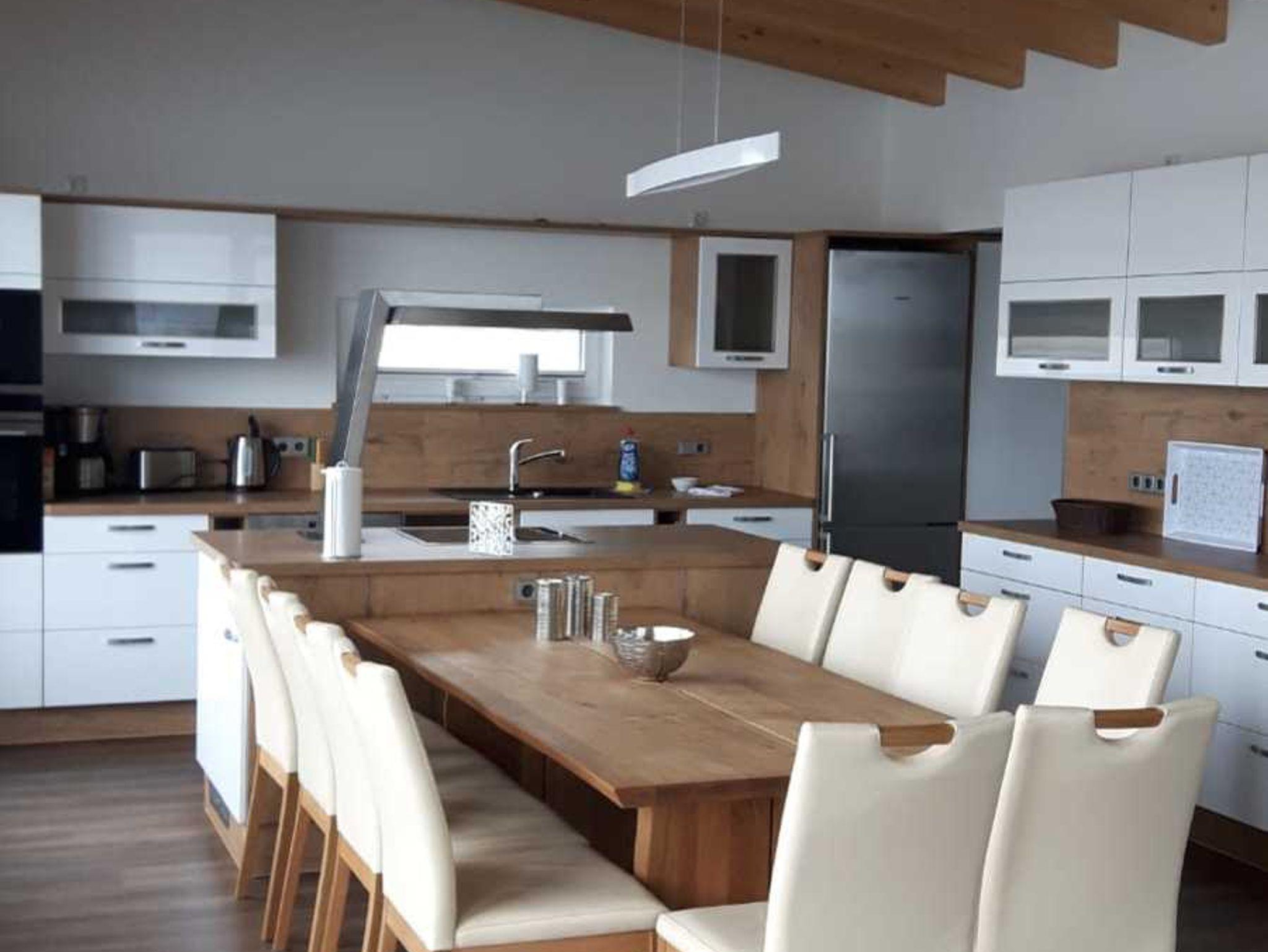 Die Küche verfügt über jeglichen Komfort: Backofen, Herd, Mikrowelle, Spülmaschine, Kühlschrank mit Gefrierfach, Kaffeemaschine, Wasserkocher und Toaster gehören zu unserer Standardausstattung. Im Wohnzimmer erwartet Sie ein fast 180 Grad Panoramafenster, ein Flachbildschirm mit DVD Recorder, eine Musikanlage und ein kostenloser W-LAN Zugang.