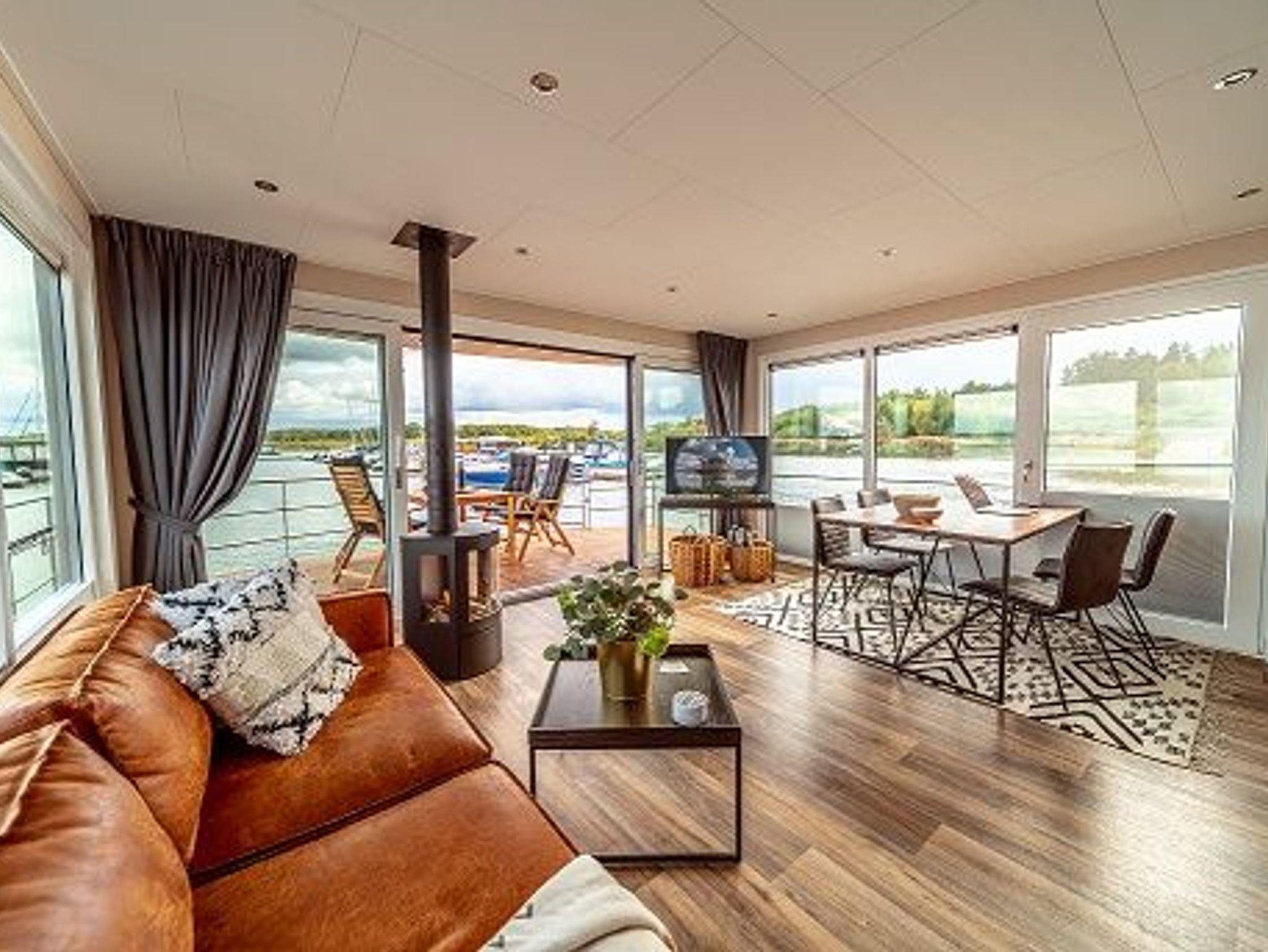 Das Seemobil bietet alles, was einen Aufenthalt in diesem Haus angenehm und so einmalig macht: einen Kamin, viel Glas und die optimale Aufteilung der beiden Schlafzimmer und der Wohnebene mit großzügiger Terrasse (Bug und Oberdeck).