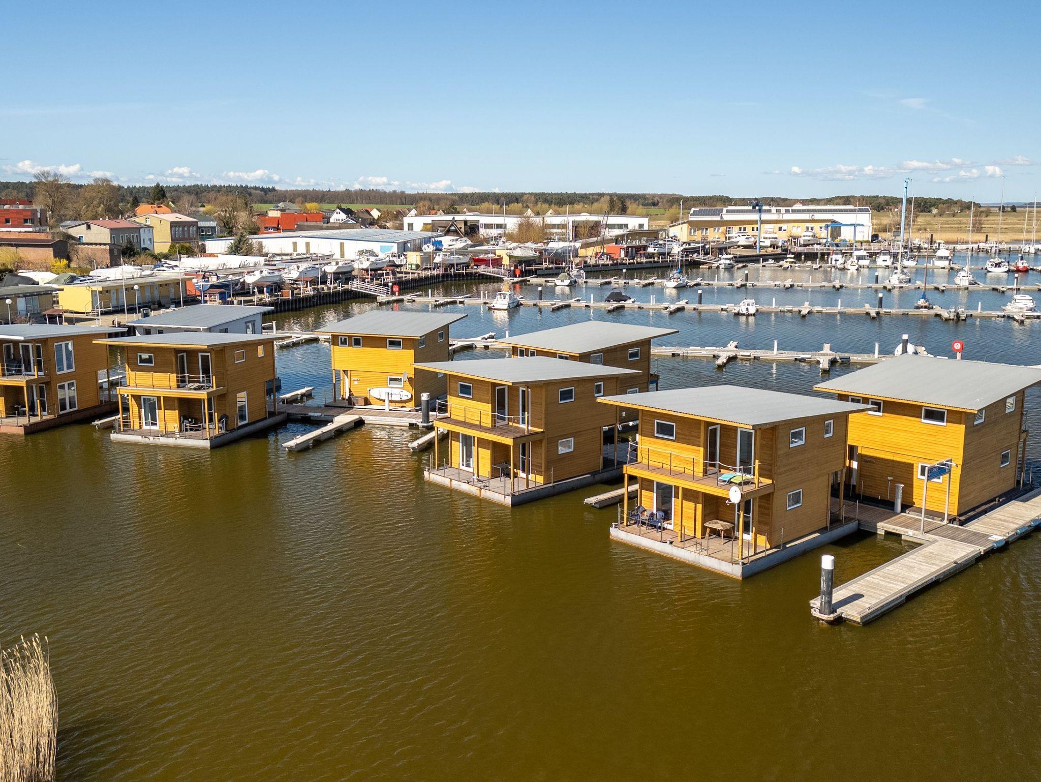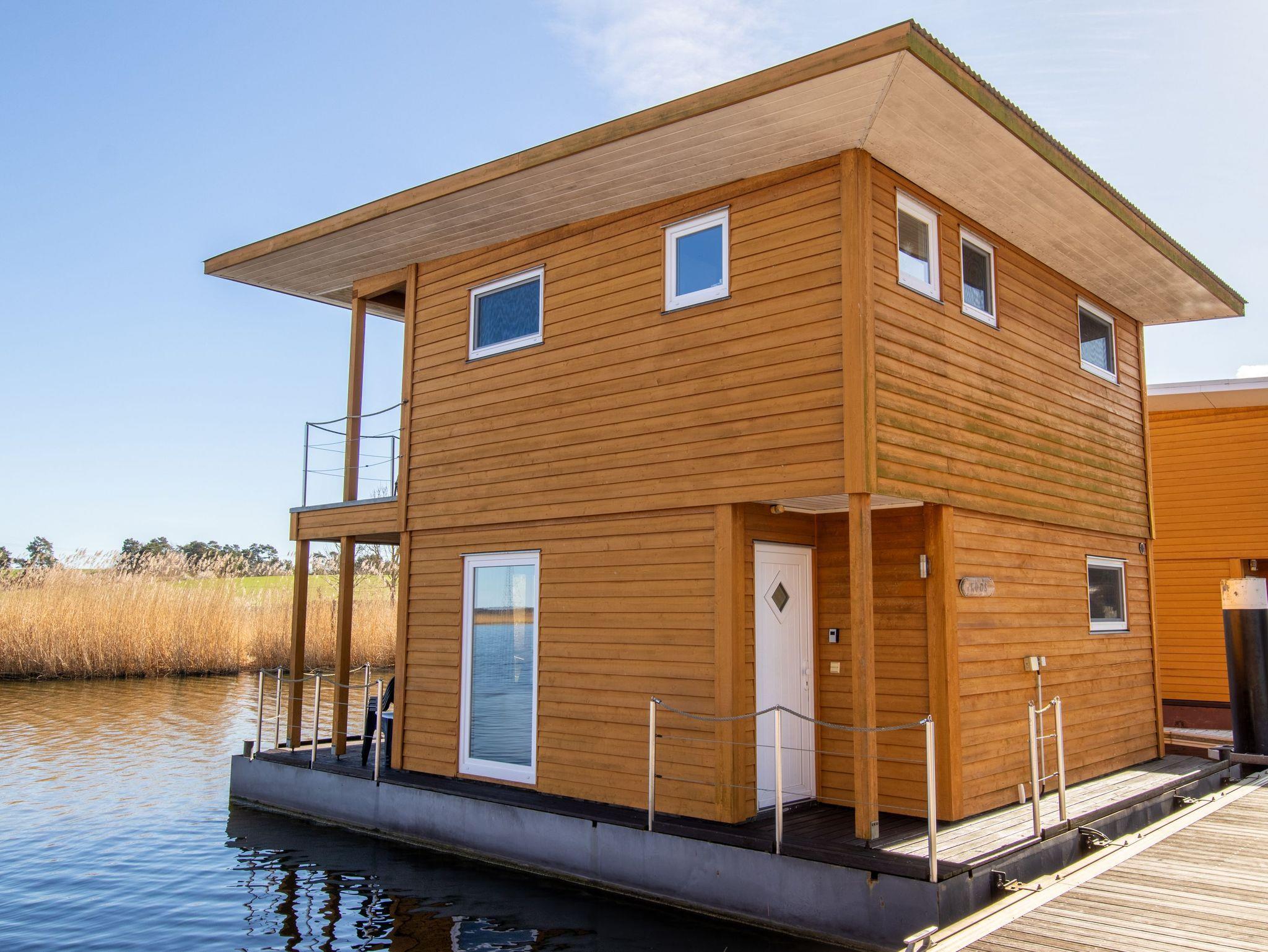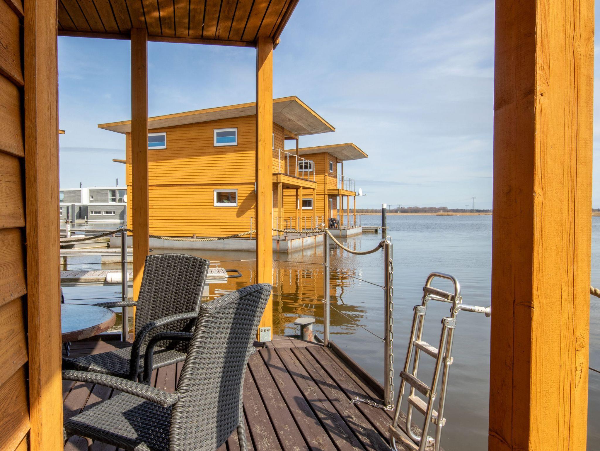 Erleben Sie maritimes Flair und Komfort im Floating House 5 mit direktem Wasserblick in Kröslin.