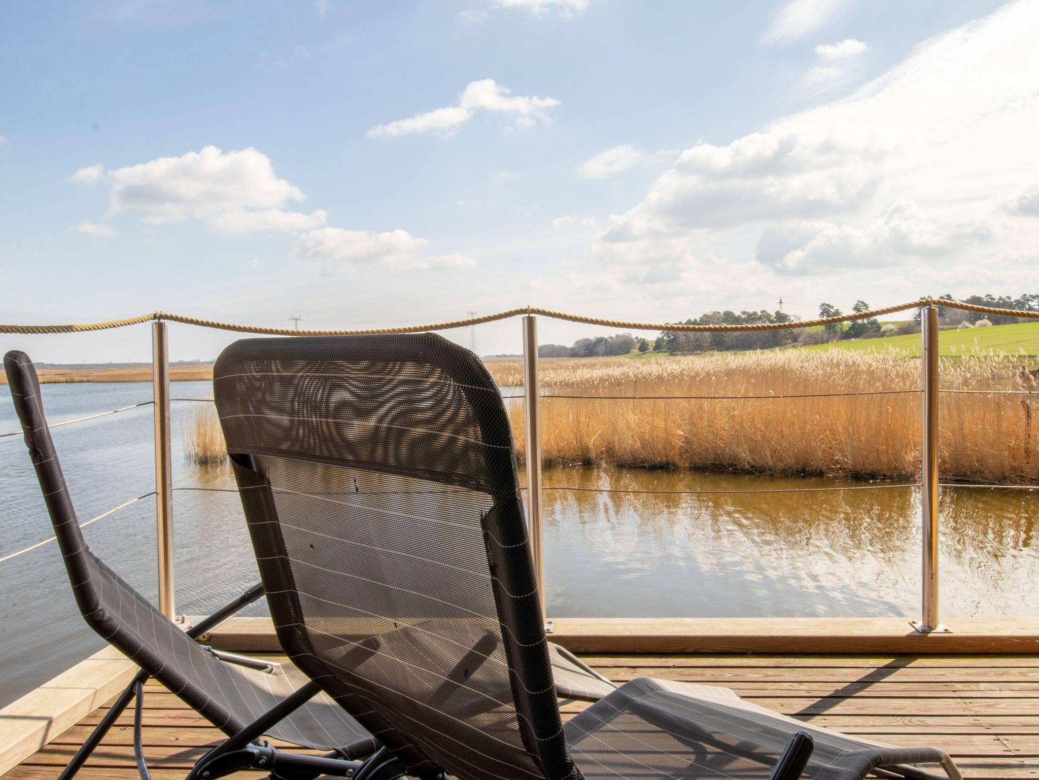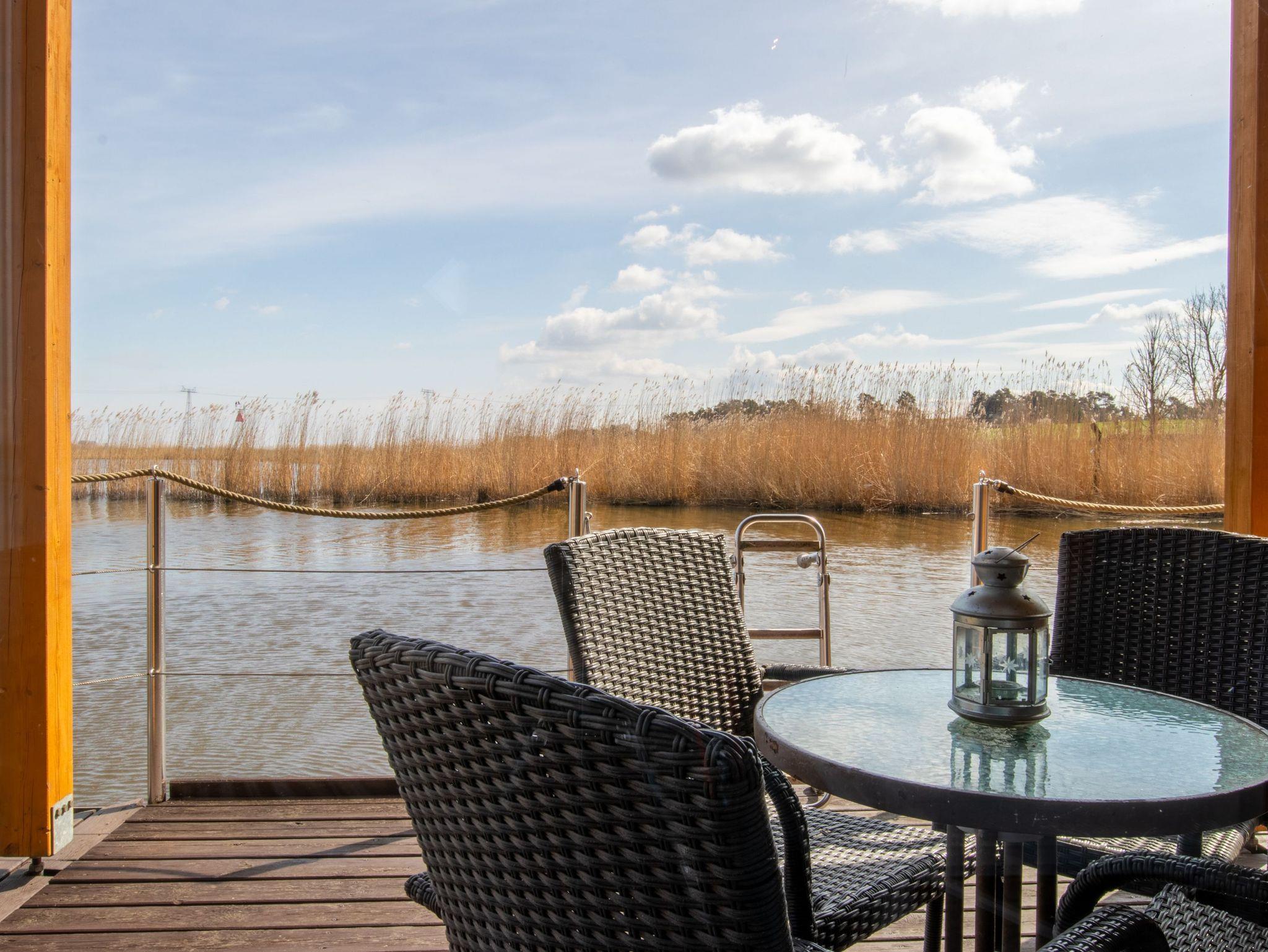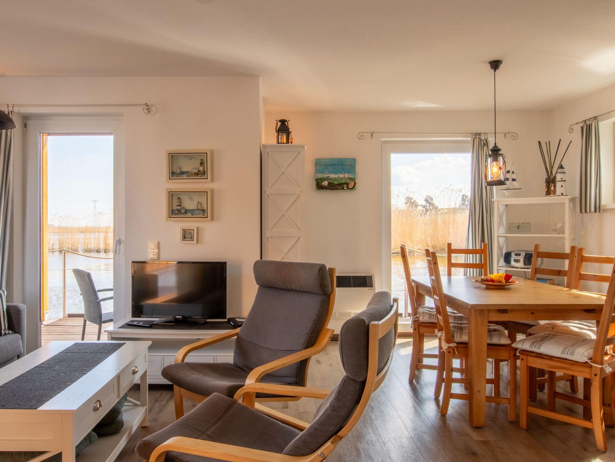 Erleben Sie maritimes Flair und Komfort im Floating House 5 mit direktem Wasserblick in Kröslin.