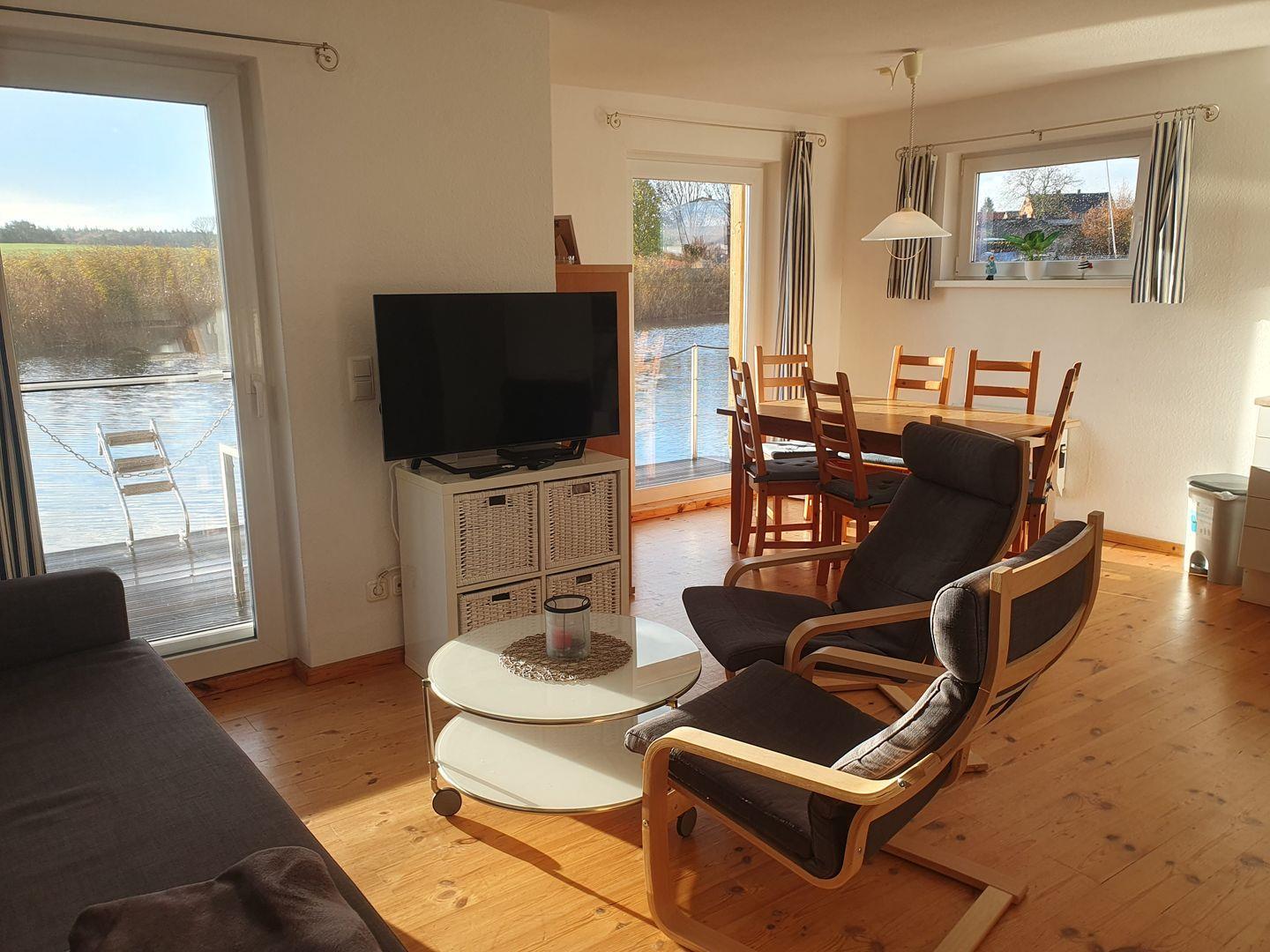 Schwimmendes Ferienhaus mit Blick auf Bodden